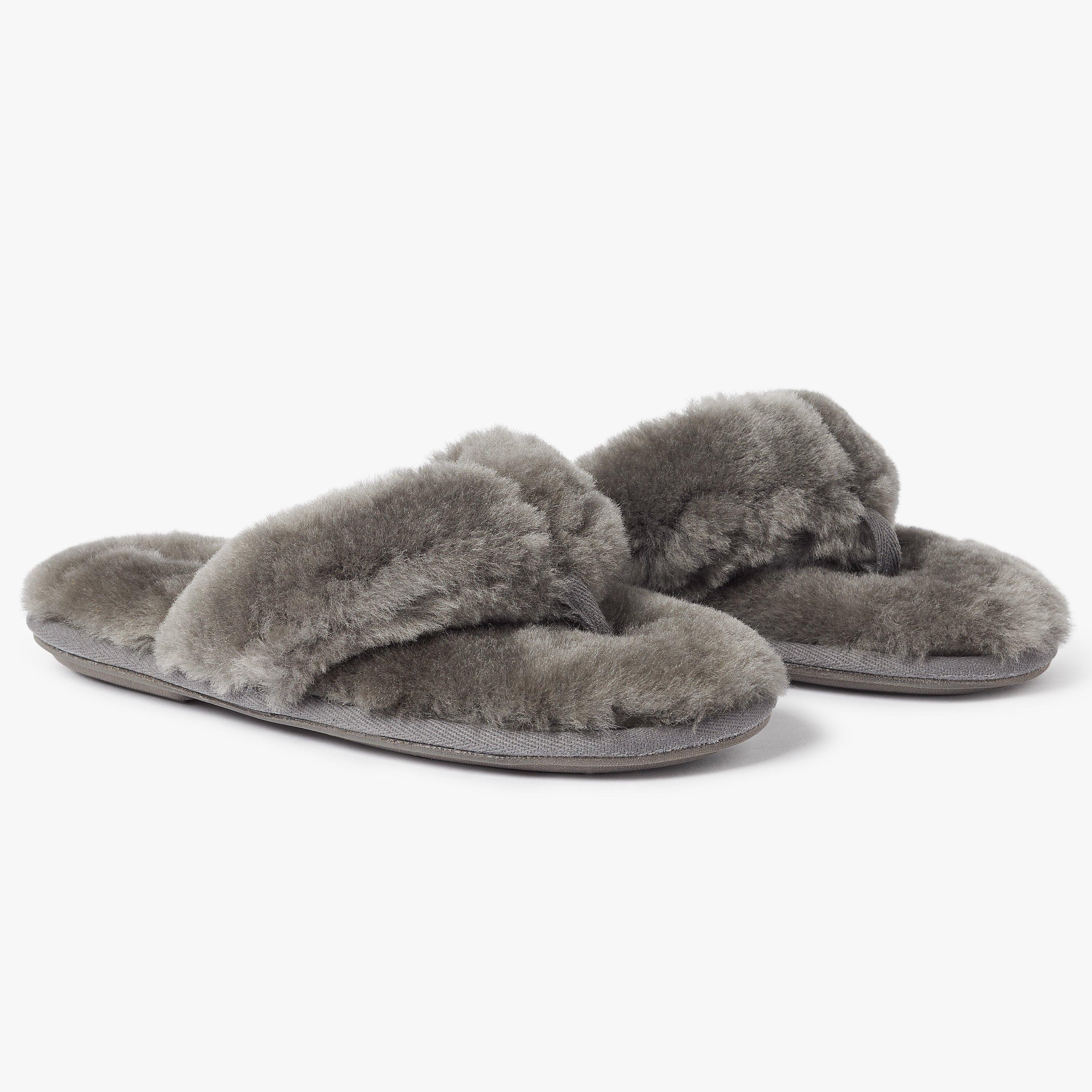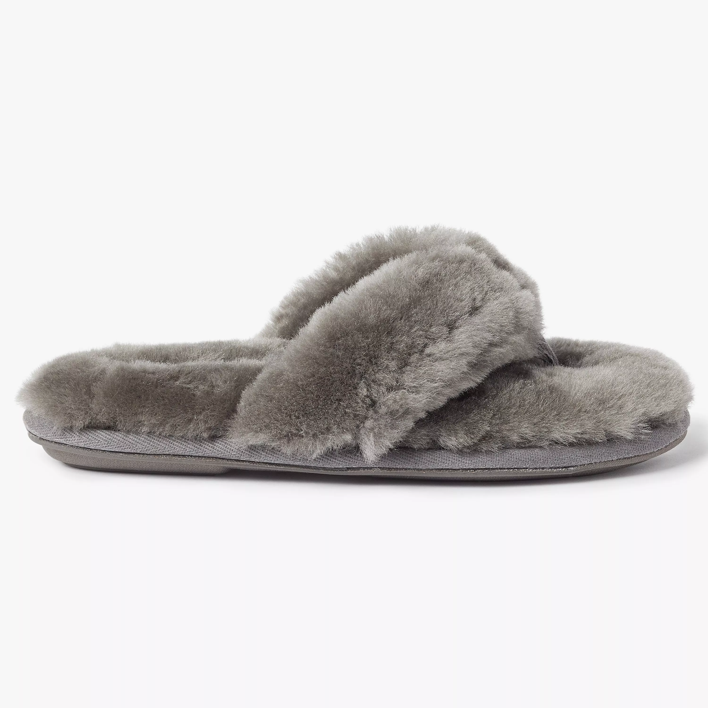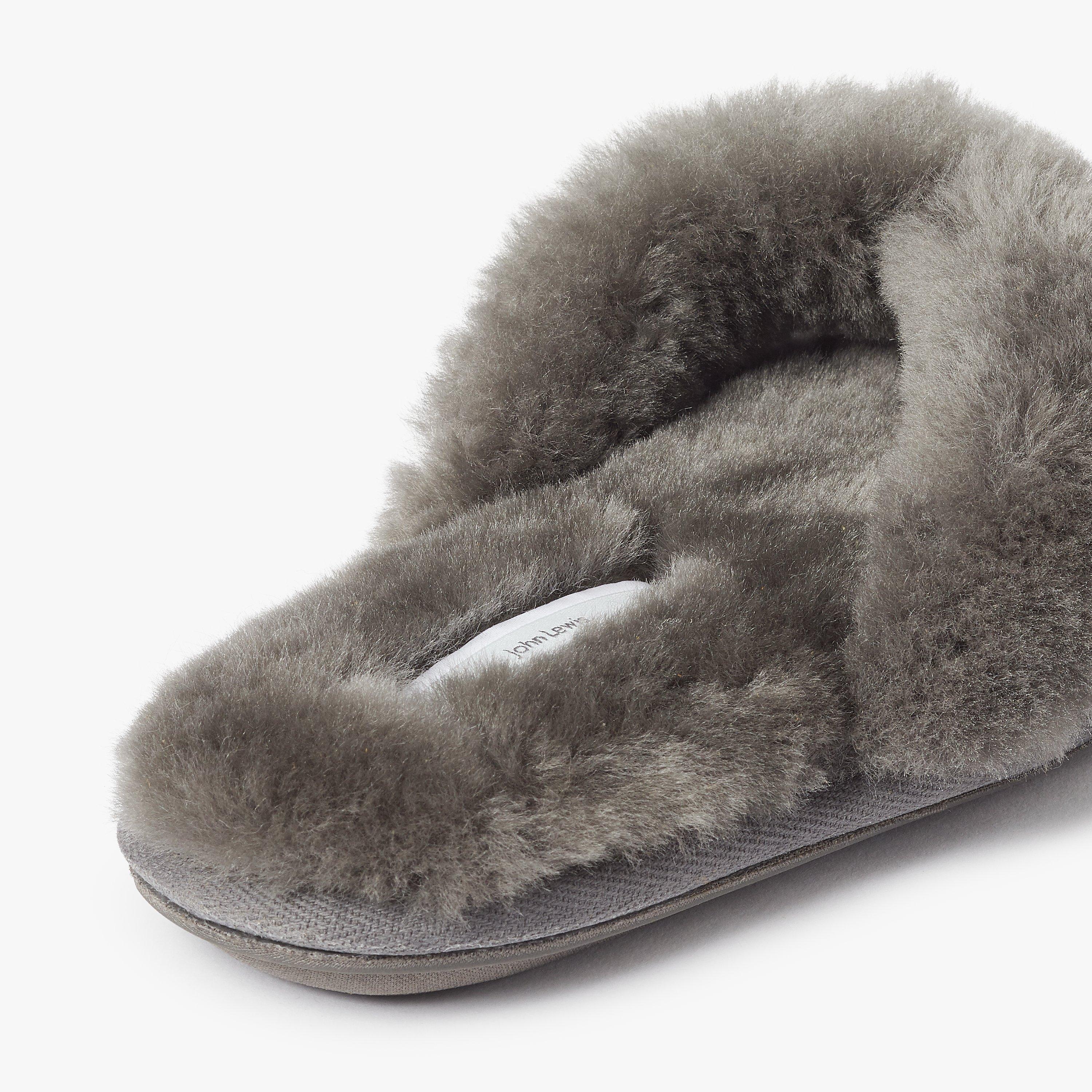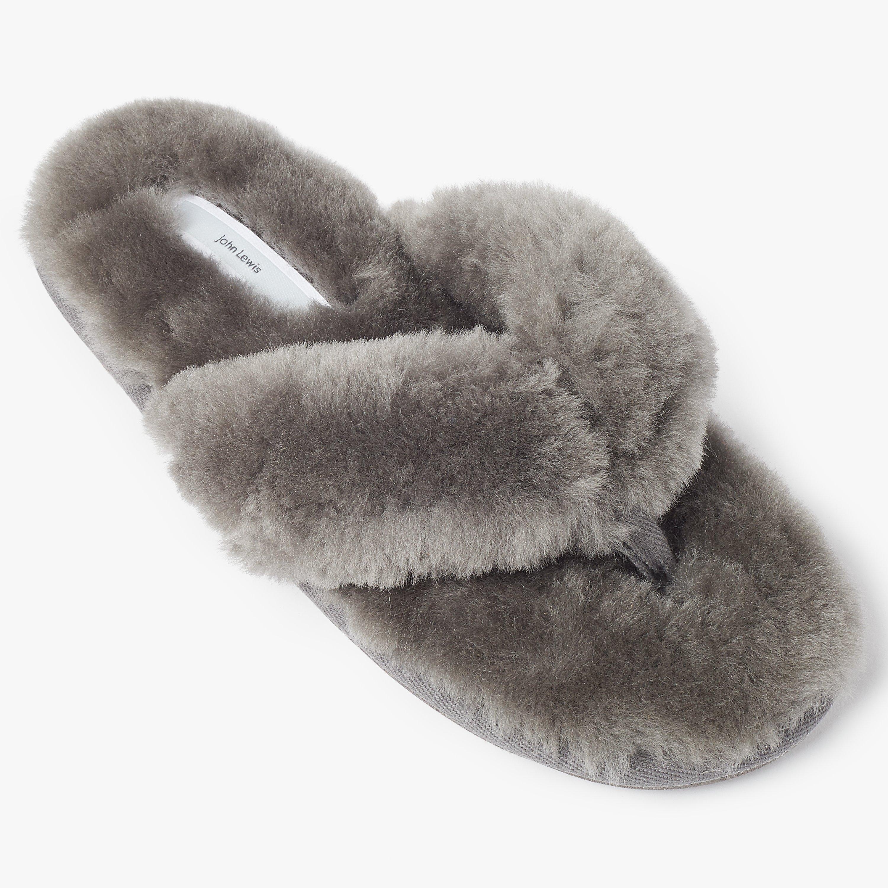 Cosy up in these chic and sumptuous Sheepskin Toe Post slippers from John Lewis. Covered in soft sheepskin, this pair have a comfortable strap over the foot with a toe post design and a durable rubber sole.