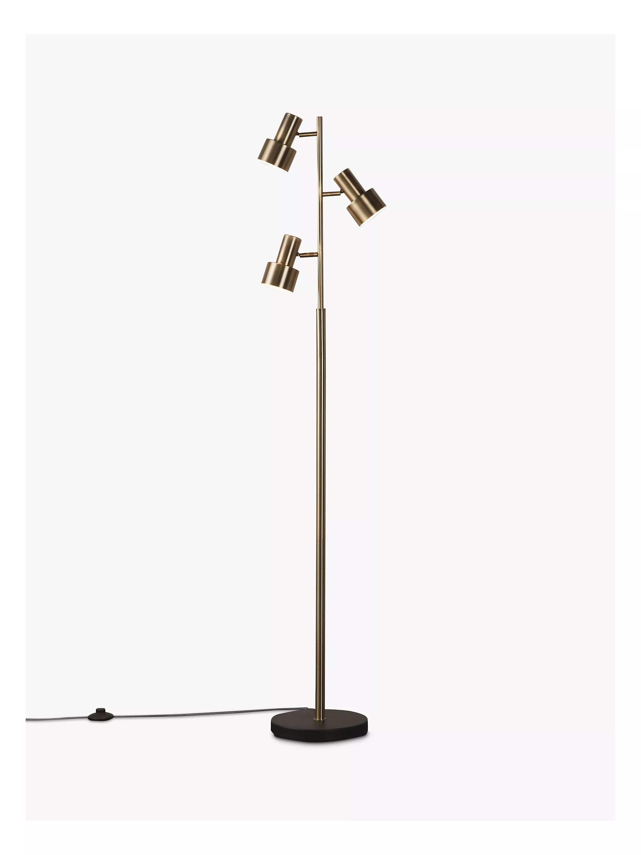 This functional floor lamp is ideal for your reading corner, thanks to three lights that are suspended from a slender metal frame. Each shade can be adjusted so you can direct the light where you need it, and its brass finish gives it a retro, Art-Deco-inspired look. It's impressively practical, without taking up too much space in your room.