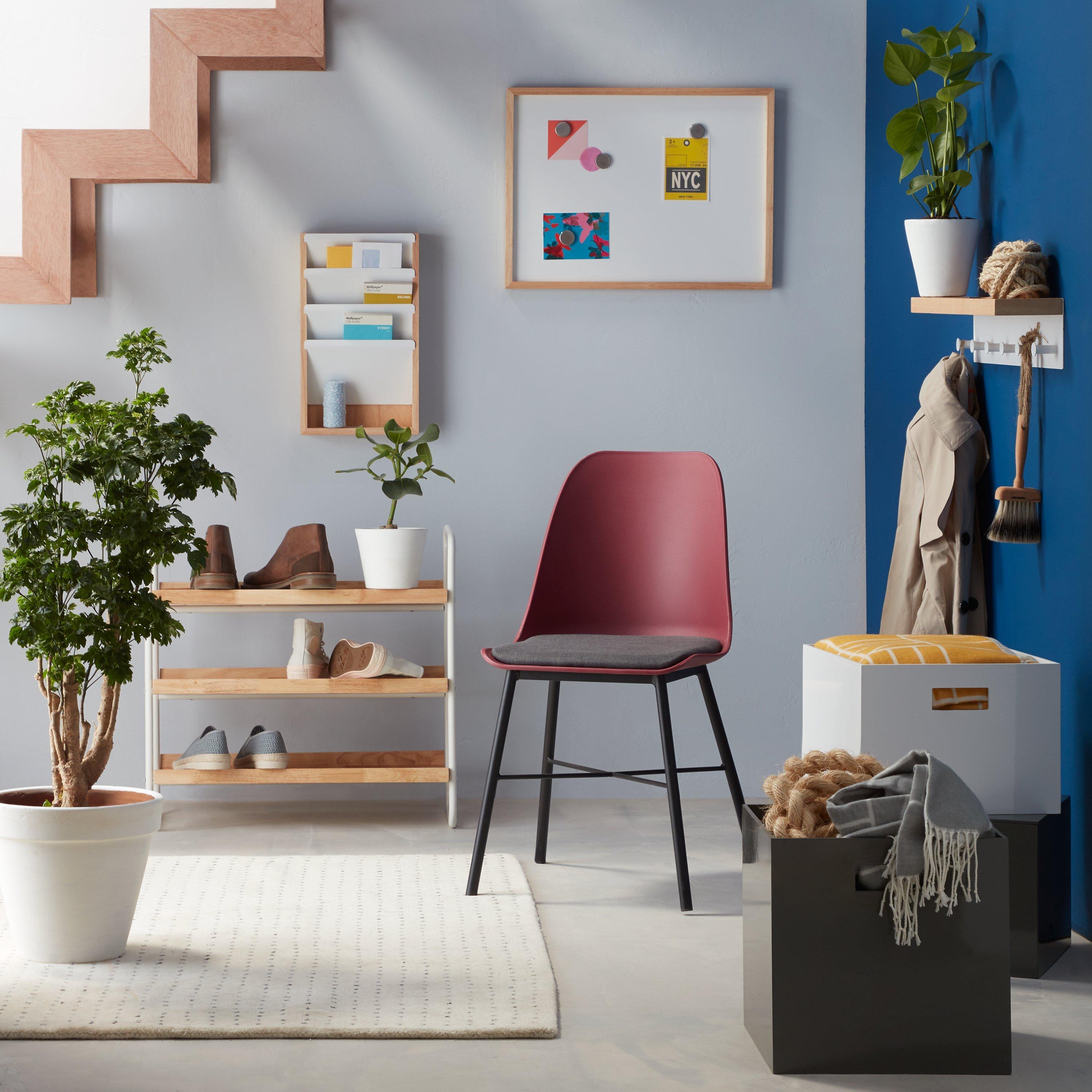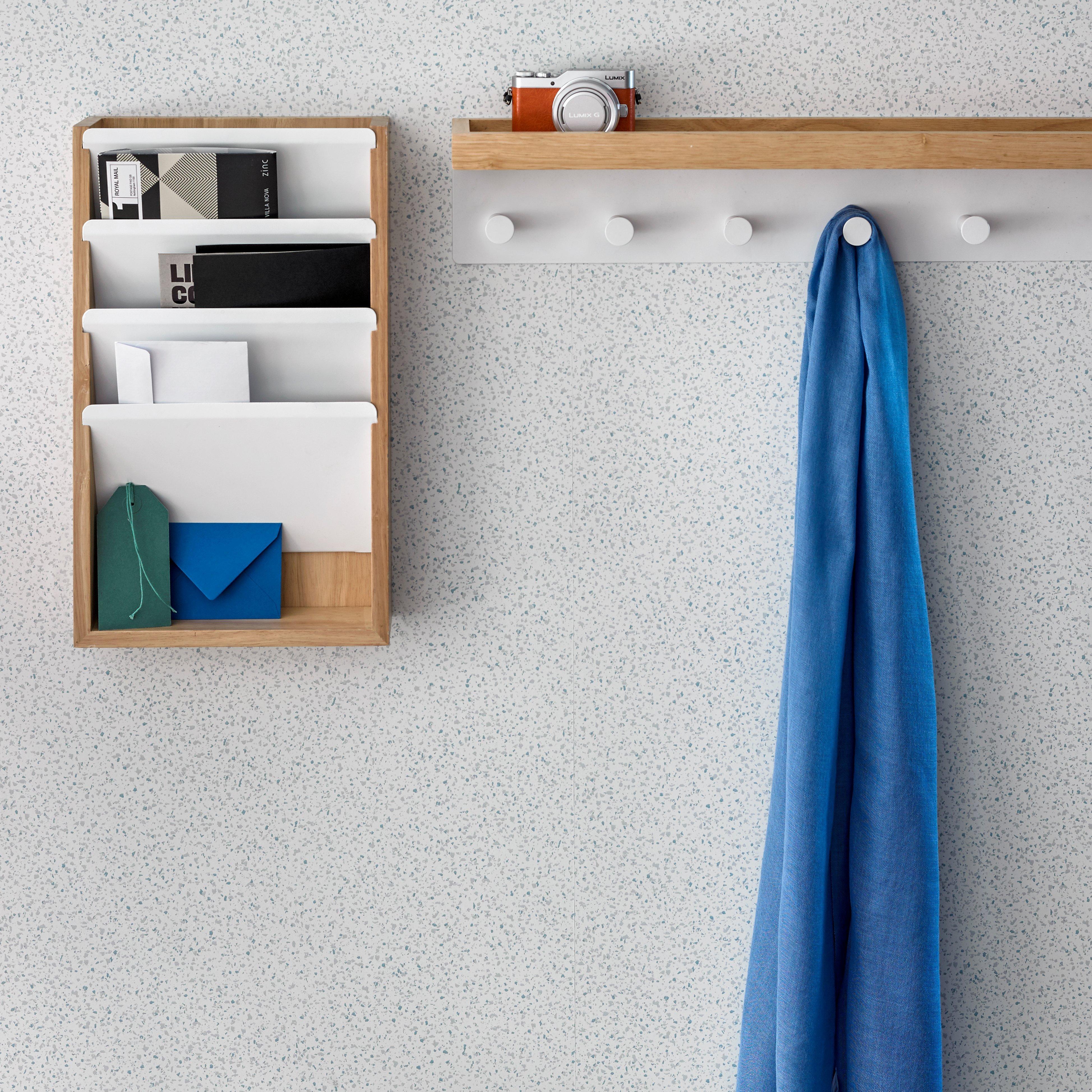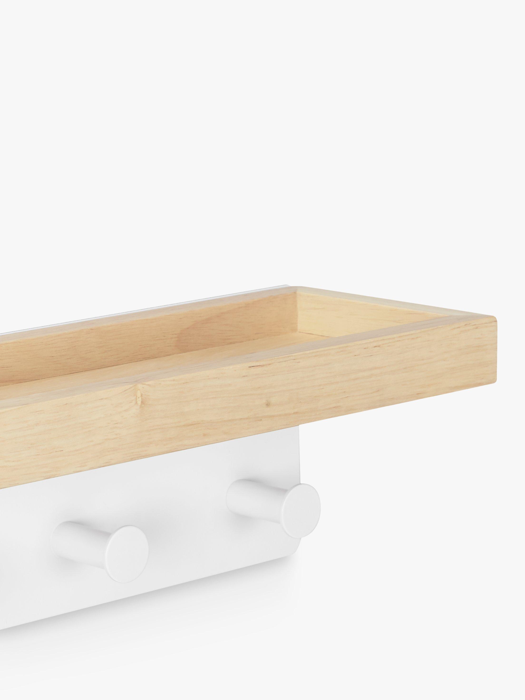 An all-in-one hallway storage solution which combines a rubberwood shelf and metal frame fitted with 6 hanging racks.
