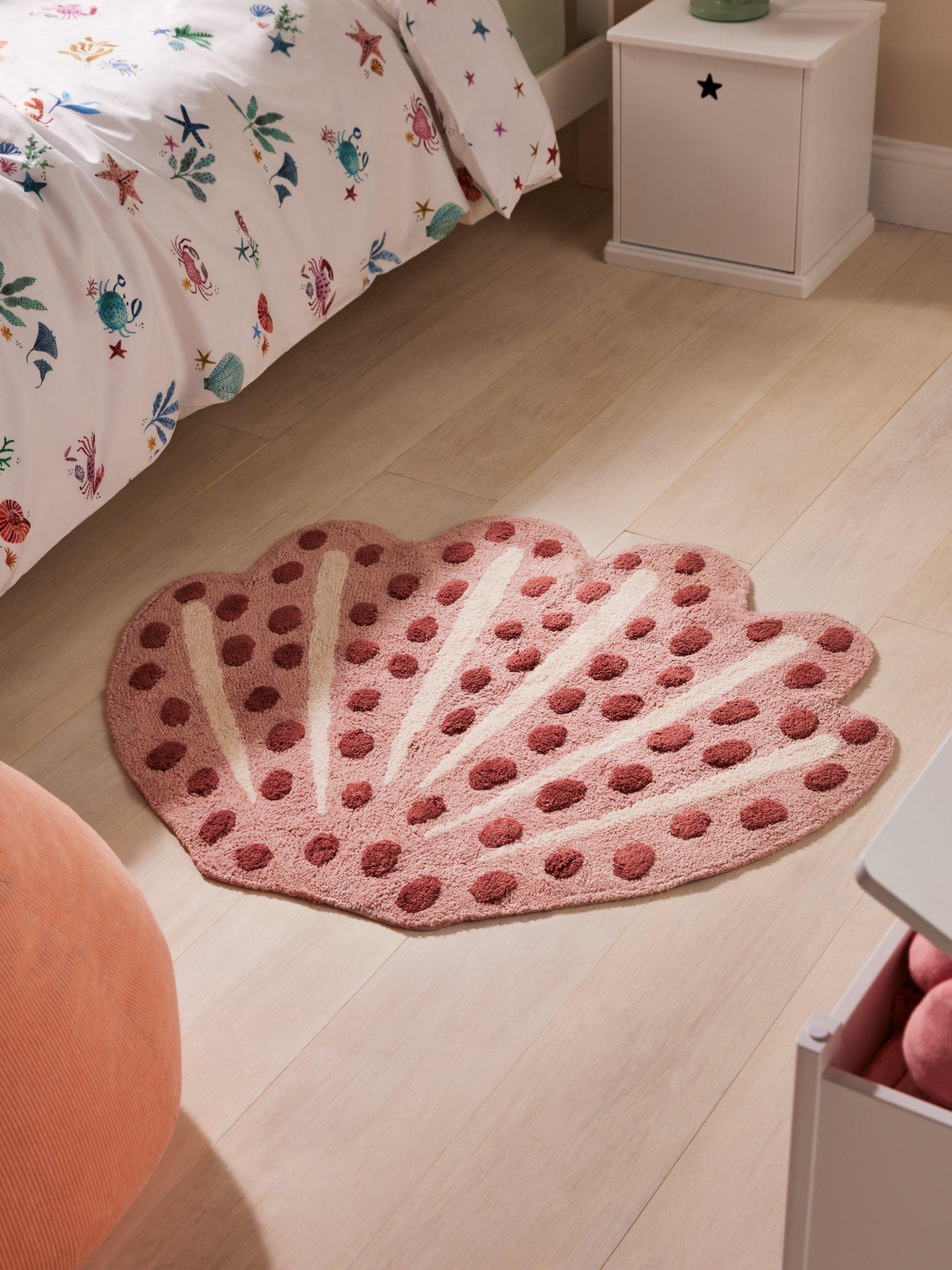 Perfect for seaside-themed rooms, this rug has the shape of a seashell with attractive spotted detail.
