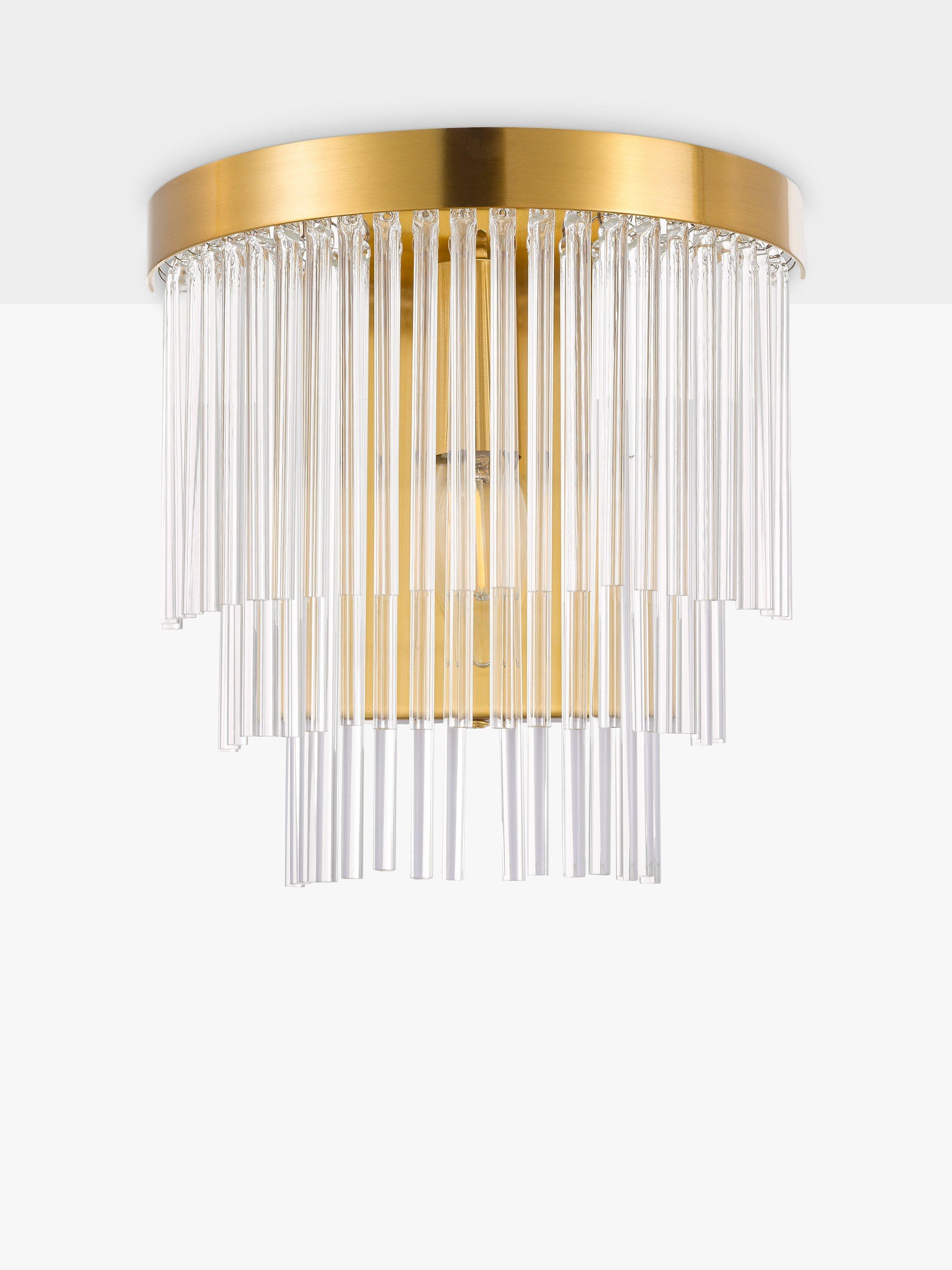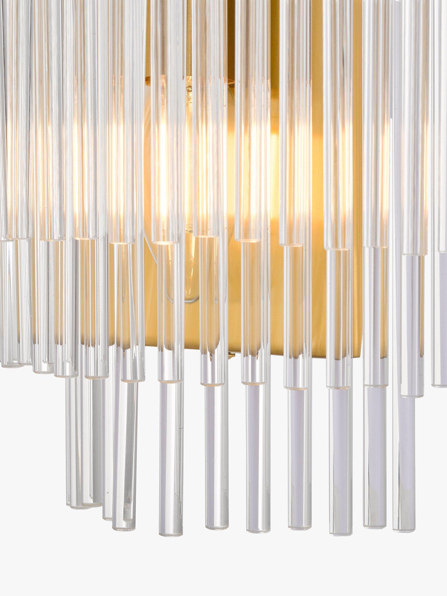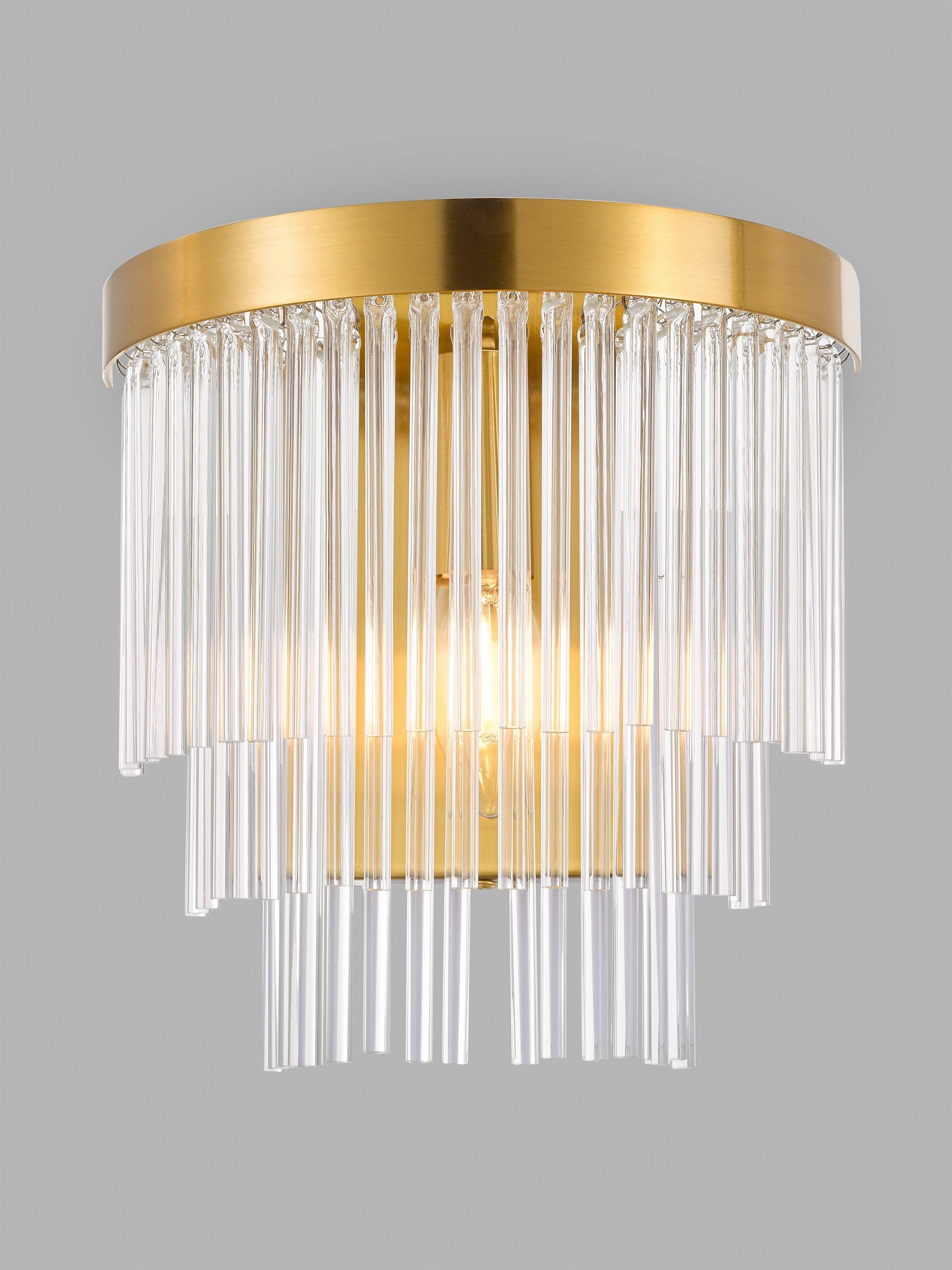 Make a statement with the stunning Shiminista chandelier-style wall light. Finished in a warm matte brass with layers of clear crystal rods, this light is a real focal point for a room, bringing sophistication and elegance to your home.