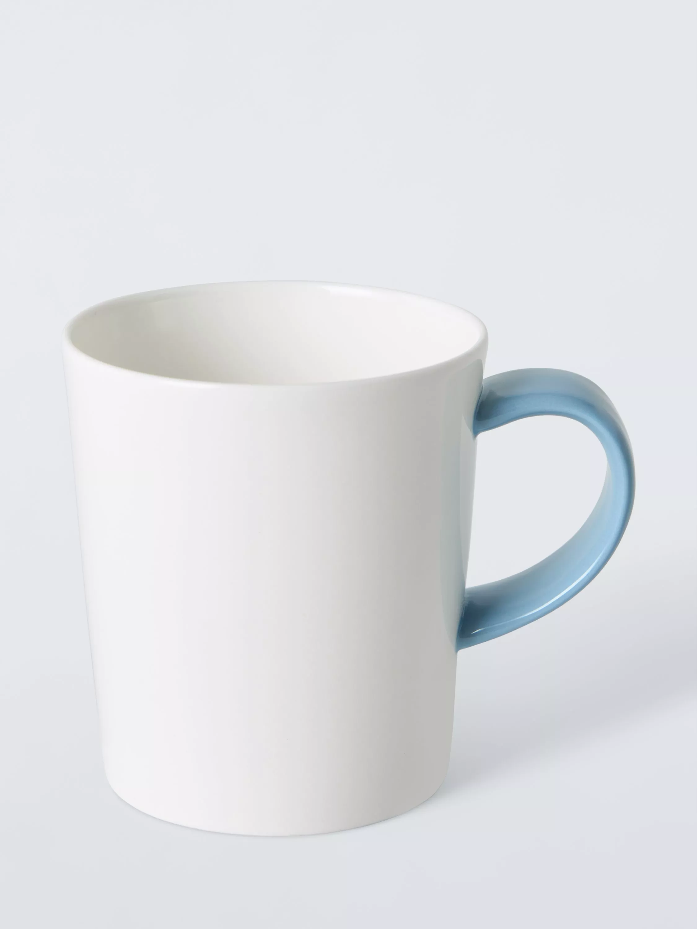 Short mug made of resilient bone china with a wide handle. Microwave and dishwasher-safe.