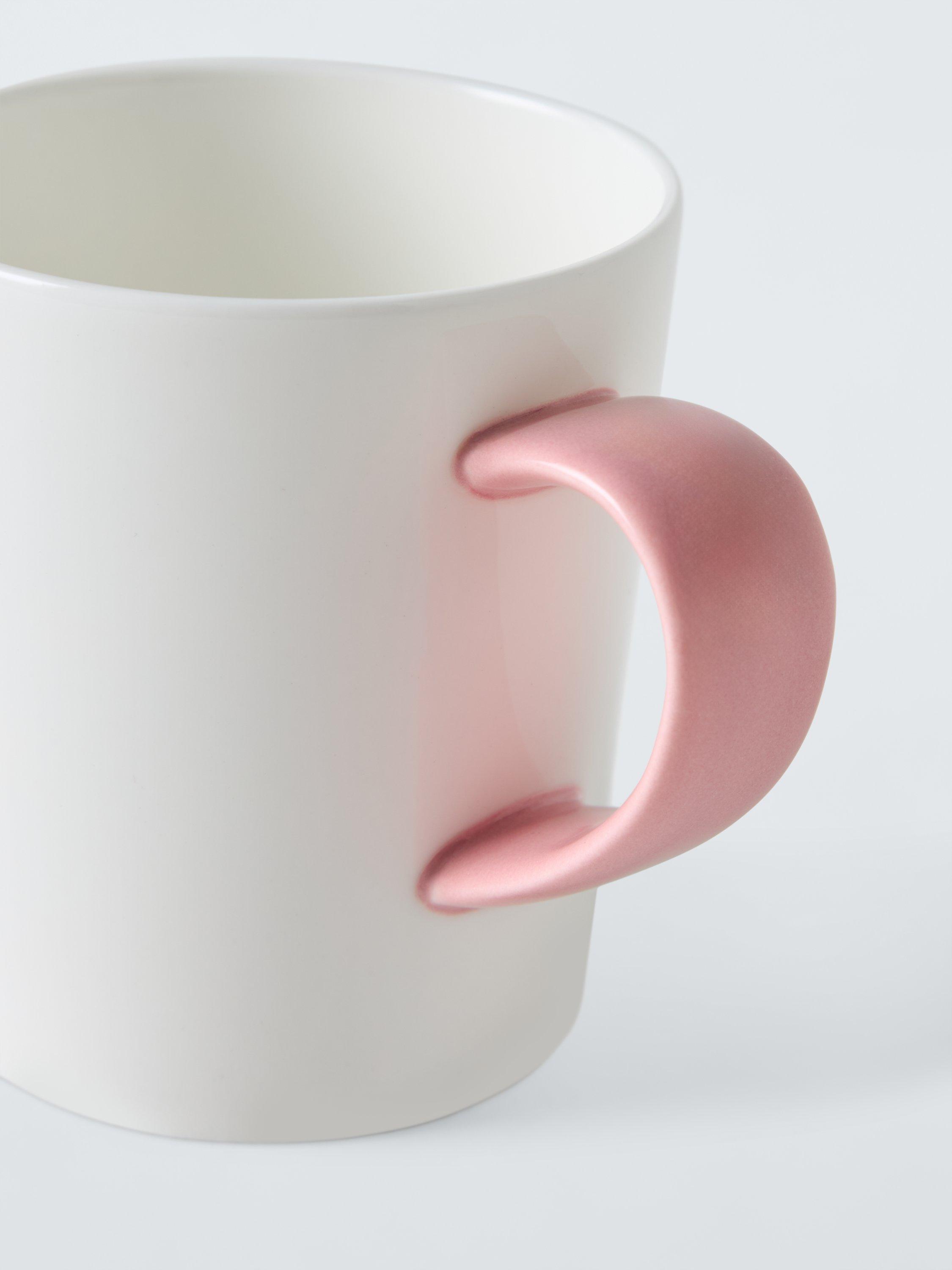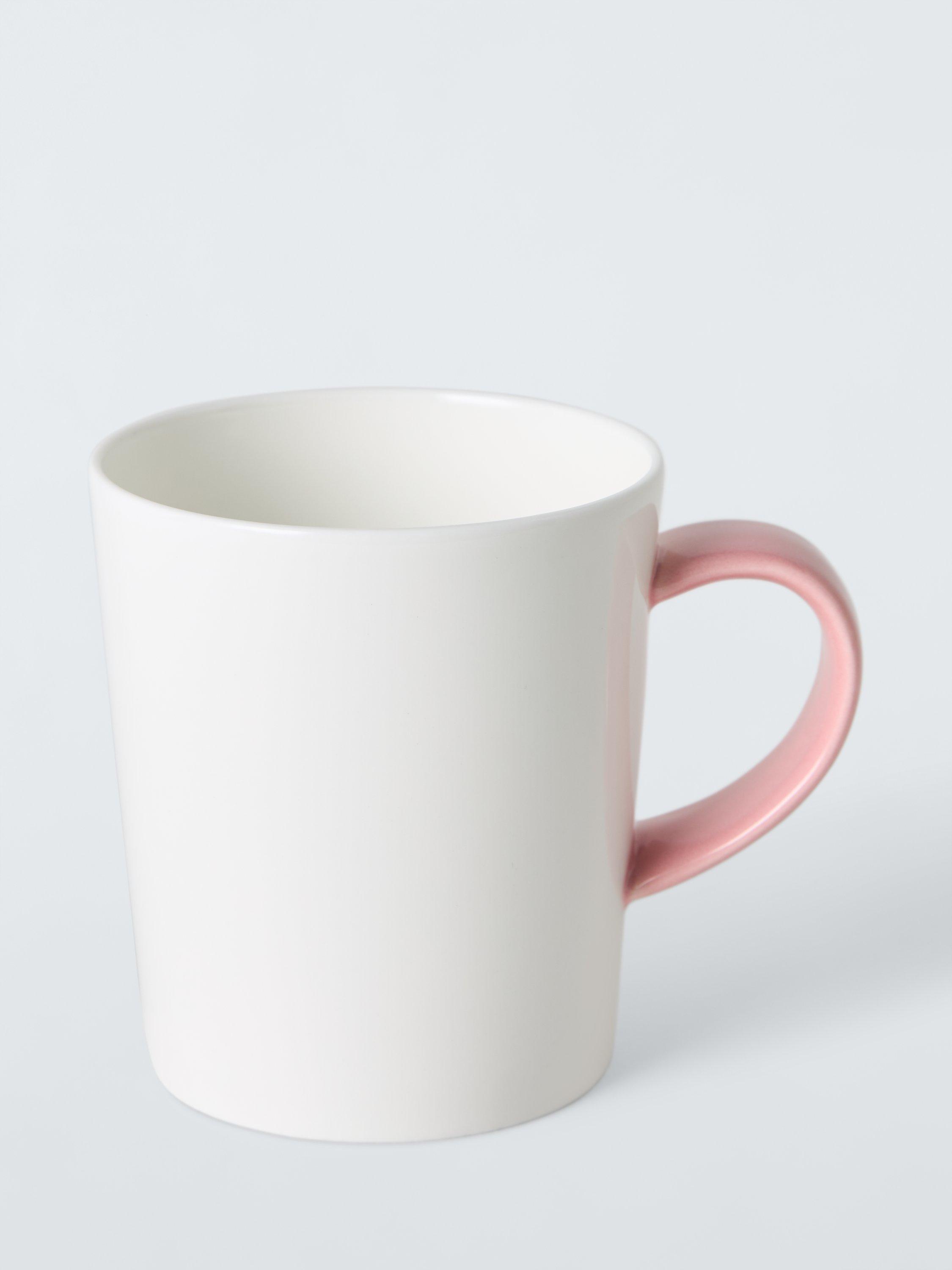 Short mug made of resilient bone china with a wide handle. Microwave and dishwasher-safe.
