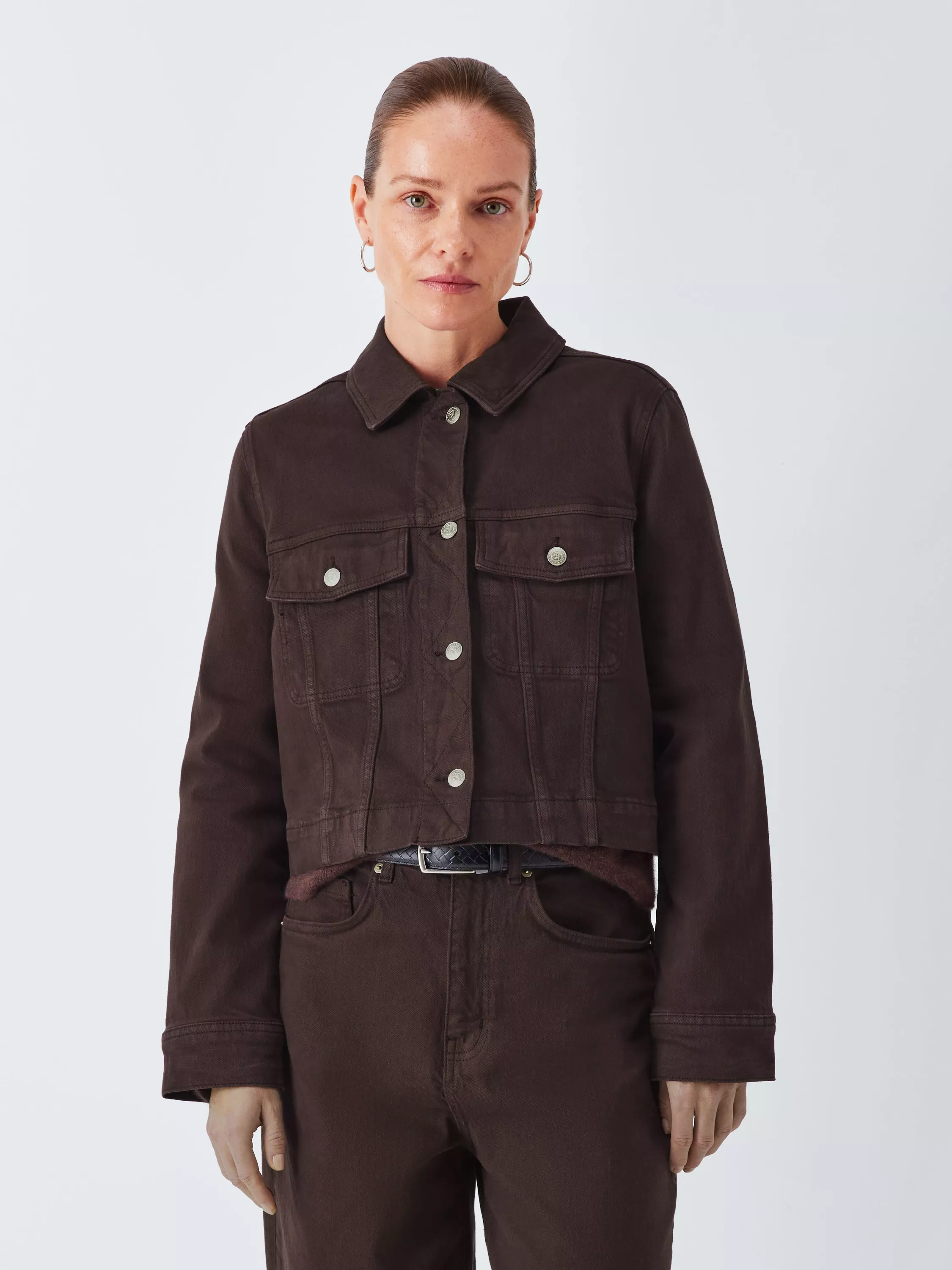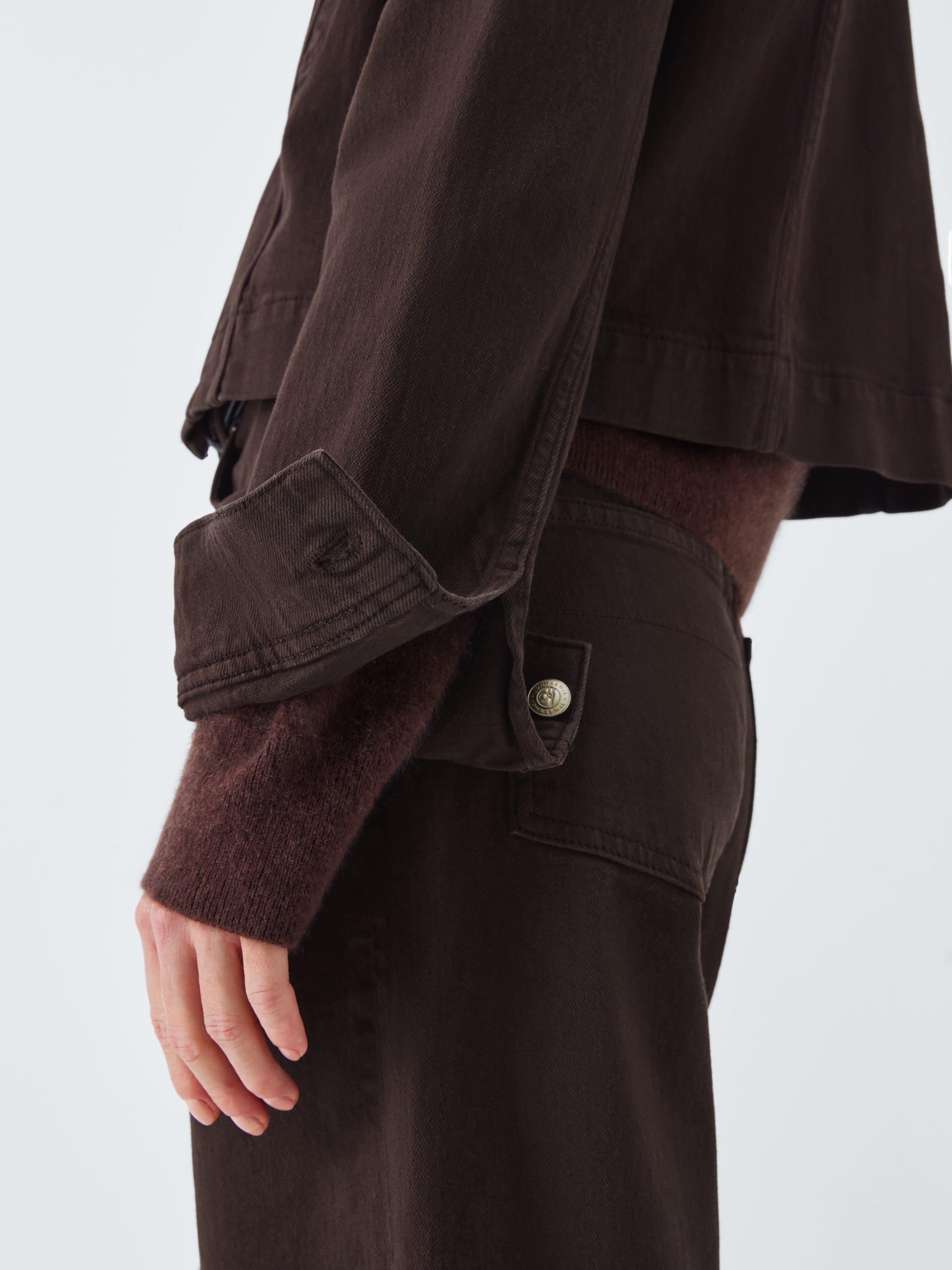 A stretch cotton denim jacket with flap pocket detailing.