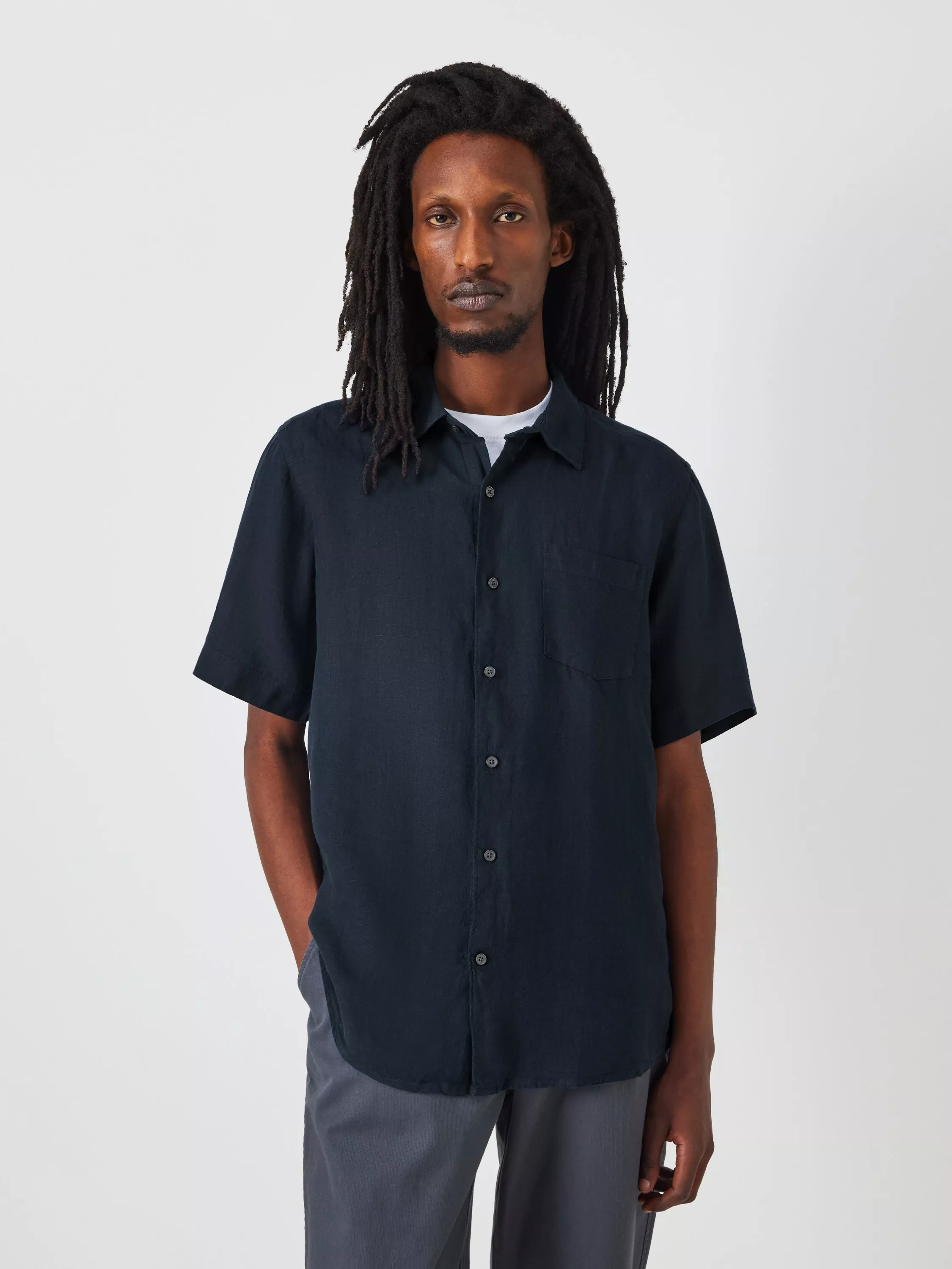 A breathable, lightweight linen shirt with imitation mother-of-pearl buttons for an elevated edge. With a regular fit and topped with a point collar, it's a wardrobe essential for sultry summer days.