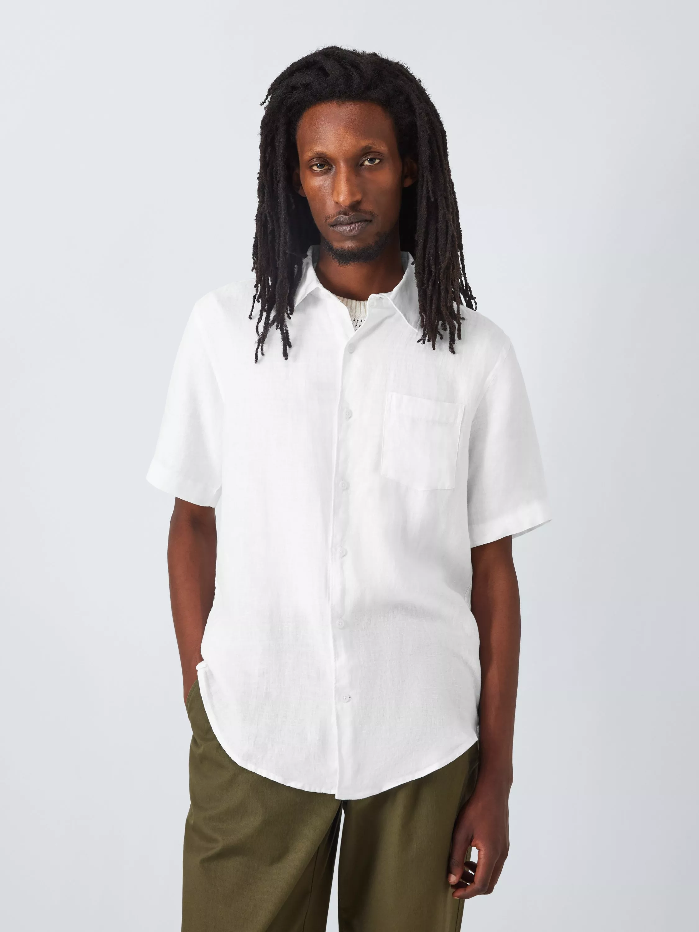 A breathable, lightweight linen shirt with imitation mother-of-pearl buttons for an elevated edge. With a regular fit and topped with a point collar, it's a wardrobe essential for sultry summer days.