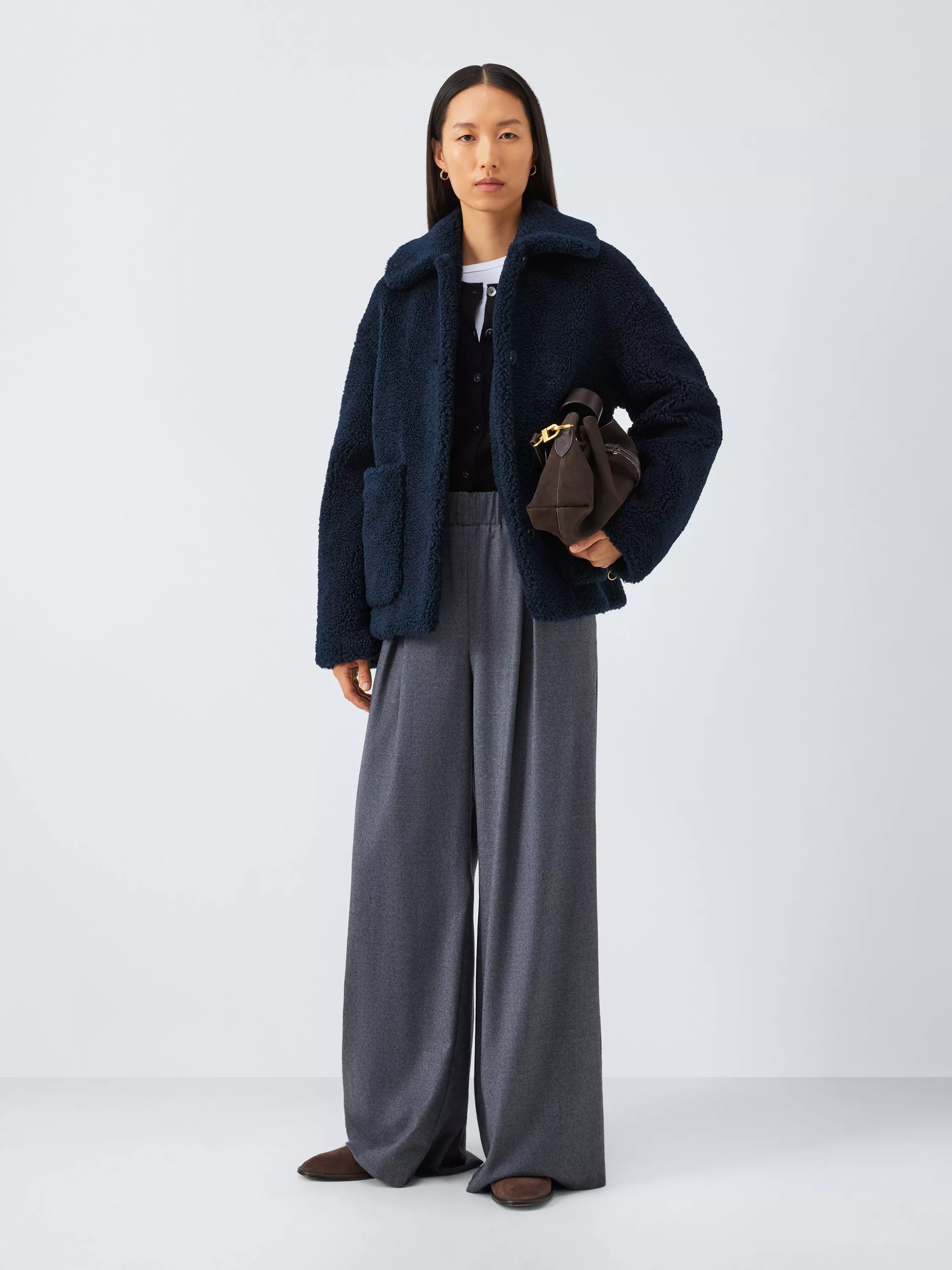 Super-soft faux-fur teddy coat with an oversized collar and wrap-over framing. Finished with fully lined pockets at the waist, perfect for keeping frosty hands warm when the temperature drops. Enjoy all the benefits of a teddy coat in a short and lightweight design.
