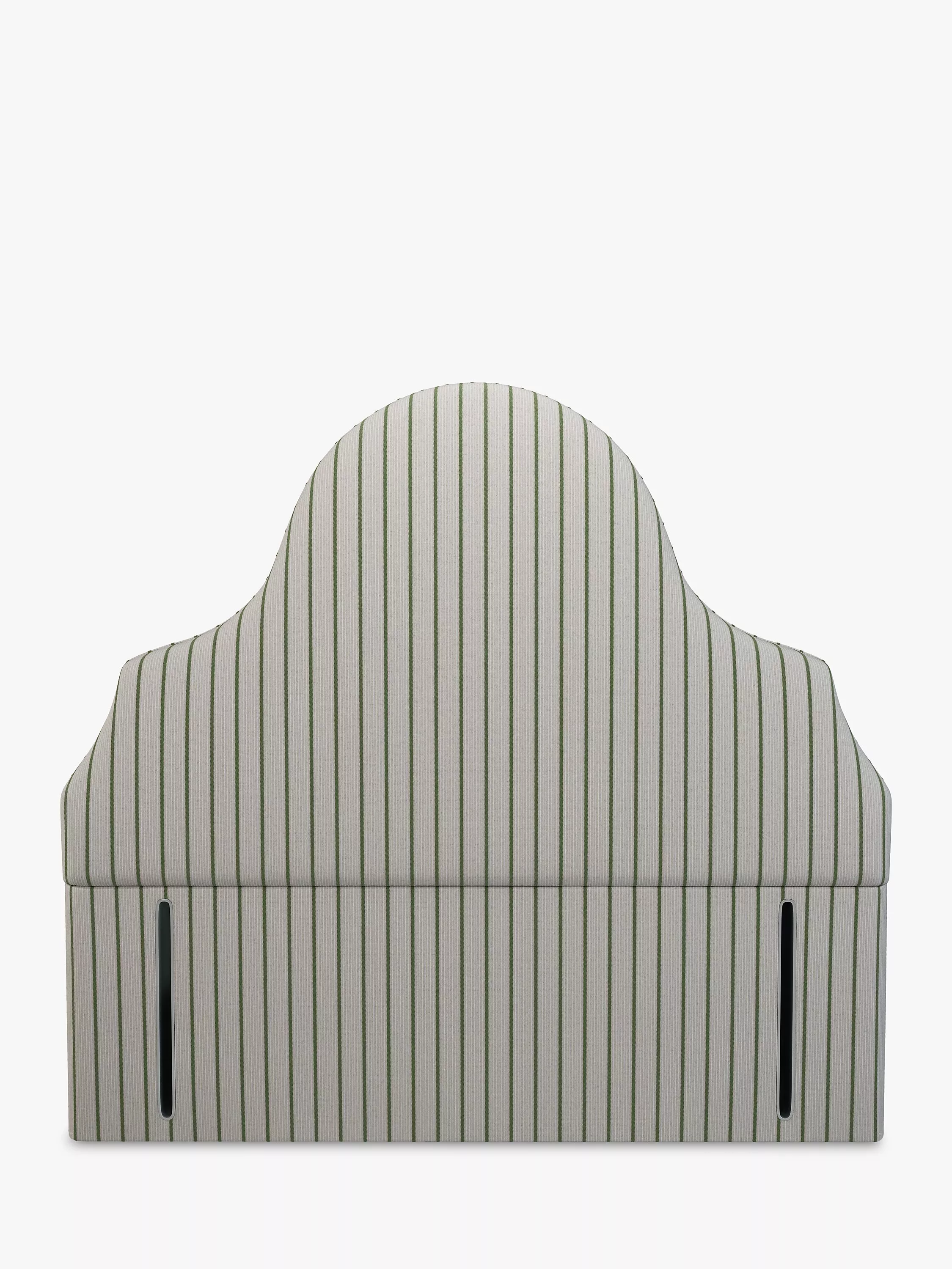 Made in the UK, our Silhouette headboard is upholstered in our classic ticking stripe fabric, made from recycled fibres. The headboard is tall and art deco in design with feature piping around the edge, creating a stunning focal point in any bedroom. A full-depth headboard that's padded for comfort, with easy assembly using the headboard bolts that are included with your divan base.
