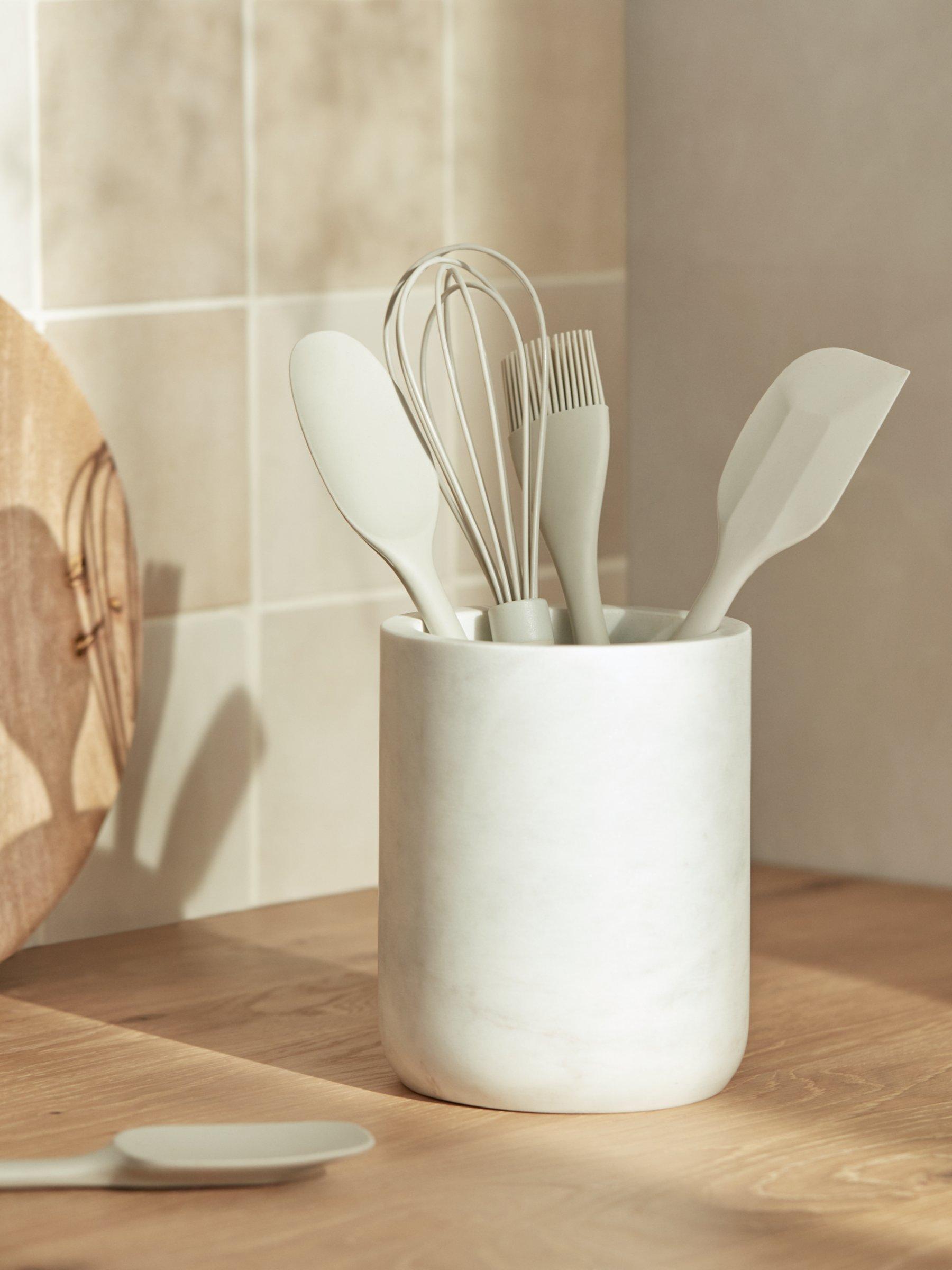 This handy spatula is made of heat-resistant silicone for use when cooking, mixing and baking. Designed with both square and round edges for cooking with different shaped pans, it's dishwasher safe for easy cleaning.