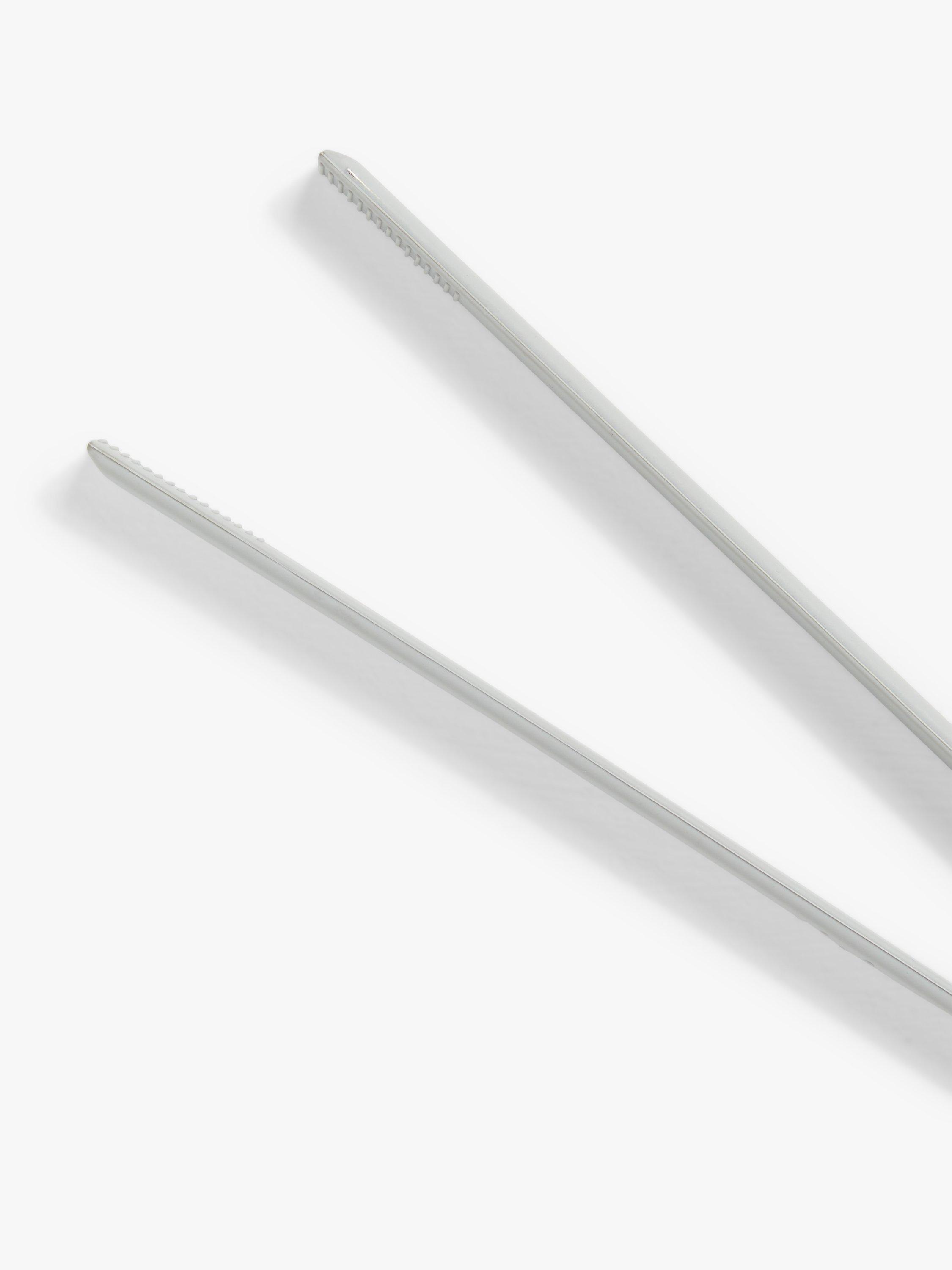 A sleek and minimalist pair of tongs for turning and picking up food when cooking or serving. Made from heat-resistant silicone, they can be used with warm to hot pans and cookware with non-stick surfaces. The textured inner sides provide added grip.