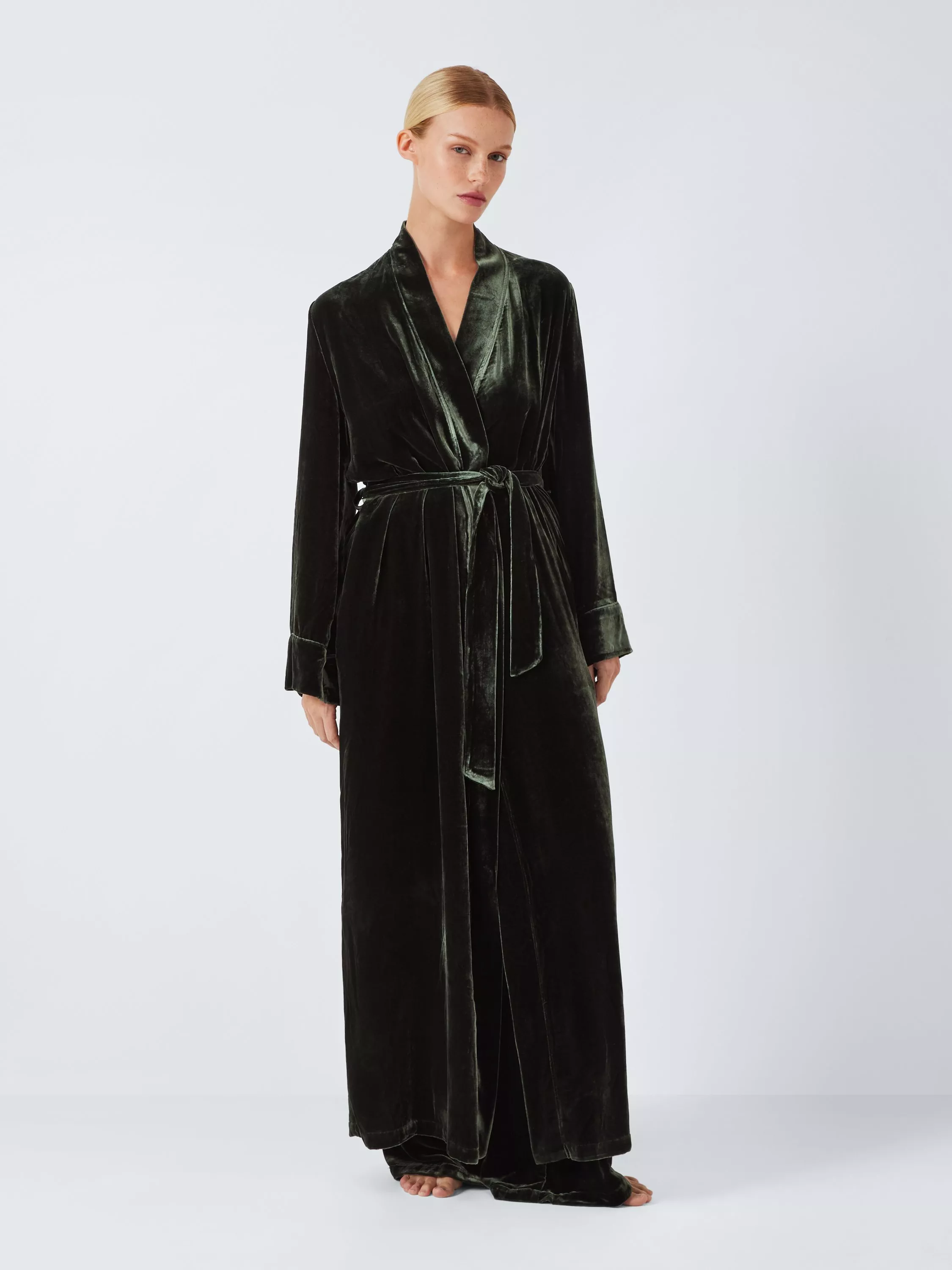 John LewisSilk Blend Velvet Dressing Gown, Khaki