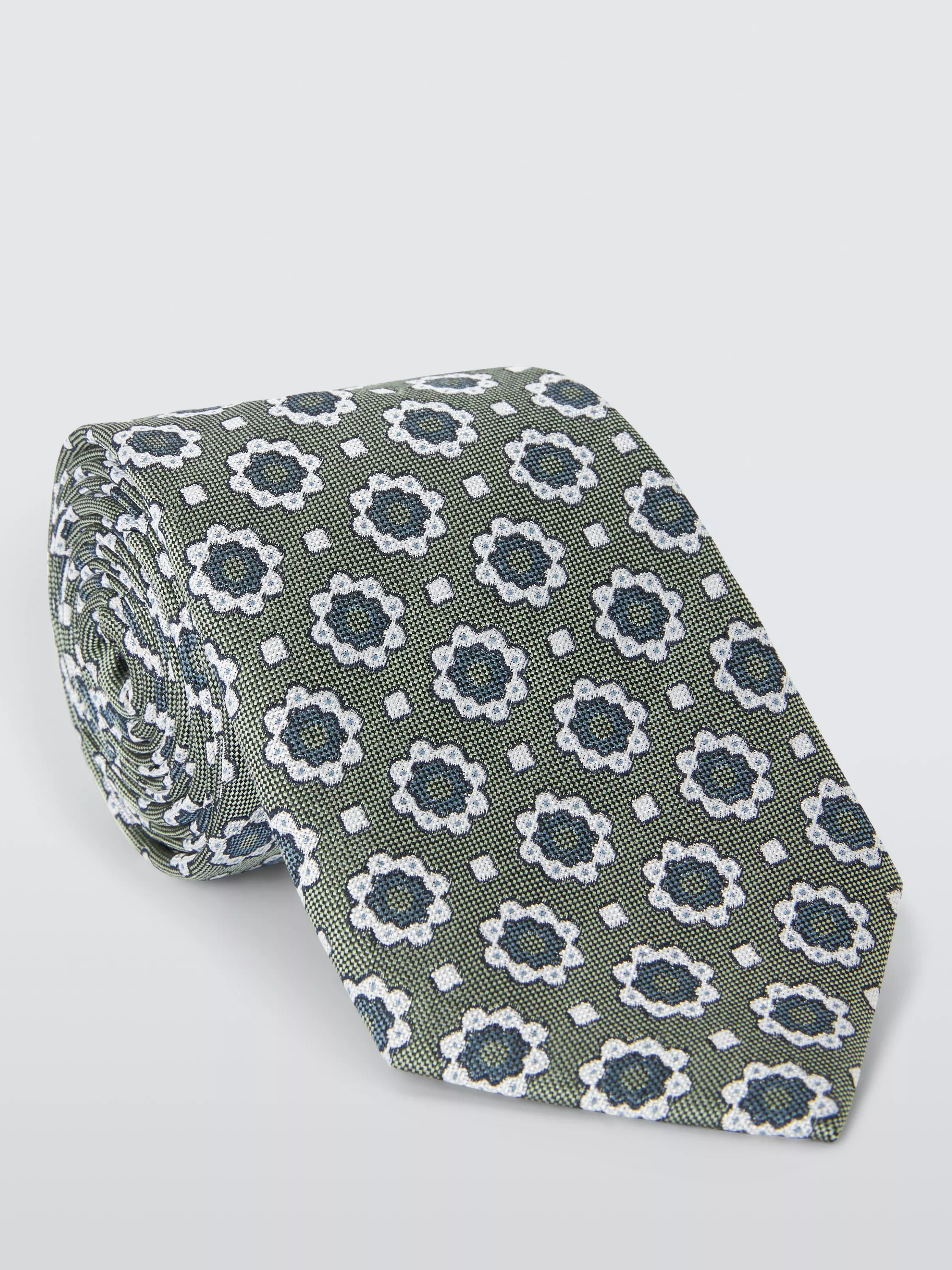 John LewisSilk Foulard Pattern Tie, Green