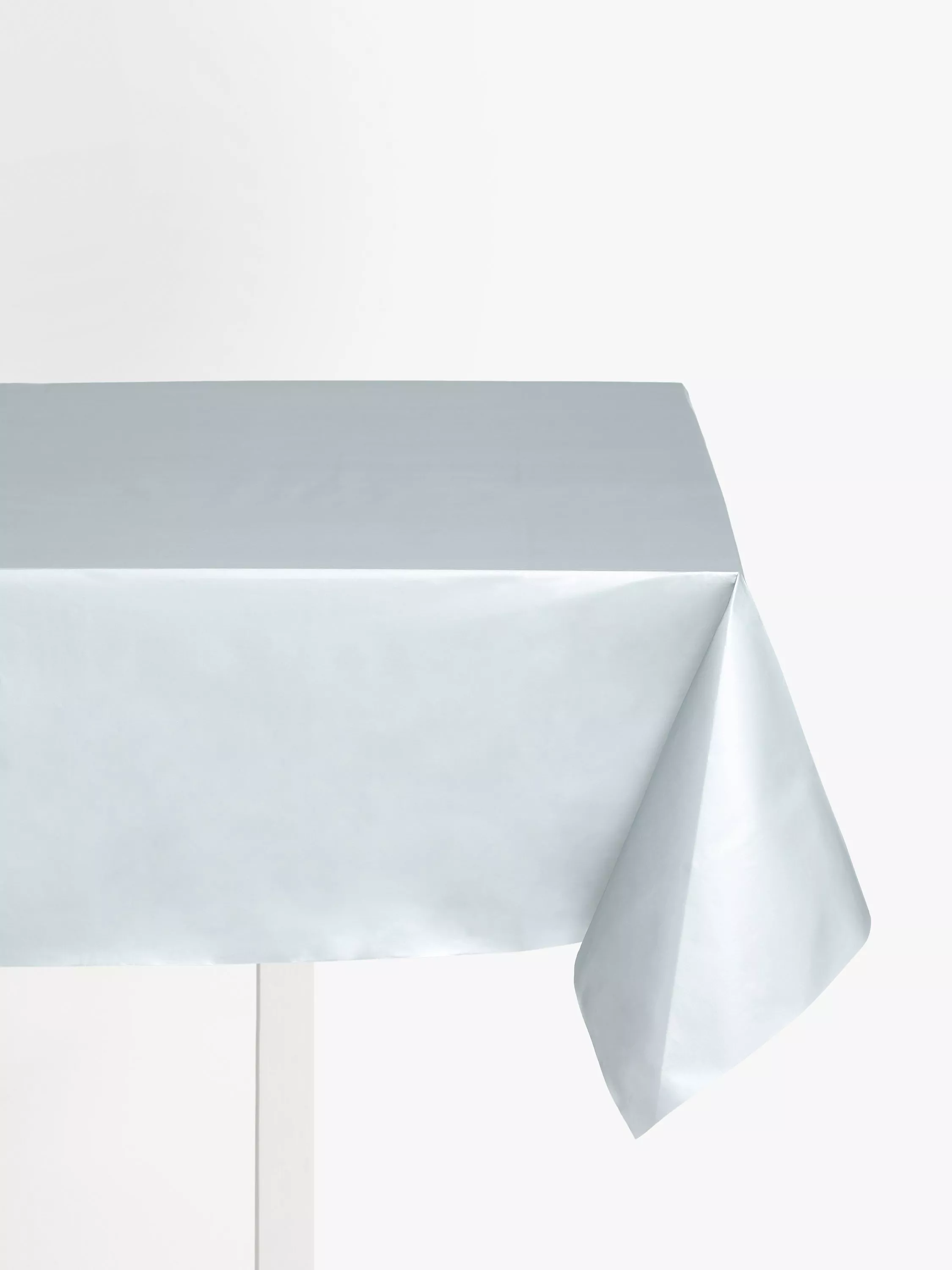 A heavyweight, wipeable tablecloth in shimmering silver.
