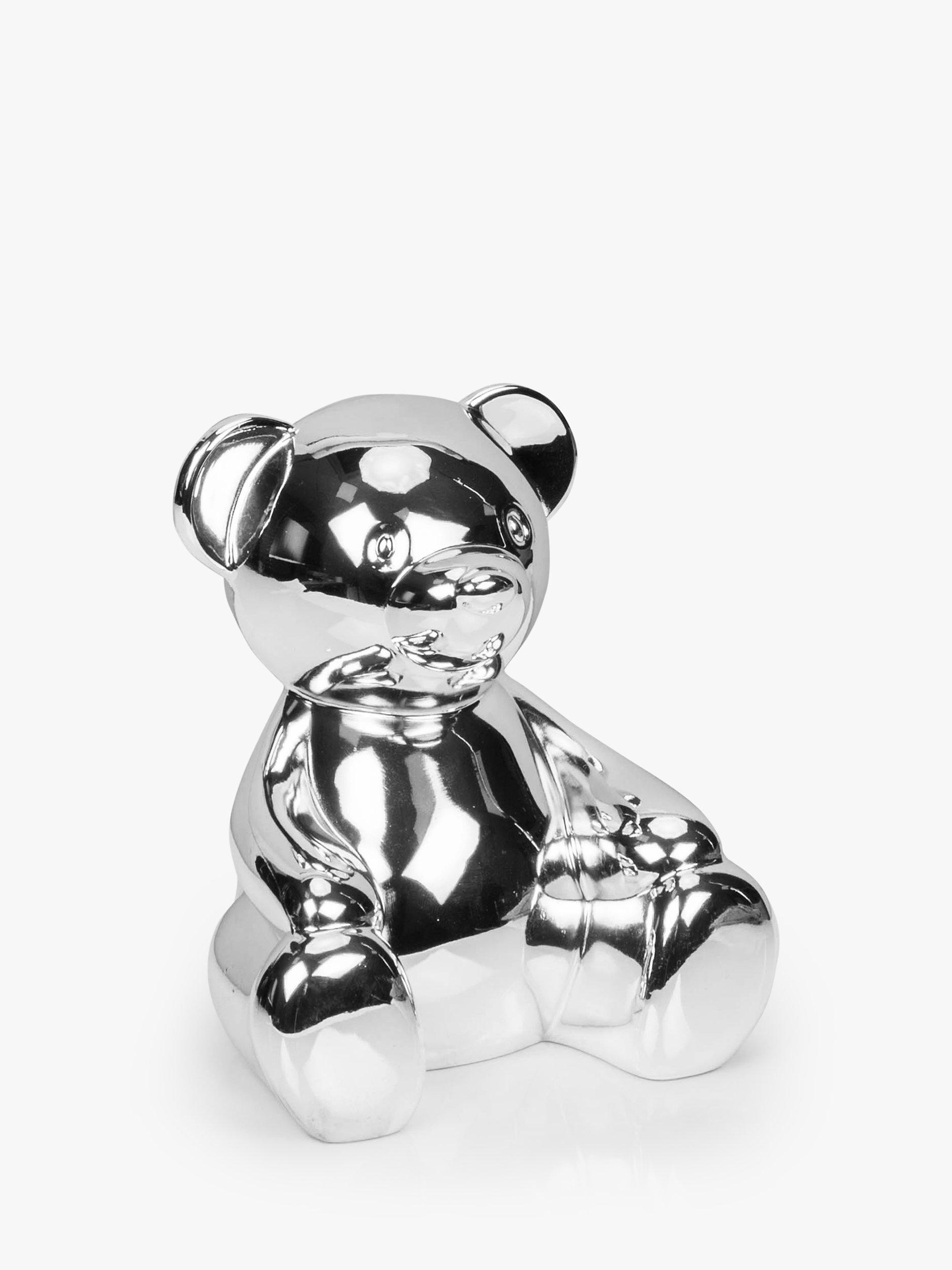 This adorable, silver plated Teddy money box is perfect for a thoughtful new baby, christening, first birthday or treasured gift. /p>