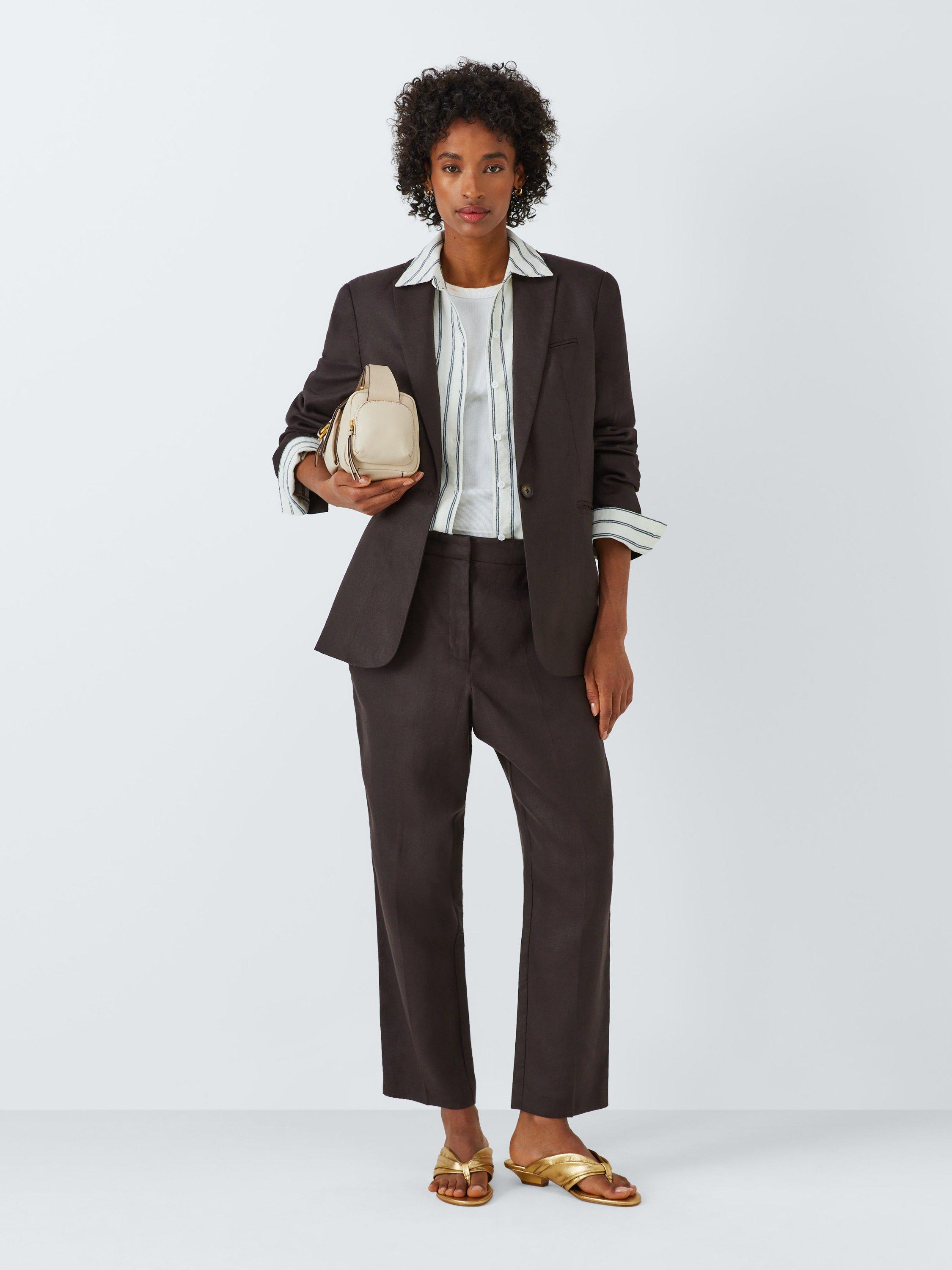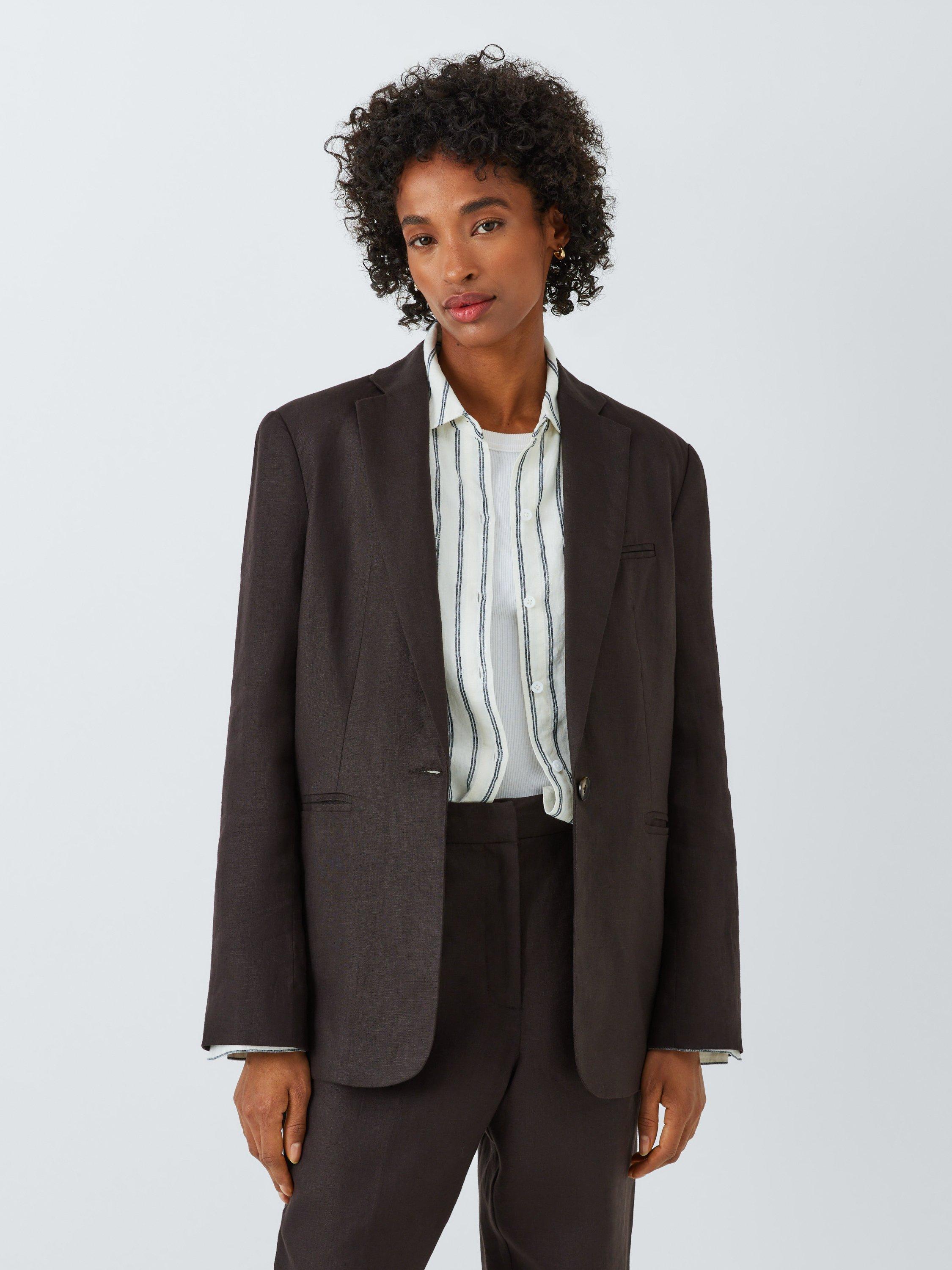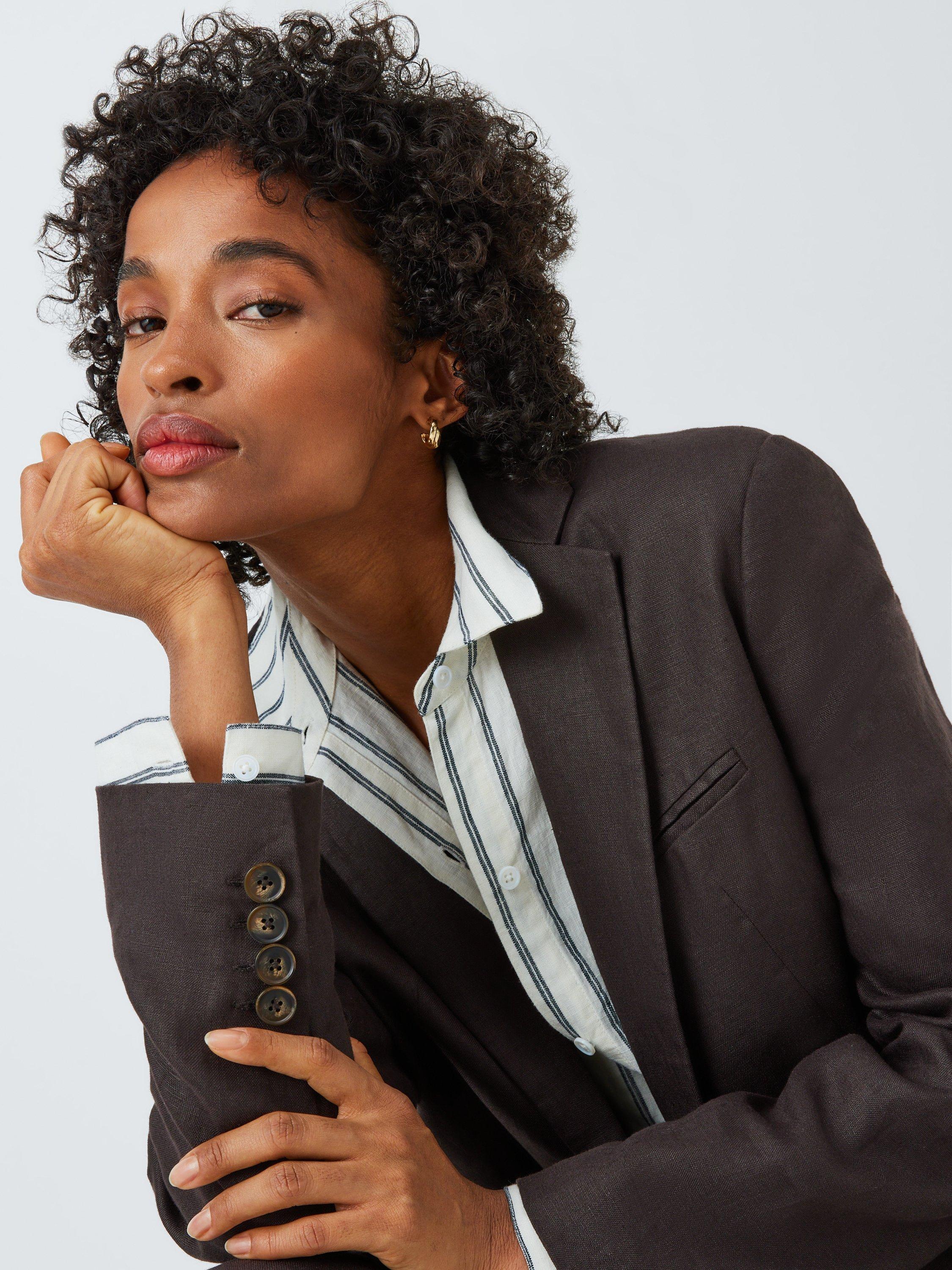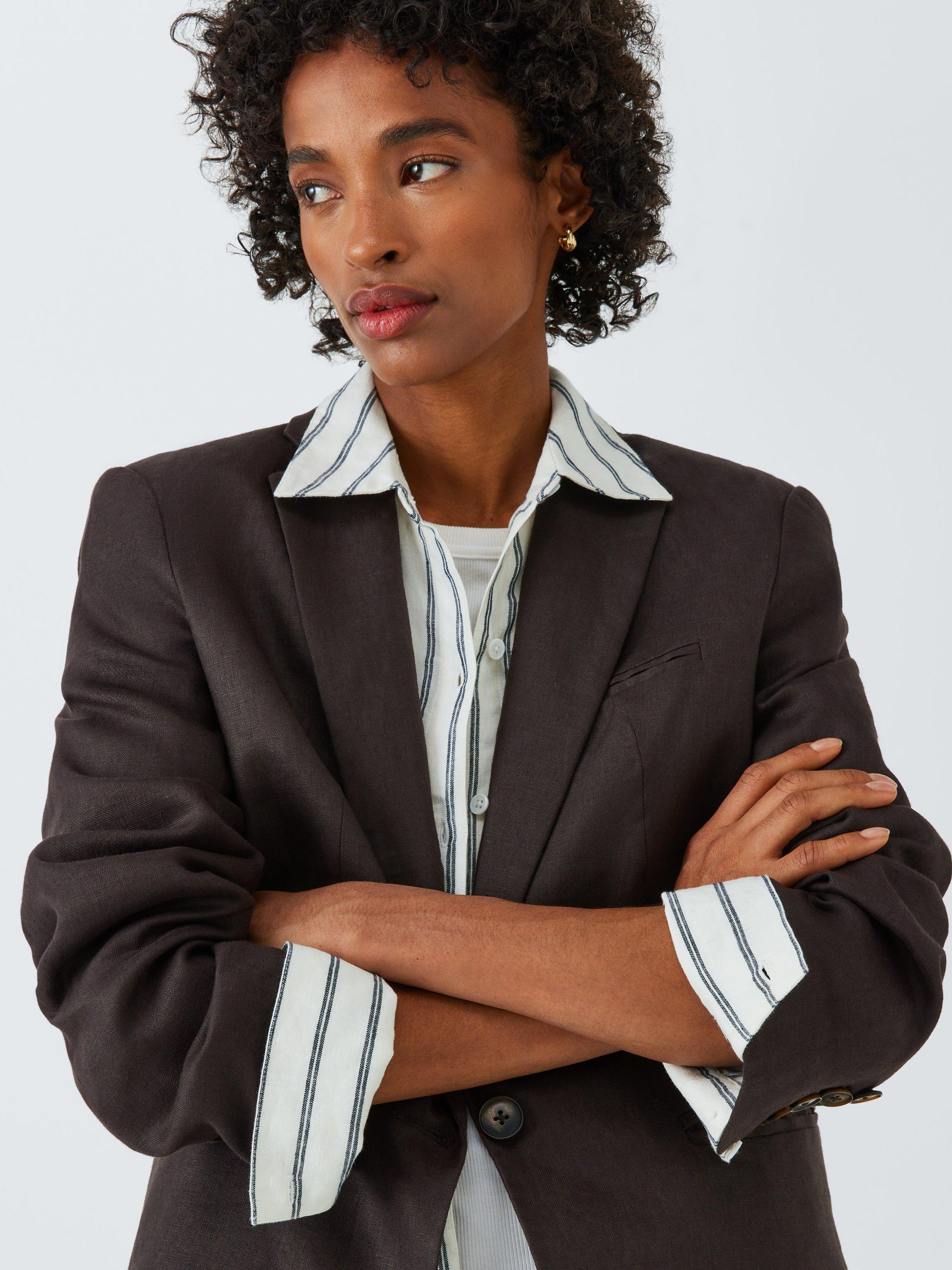 Look sharp with this linen blazer, in a tailored style it's finished with a single button. Use it to add structure to dresses, or keep it classic and layer over a tee.