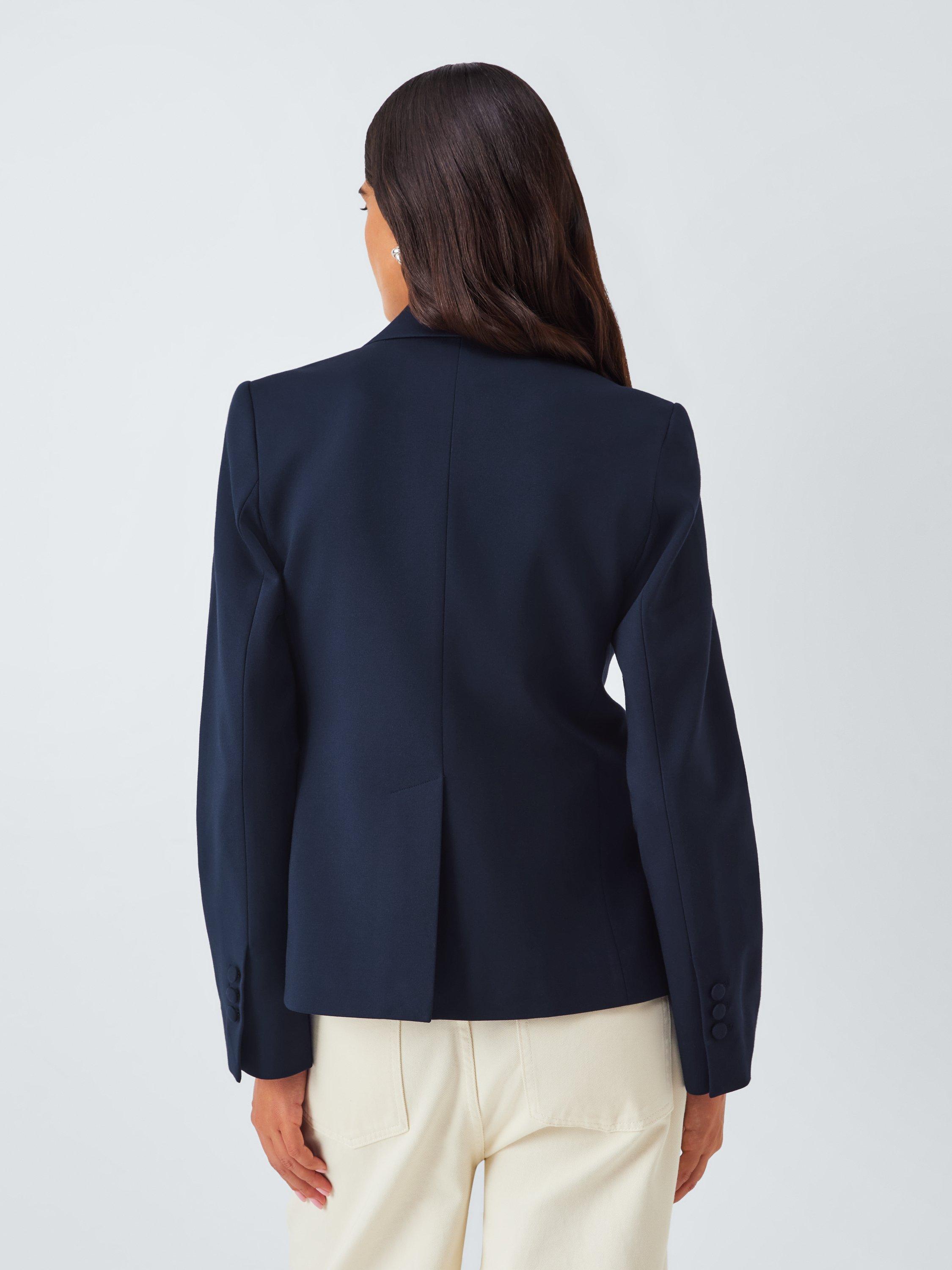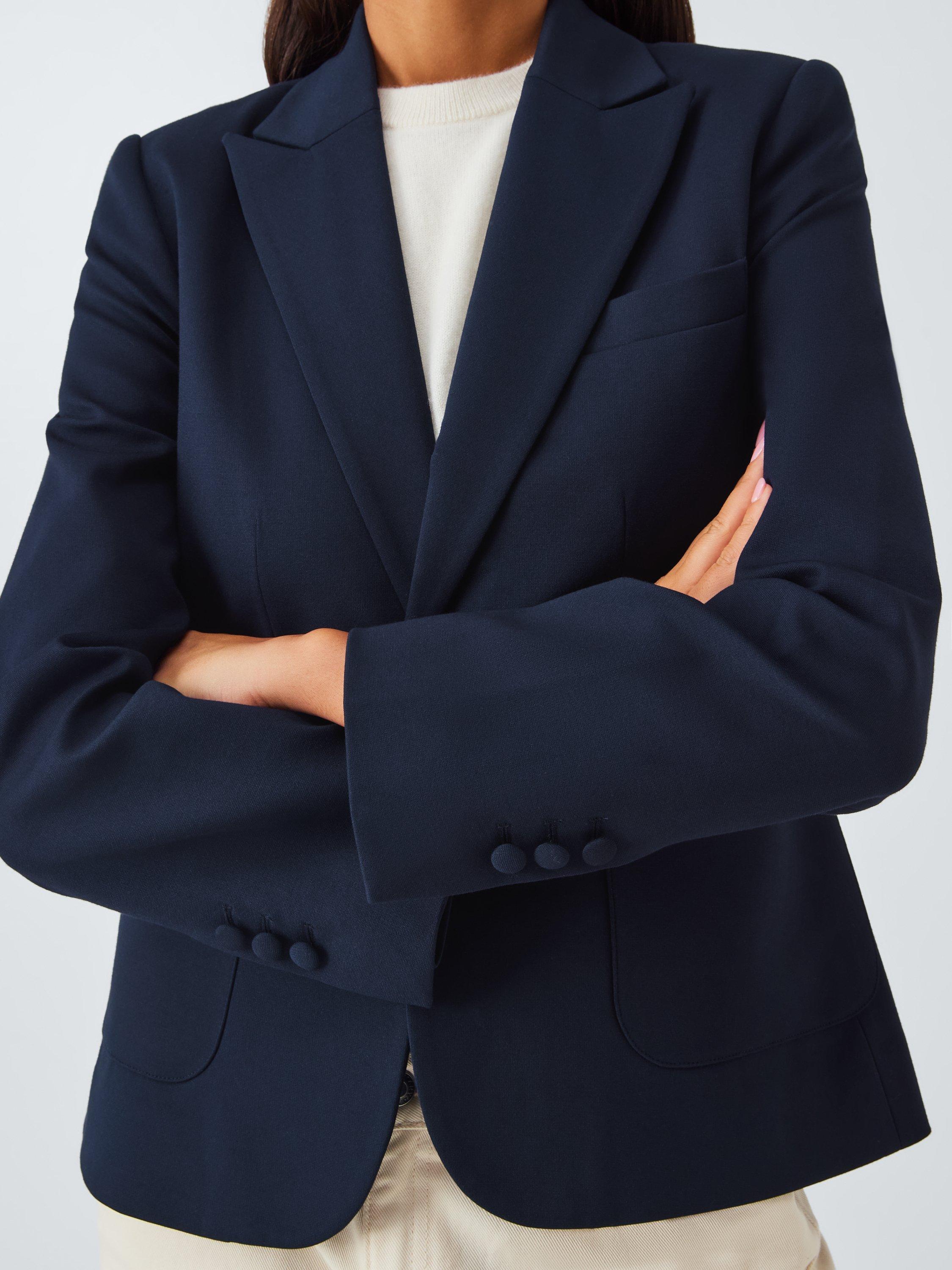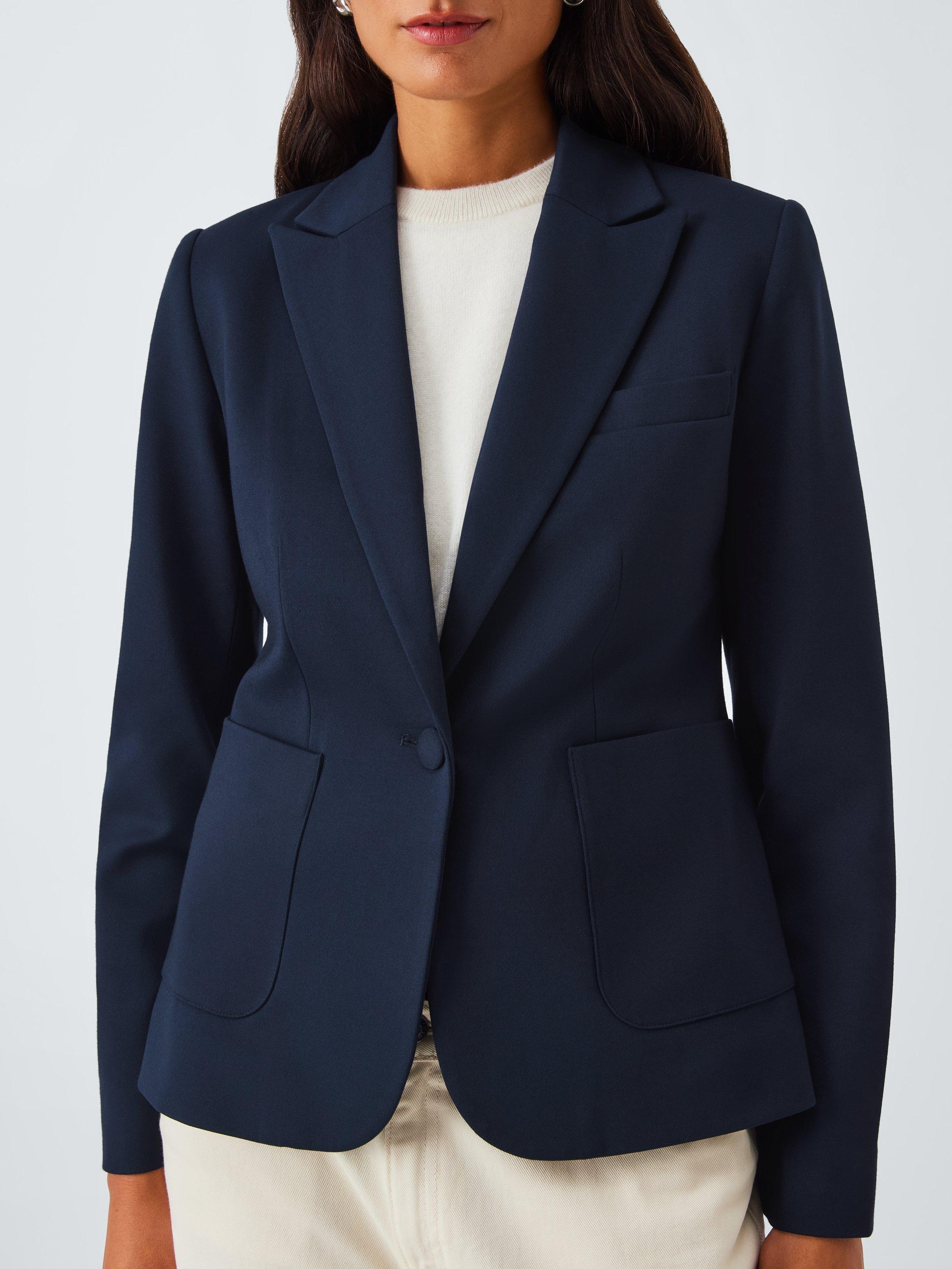 Fully lined for comfortable wear, the jacket features classic tailoring details with seams to carve out your shape, notch lapels, a single welt chest pocket and two front pockets. To maintain its modernity, it has a short shape through the body, with a defining fabric-covered single button to fasten.