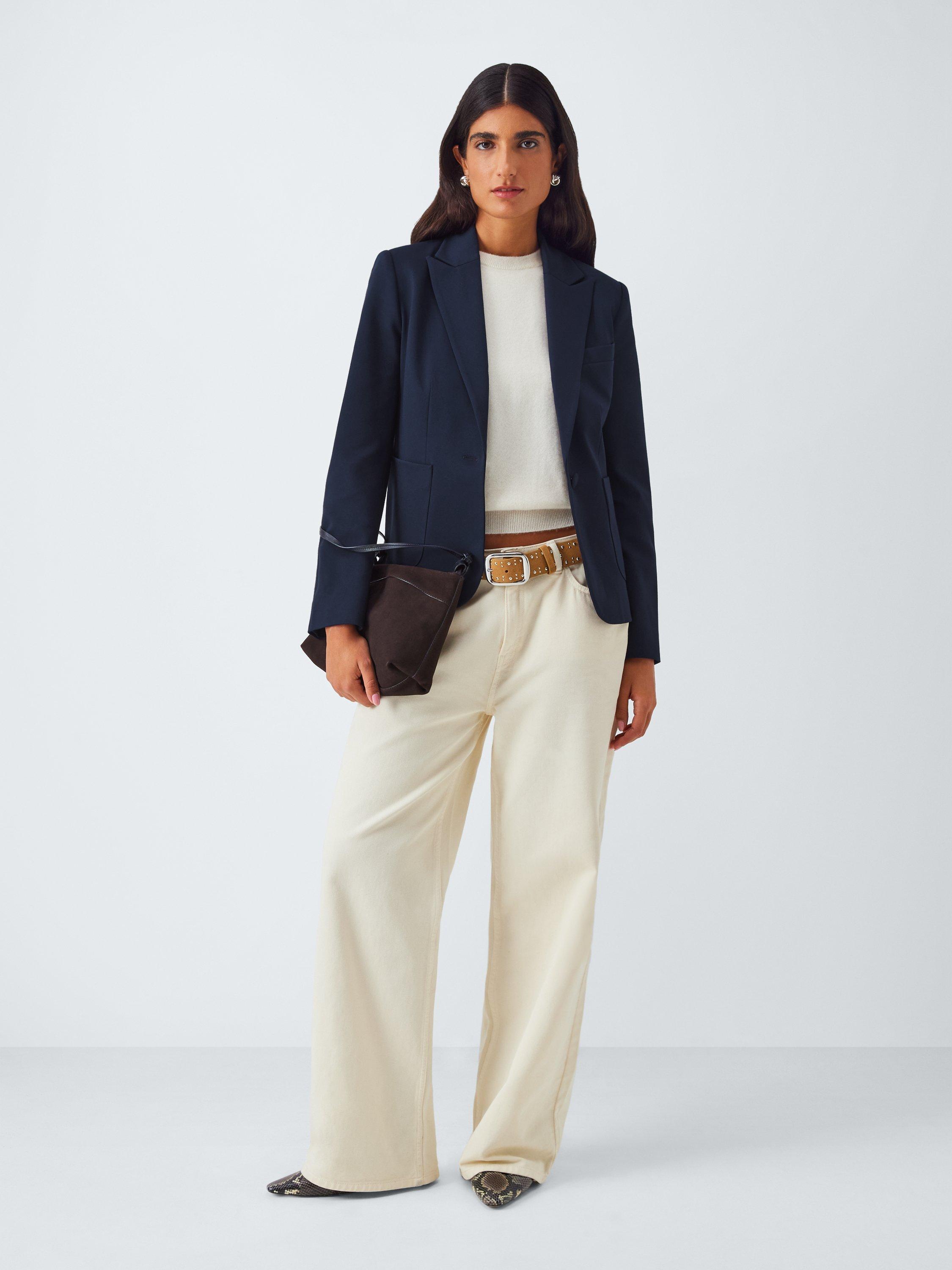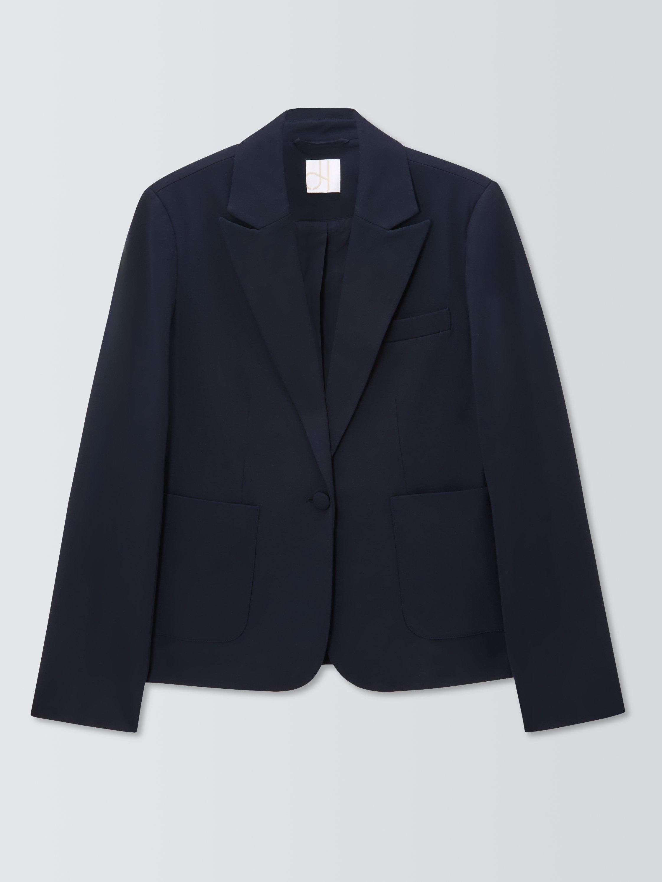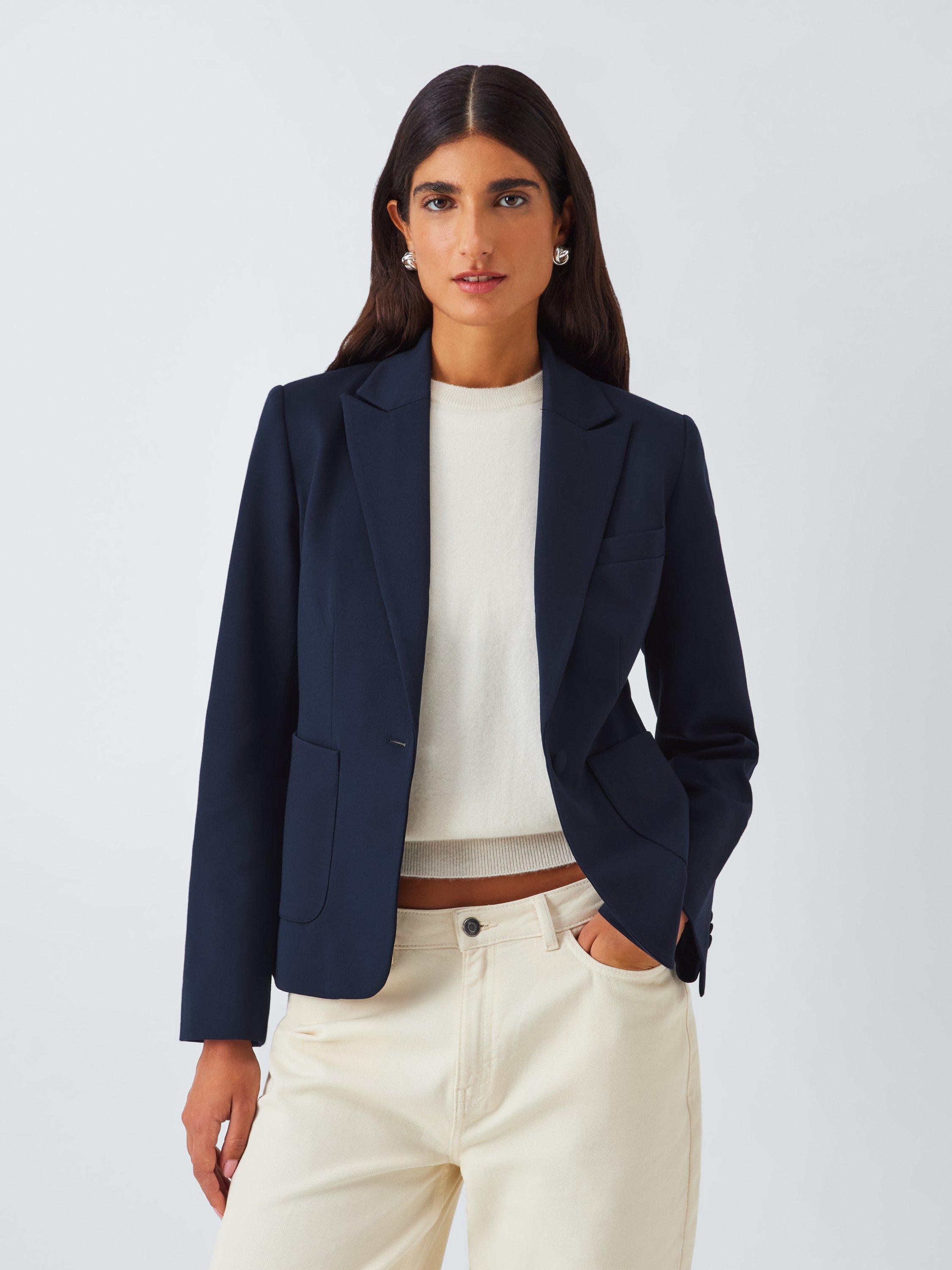 Fully lined for comfortable wear, the jacket features classic tailoring details with seams to carve out your shape, notch lapels, a single welt chest pocket and two front pockets. To maintain its modernity, it has a short shape through the body, with a defining fabric-covered single button to fasten.