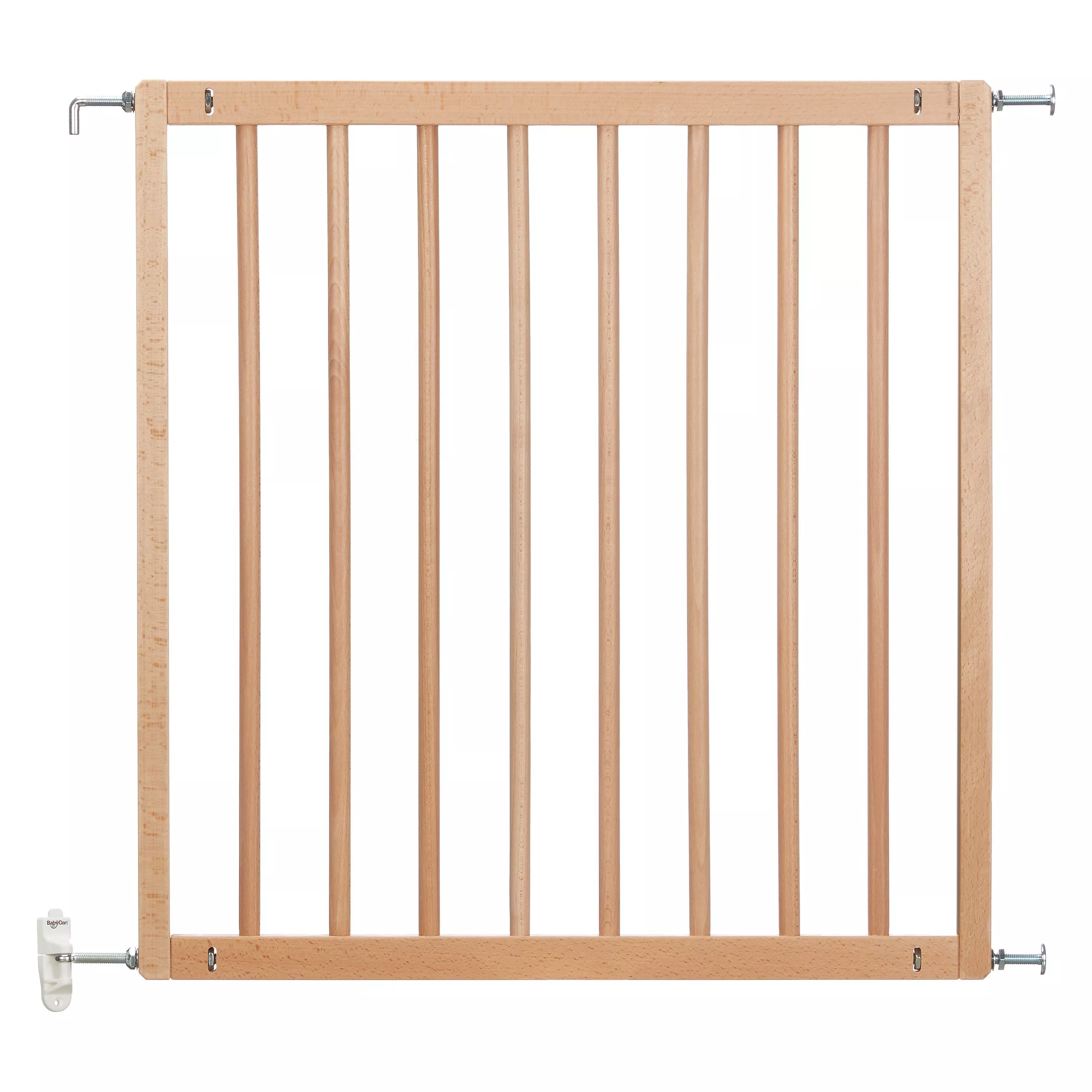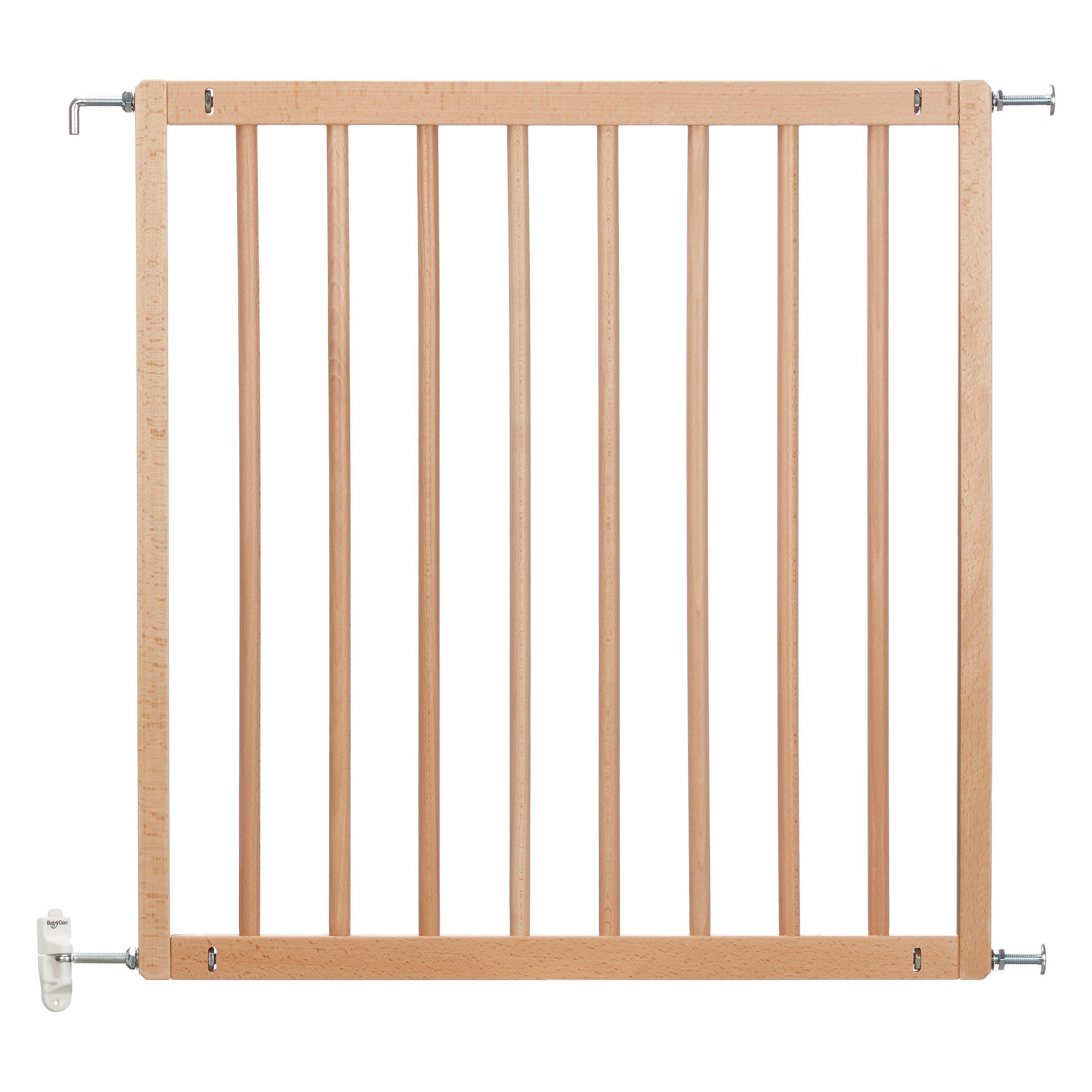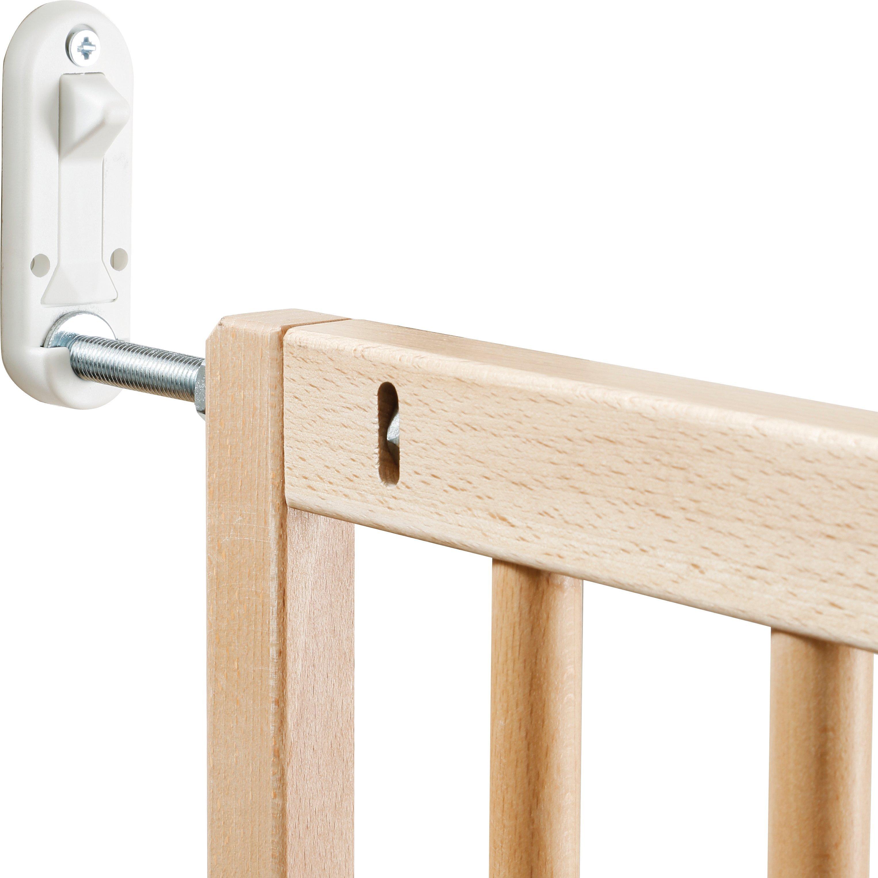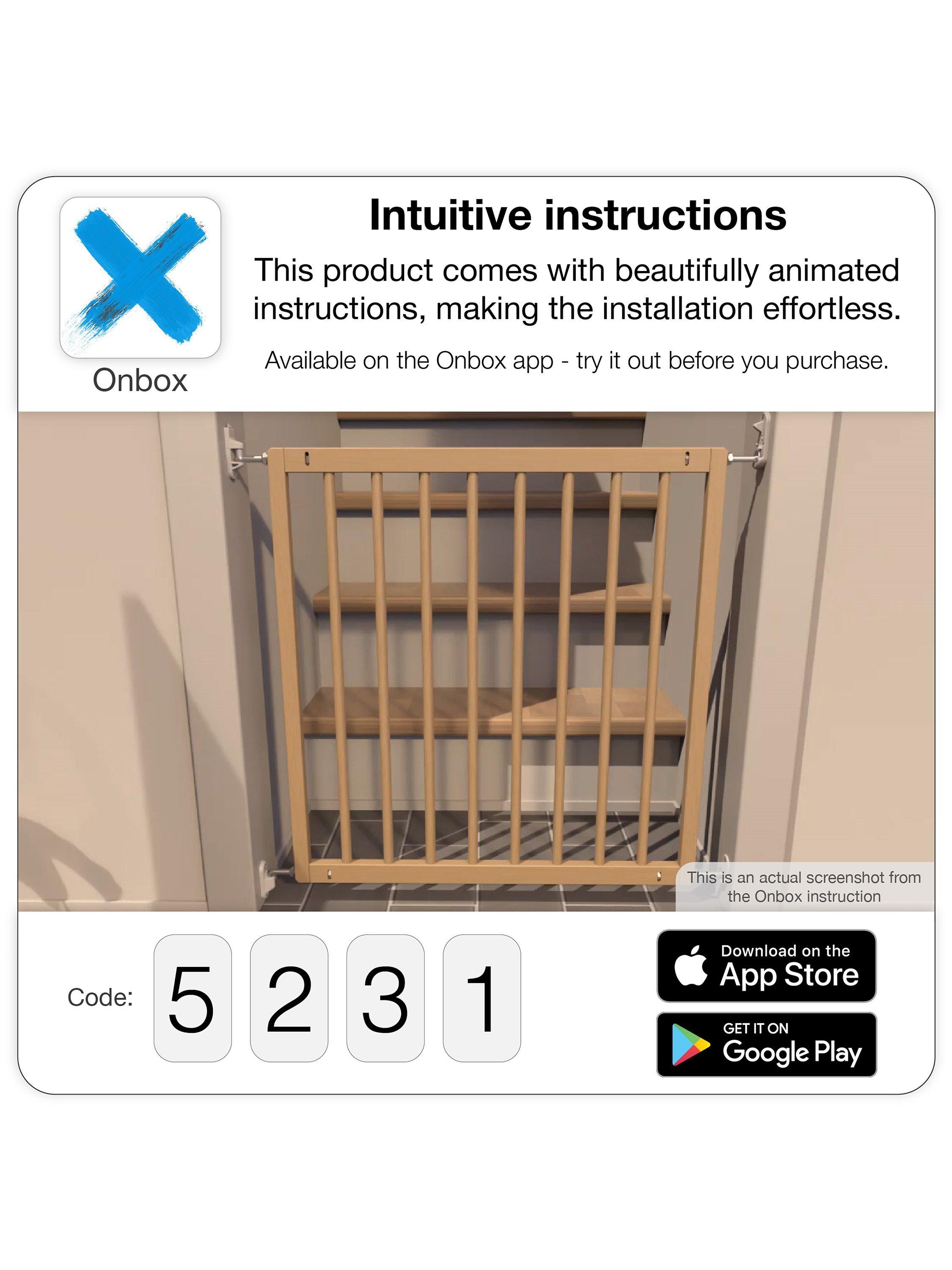 Made from European FSC graded beech wood, the gate is designed to fit openings of 72.5cm - 78.5cm, with a mounted height of 73cm, and includes adult-operated quick release wall fittings for when the gate is not in use. The gate has to be fixed with screws onto the wall.