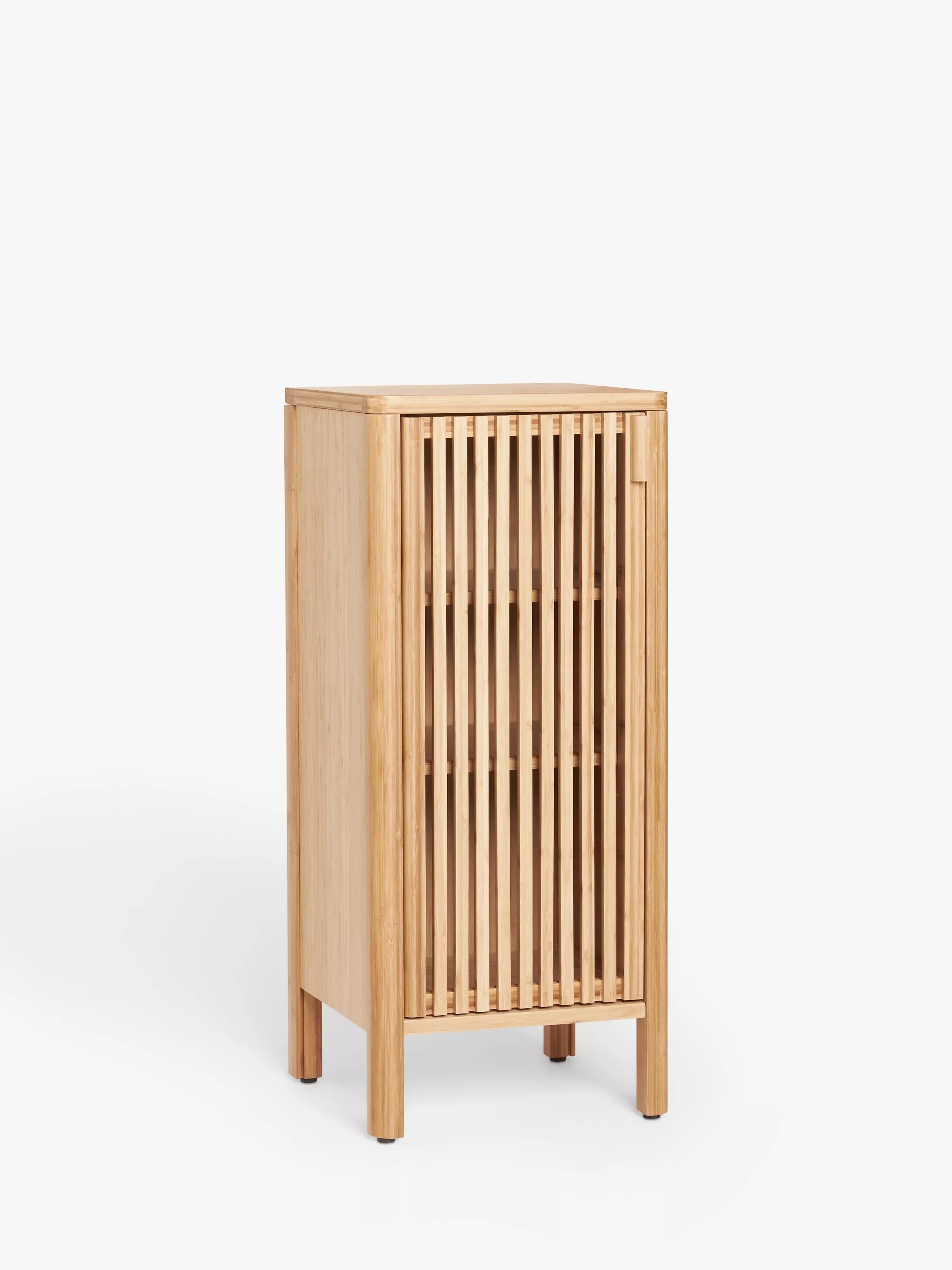Bring a streamlined and relaxing spa ambience to your bathroom with this bamboo slatted cupboard.