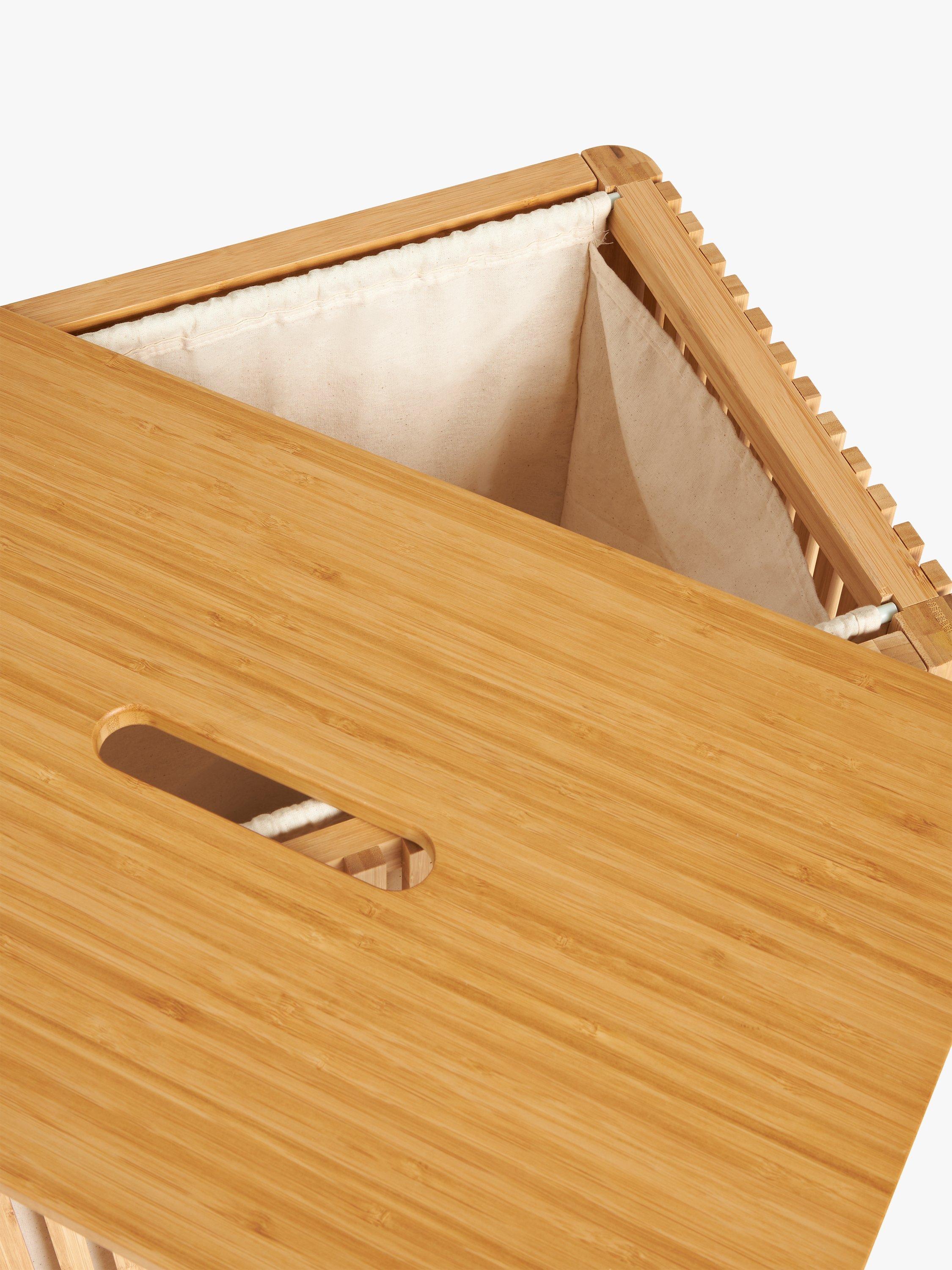 Neatly tidy your laundry away in this slatted bin, made with a bamboo and featuring a cotton inner lining. With a simple lid, it's a great way to keep your bathroom or bedroom tidy without compromising on style.
