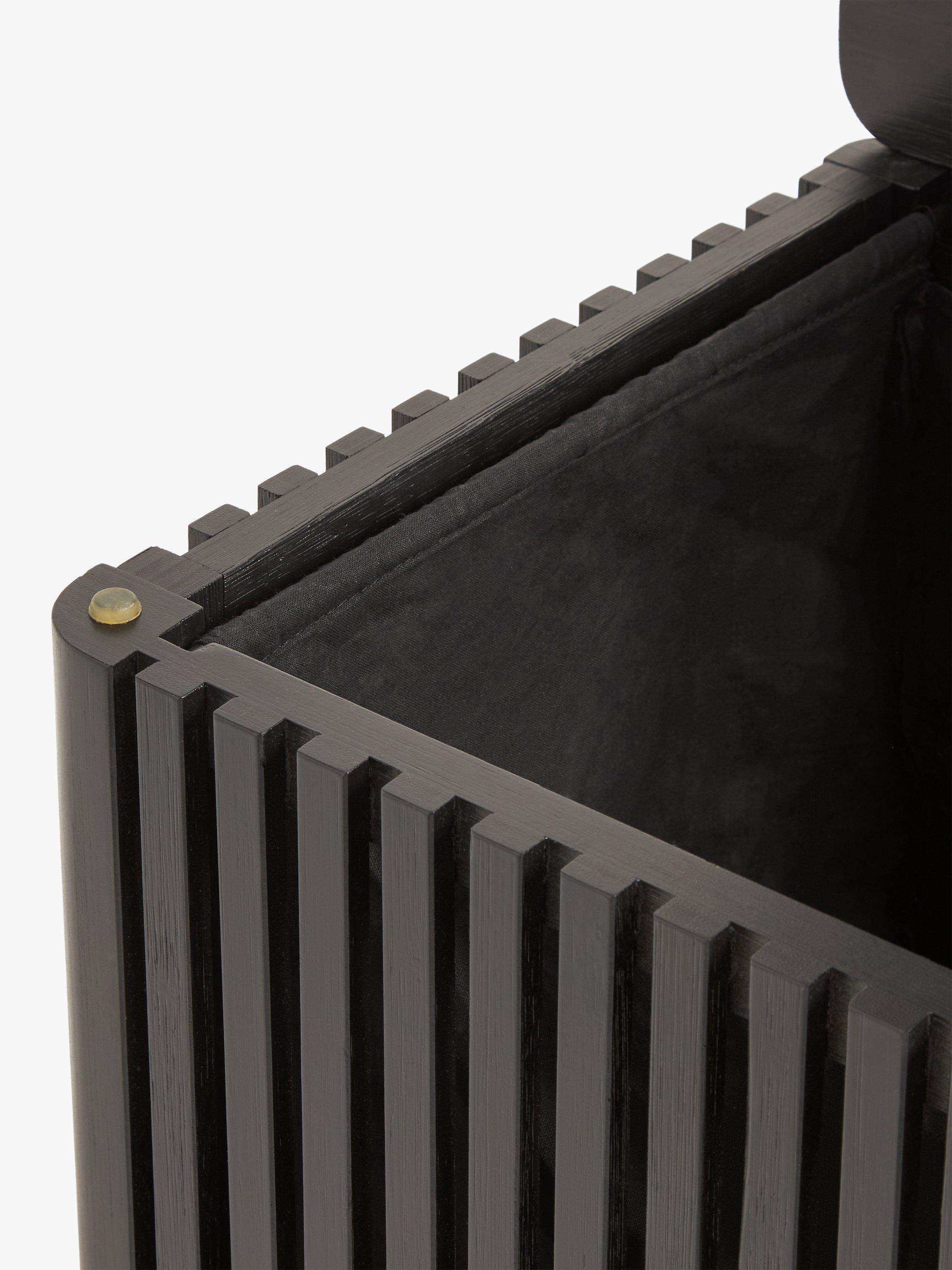 Neatly tidy your laundry away in this slatted bin, made with a bamboo and featuring a cotton inner lining. With a simple lid, it's a great way to keep your bathroom or bedroom tidy without compromising on style.