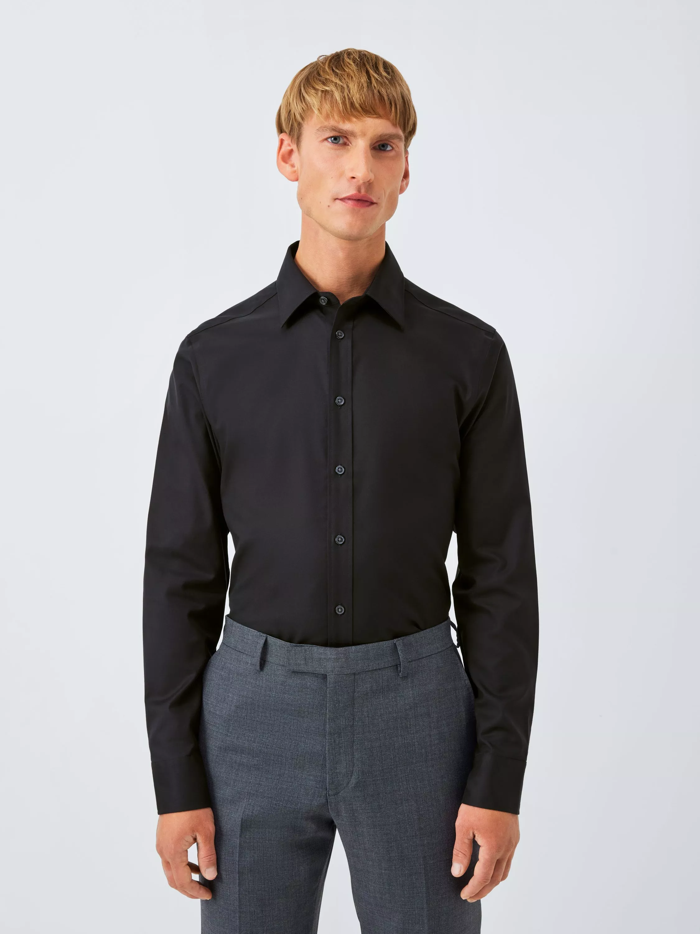 This classic shirt is cut from a crease-resistant cotton fabric that has been specially treated to reduce the need for ironing.