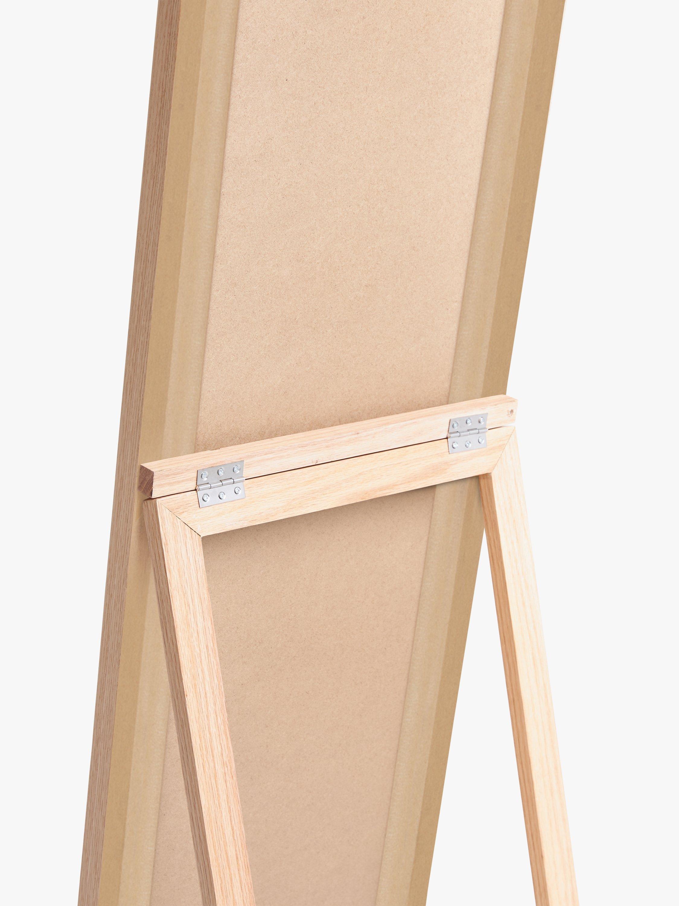 Solid oak wood cheval mirror in a sturdy freestanding design, softened by gently rounded corners. Captures full-length reflections. Ideal for the bedroom or dressing room, for checking your outfit head to toe.