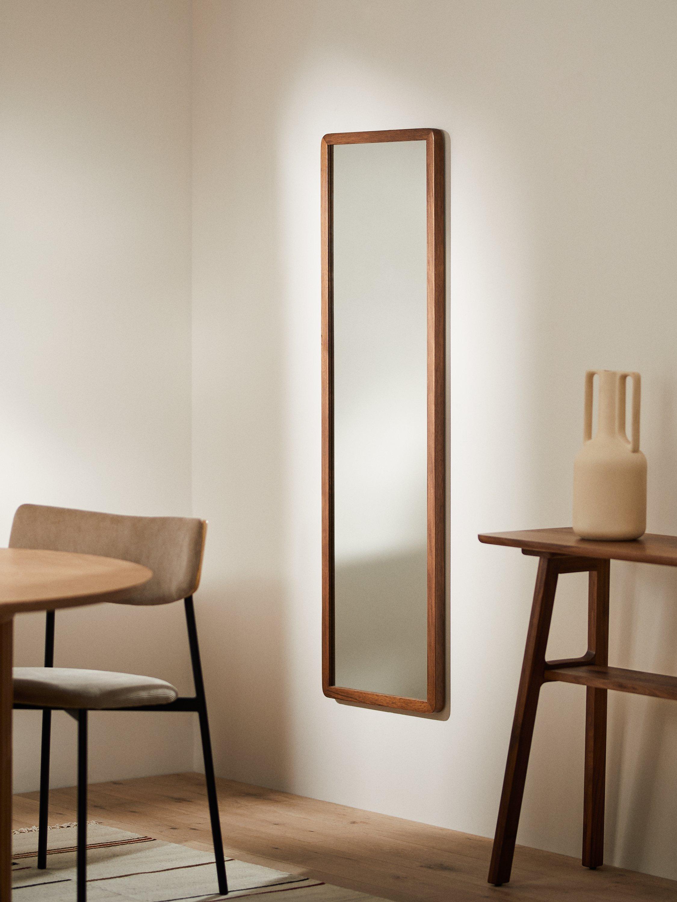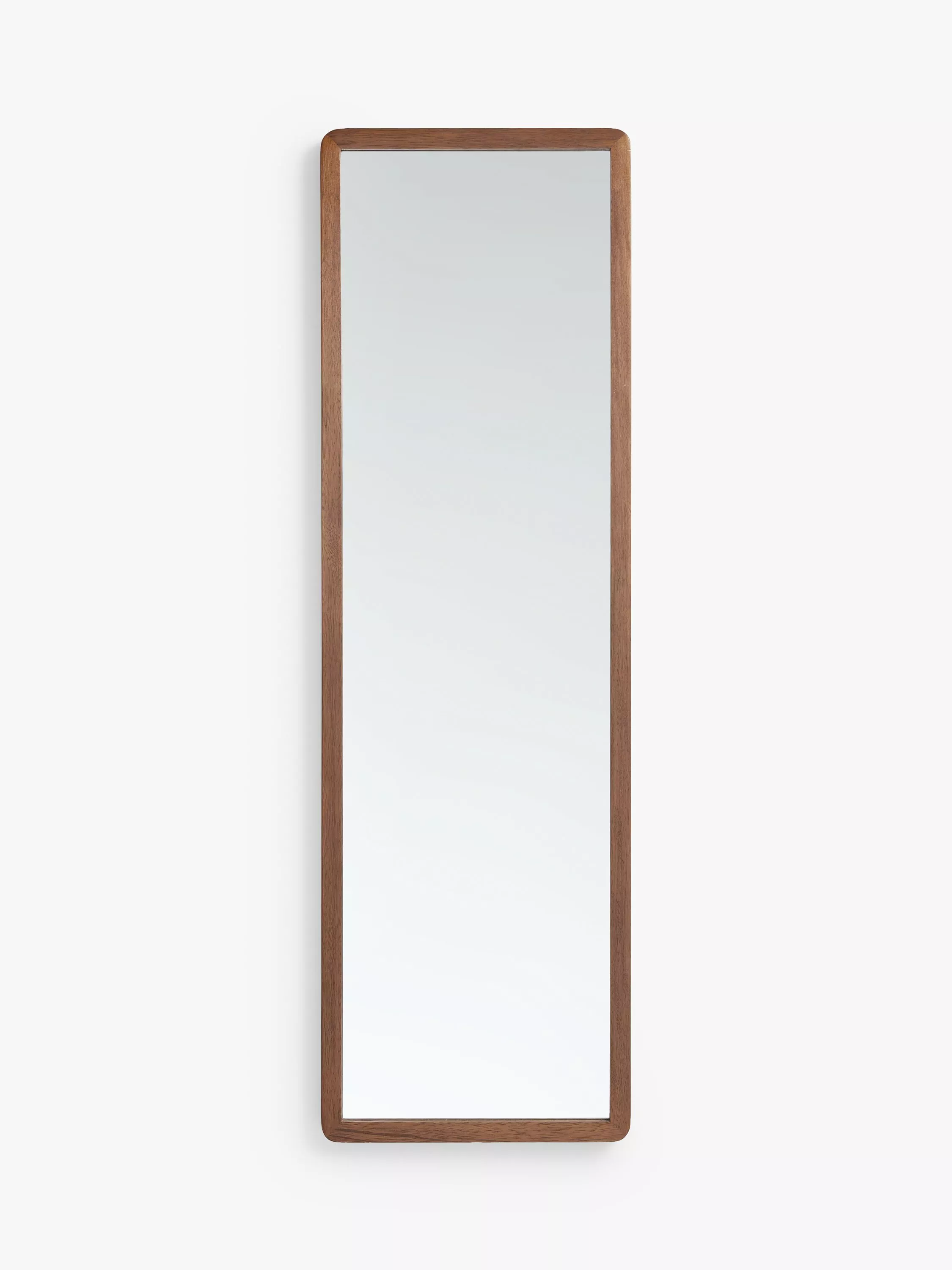 Solid oak wood hallway mirror, softened by gently rounded corners. Ready to hang on your wall, horizontally or vertically, using the D-ring fittings on the back.Available in light natural oak wood, a darker walnut stained finish or a black stained finish.