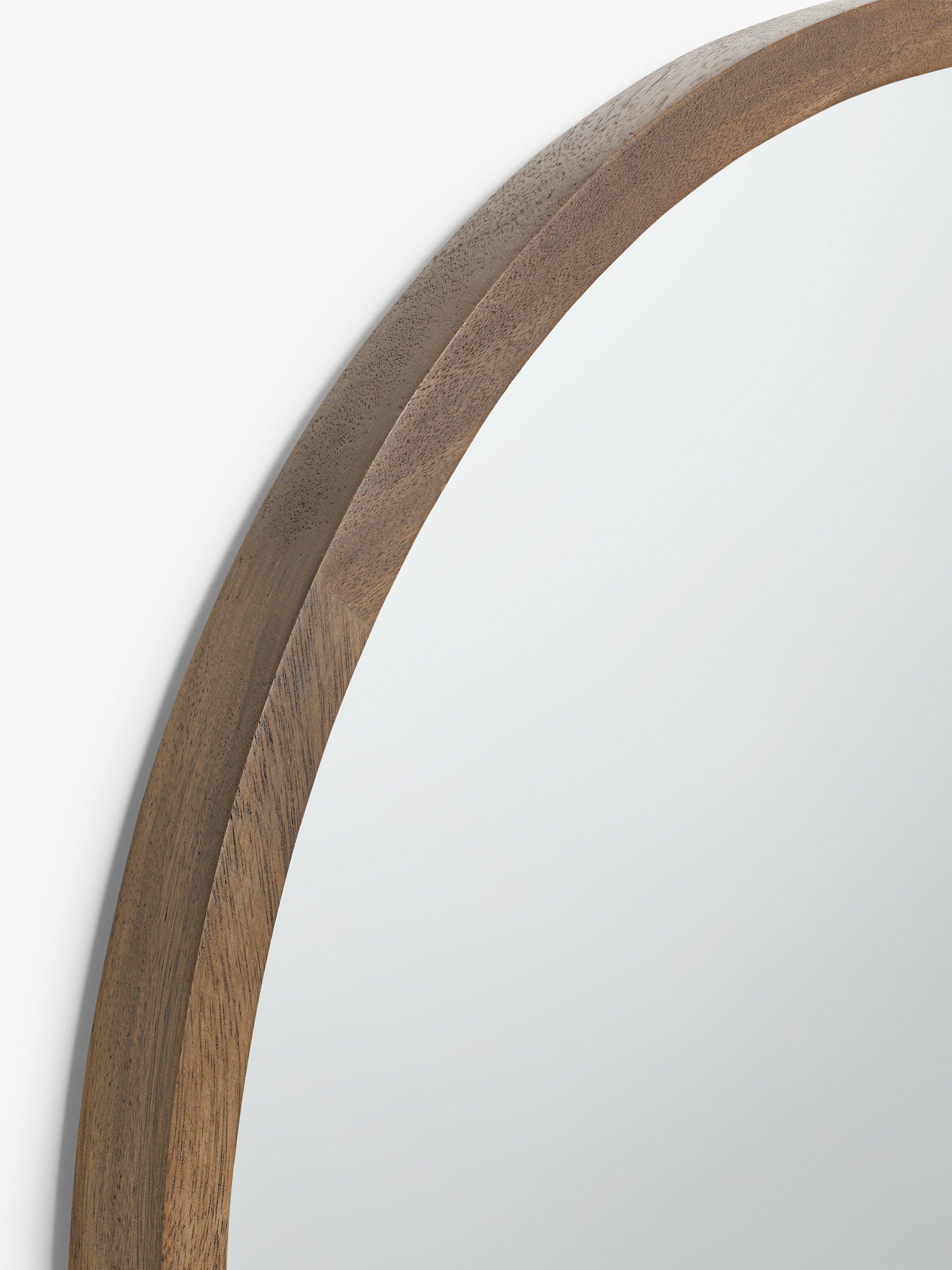 Solid oak wood round mirror, ready to hang on your wall using the D-ring fittings on the back. Available in light natural oak wood, a darker walnut stained finish or a black stained finish.