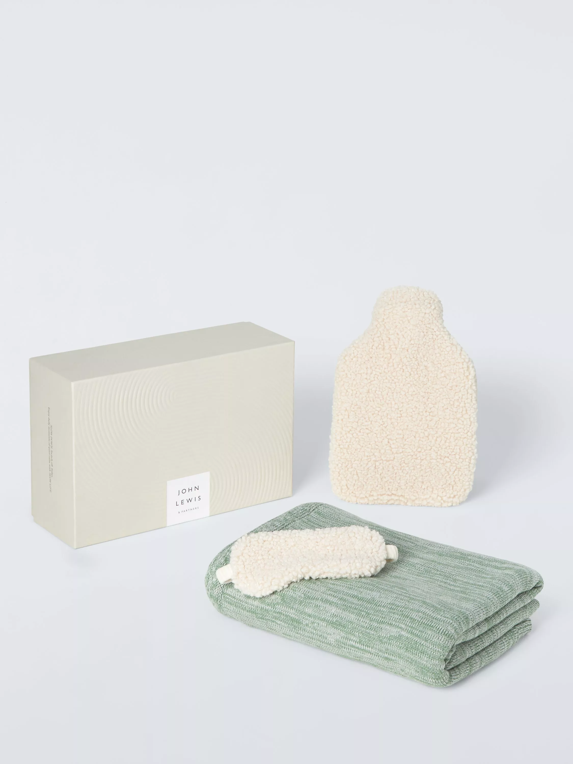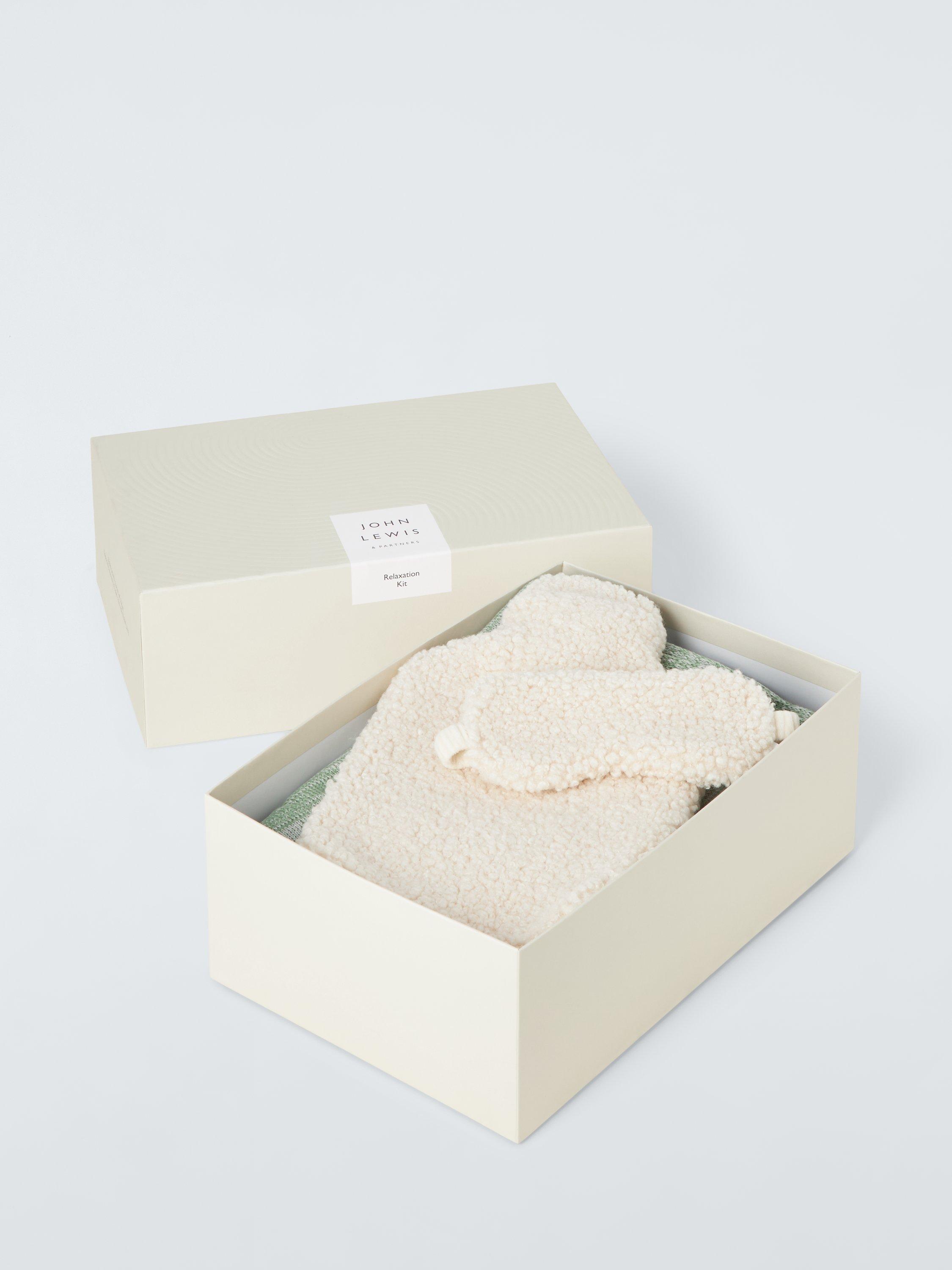John LewisSlow Living Throw/Eye Mask/Hot Water Bottle Relaxation Kit, Green/White