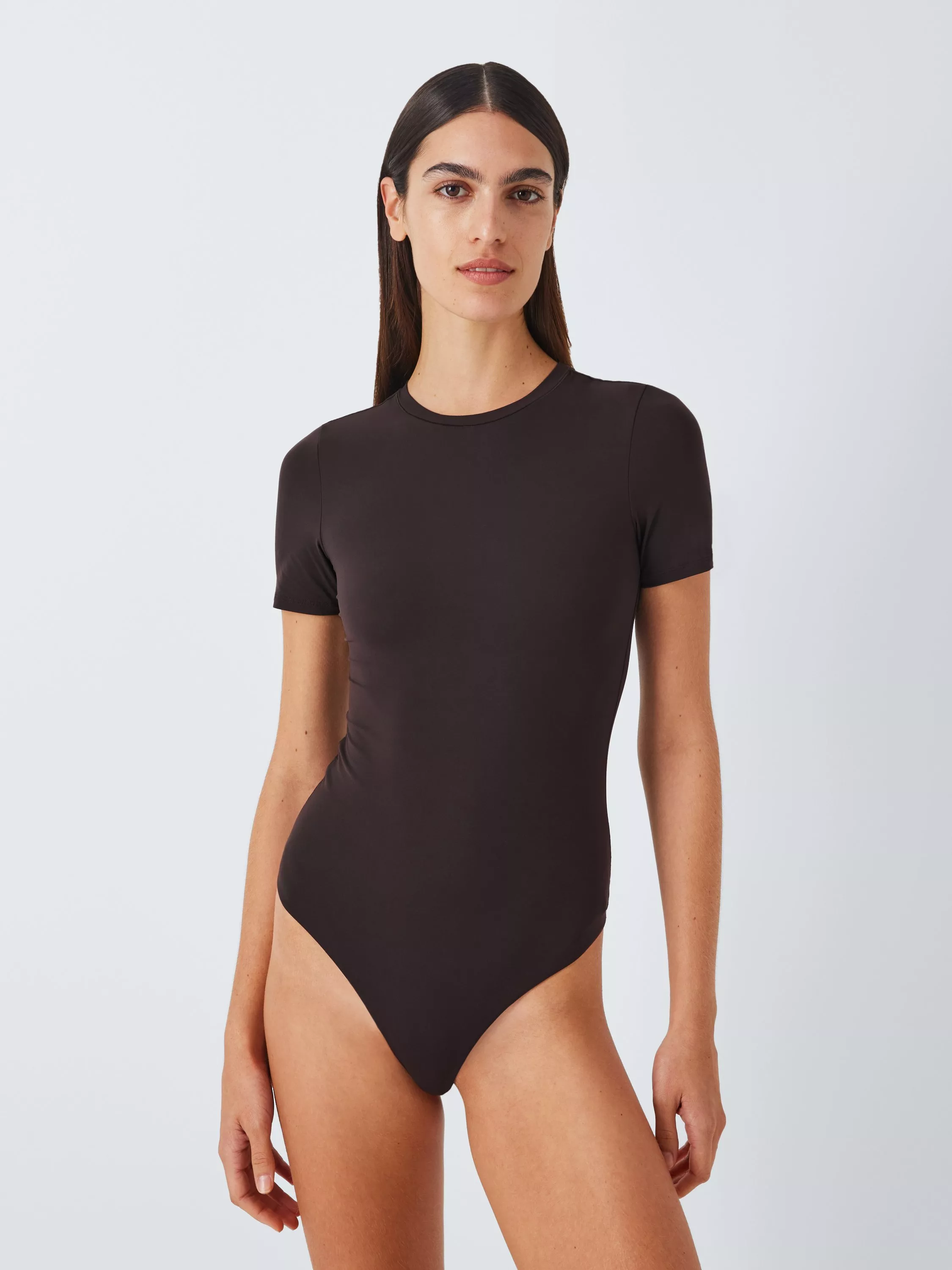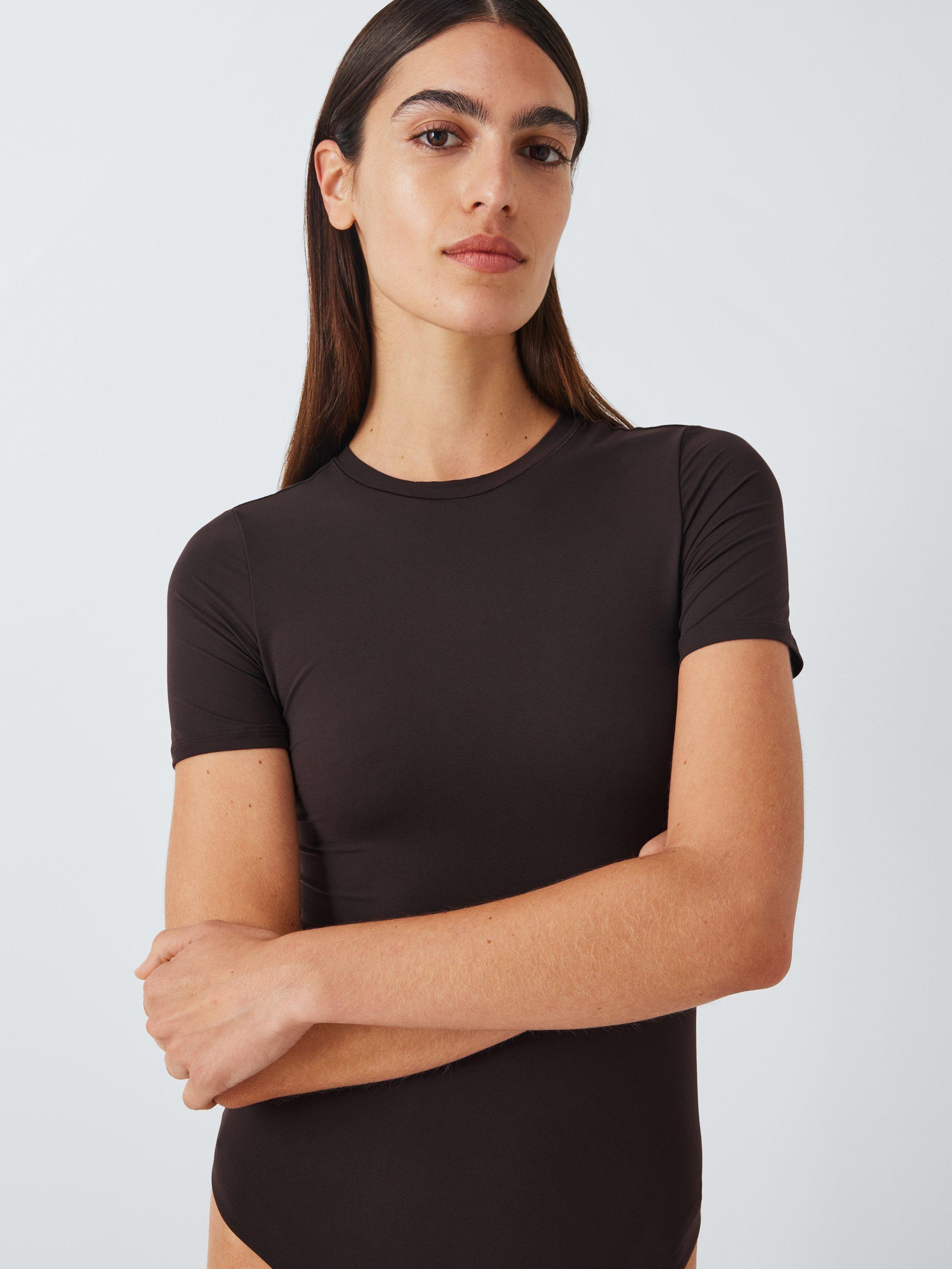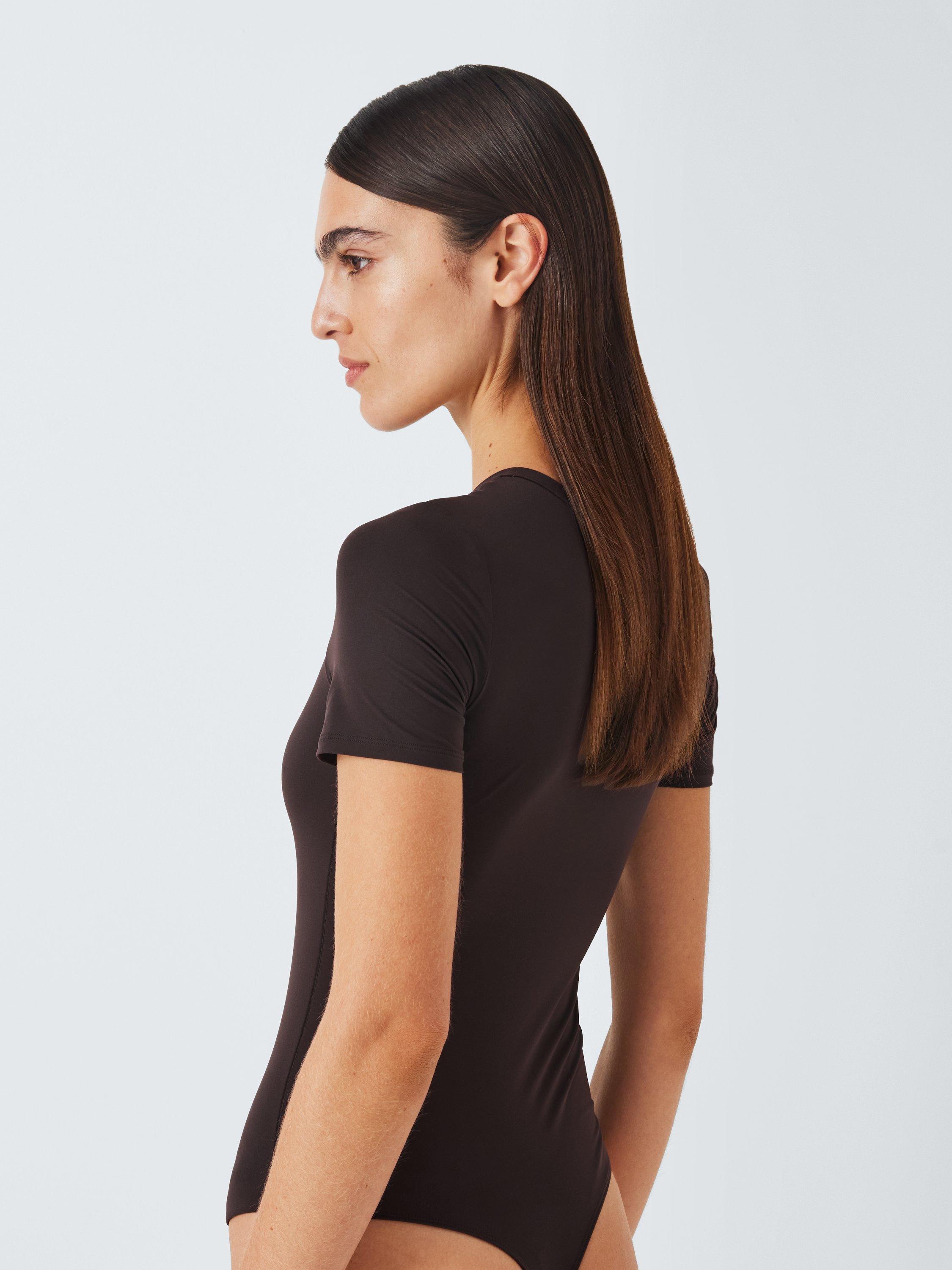 Our short sleeve bodysuit is designed to be smooth and slim for a flattering silhouette. Made from a stretchy, soft-touch fabric for comfortable wear. It is completed with a thong back that allows more versatility in the choice of bottoms.