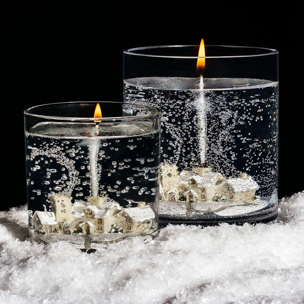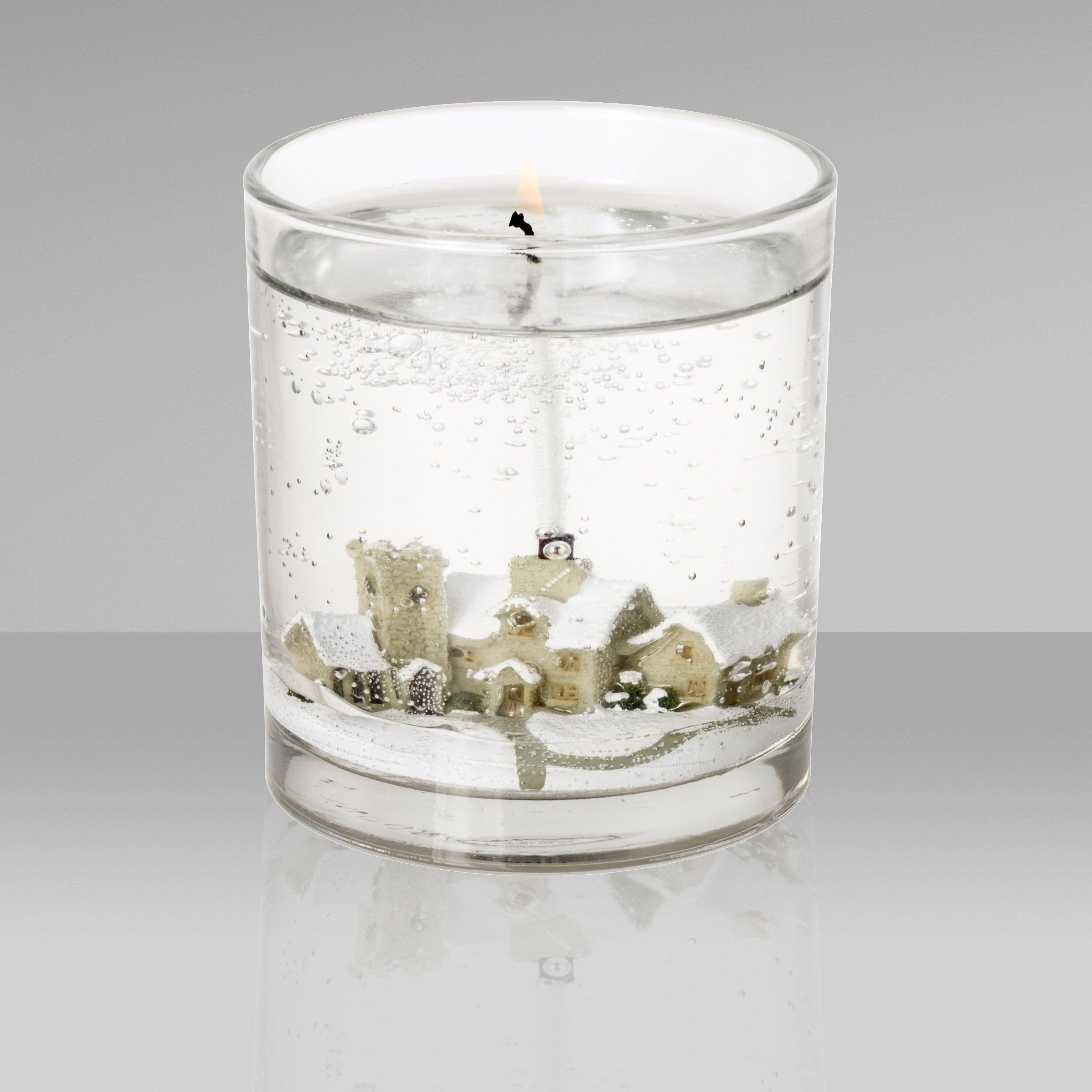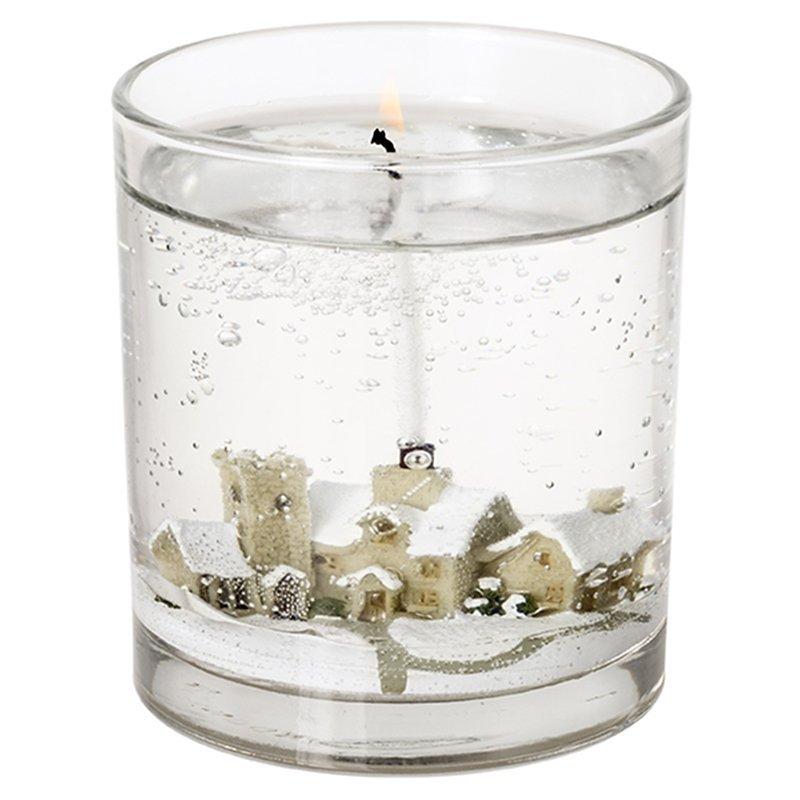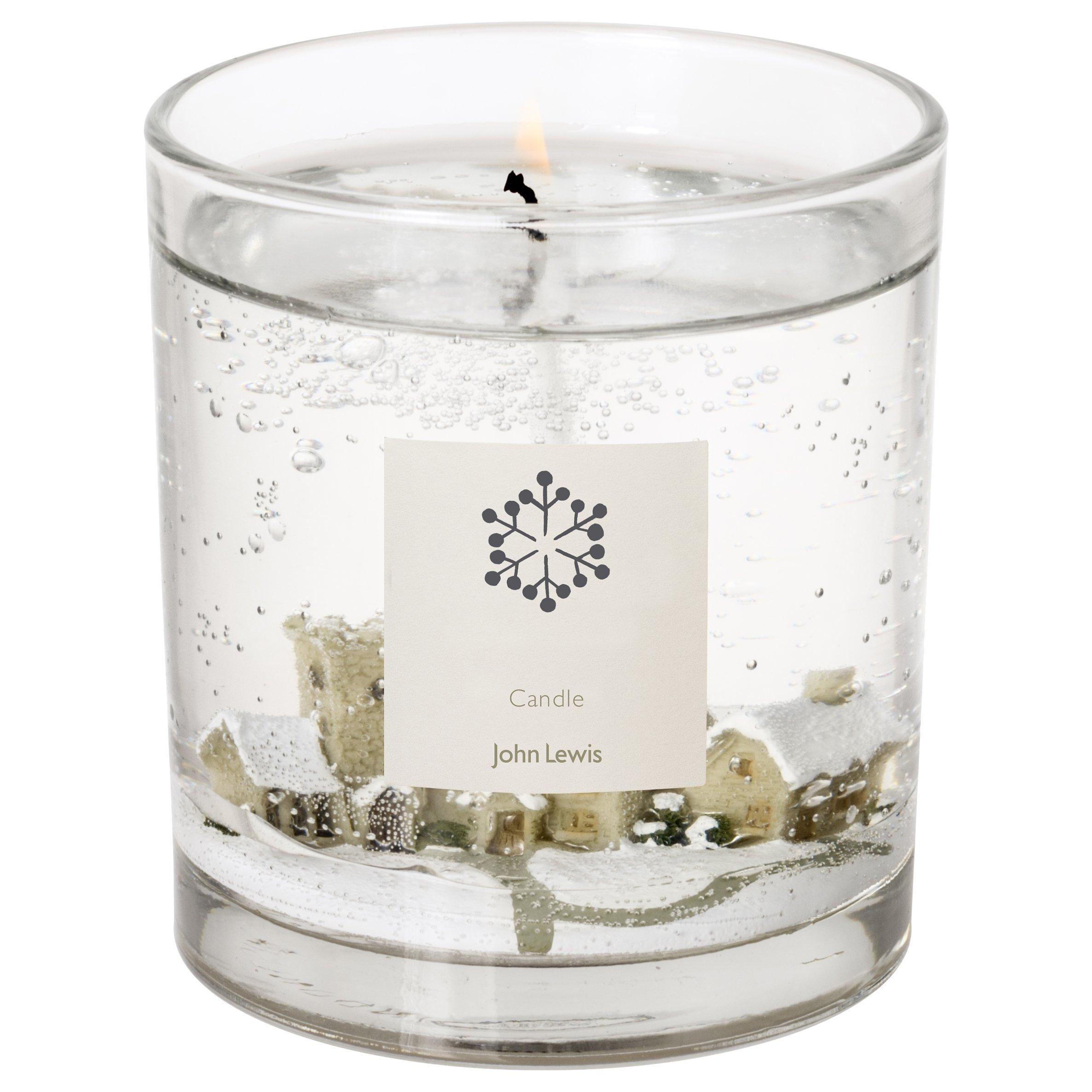 From John Lewis, an unscented gel candle depicting a quaint village scene as the snow gently falls.
