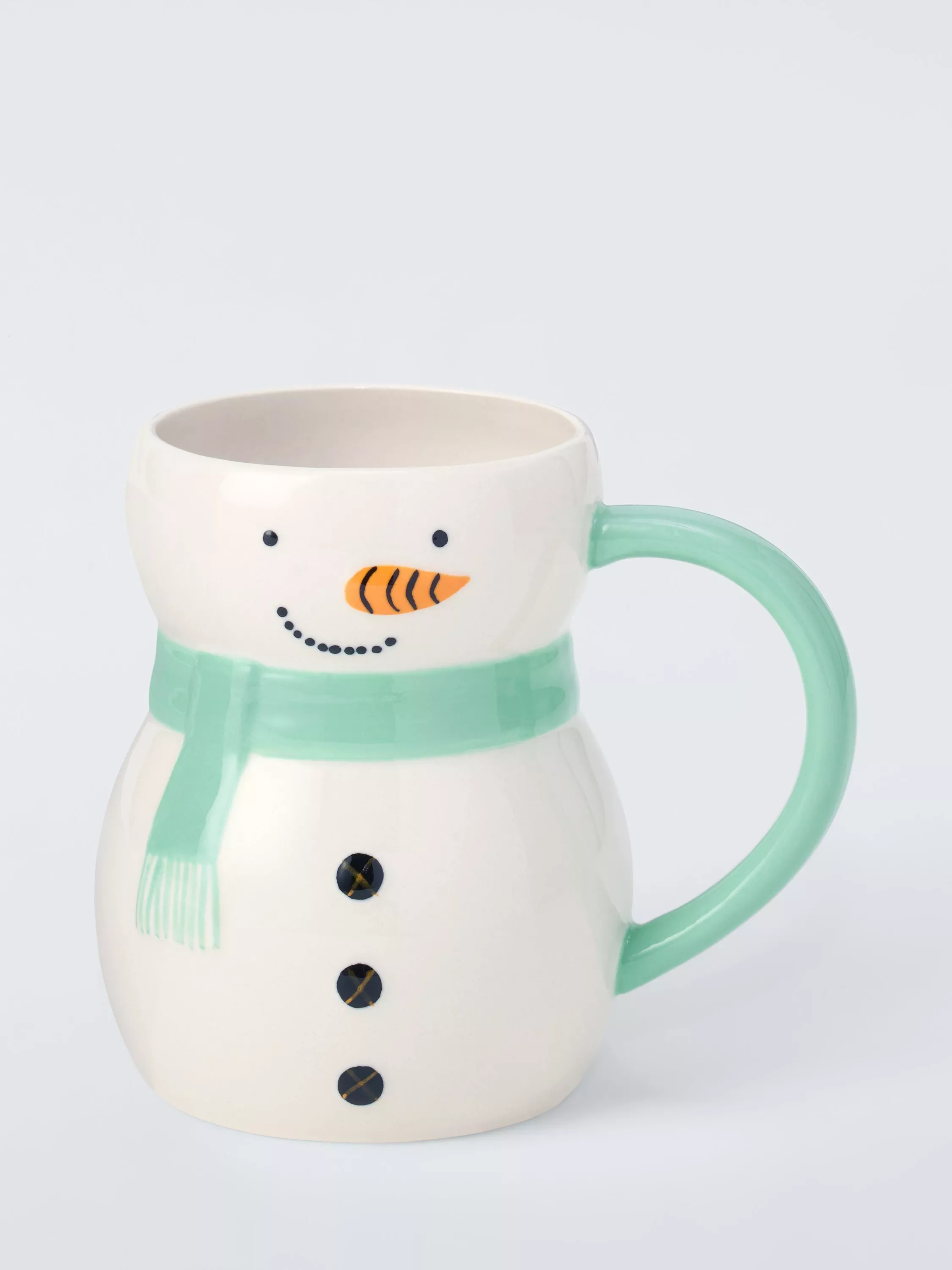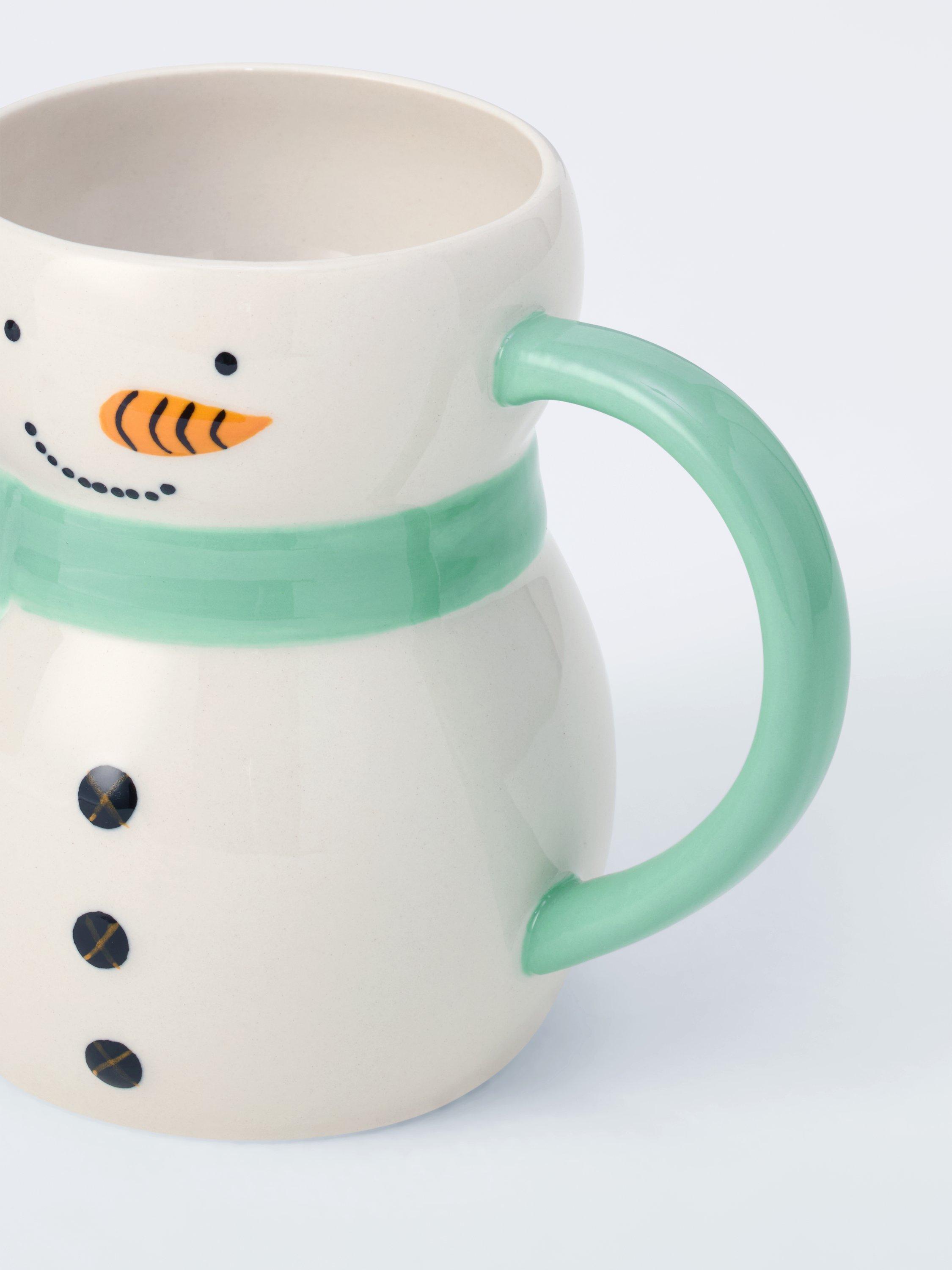 Giftable snowman mug detailed with a carrot nose and winter scarf. Made from stoneware, it's dishwasher safe and microwave safe.