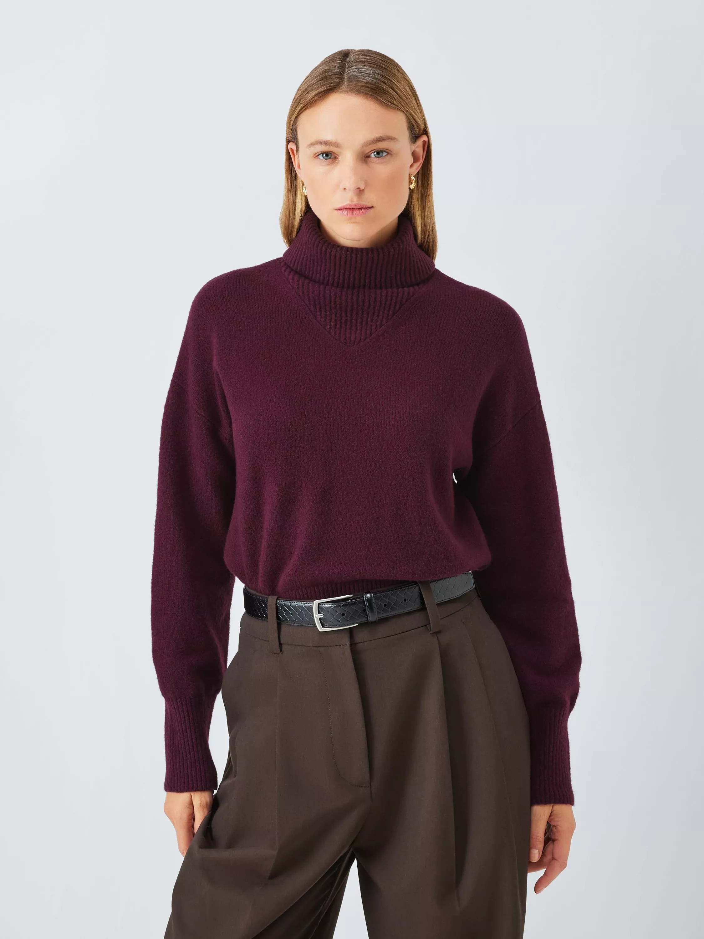 A cosy turtle neck jumper in a fine knit made with a cotton blend that includes naturally temperature-regulating wool with nylon, which adds softness to the yarn. Styled with a contrasting ribbed knit for stretch and recovery on the neckline, cuffs and hem.