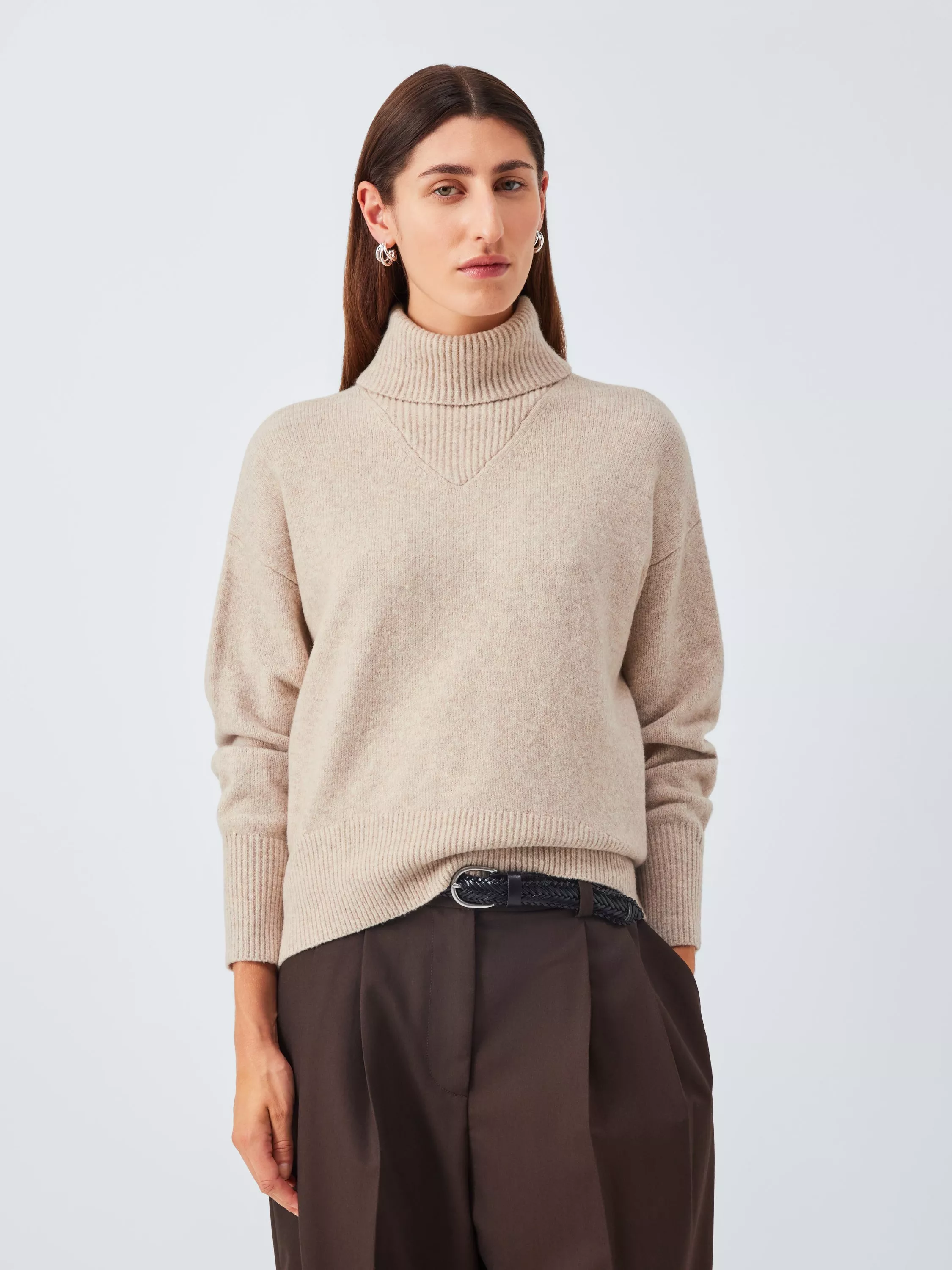 A cosy turtle neck jumper in a fine knit made with a cotton blend that includes naturally temperature-regulating wool with nylon, which adds softness to the yarn. Styled with a contrasting ribbed knit for stretch and recovery on the neckline, cuffs and hem.