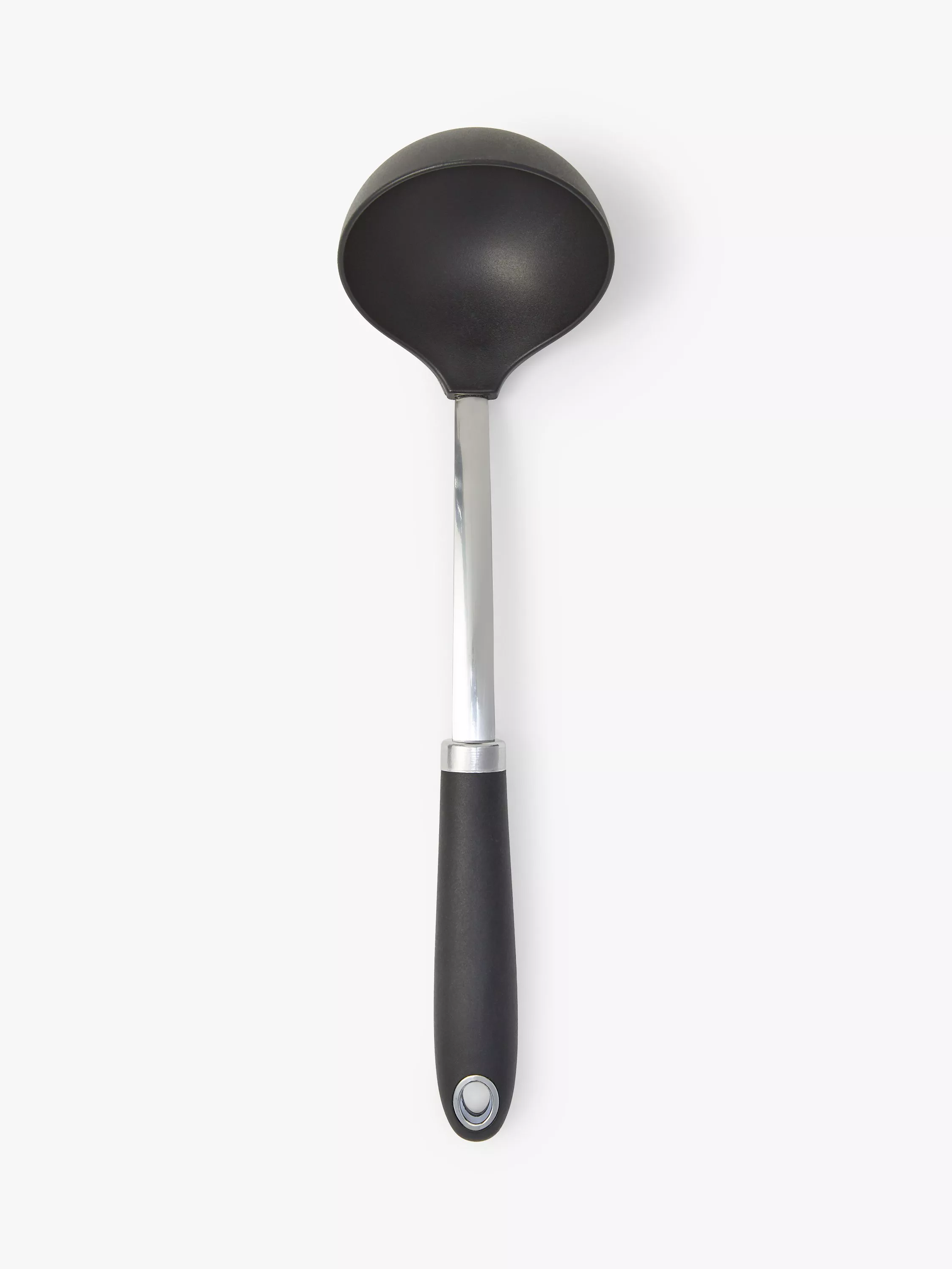 Ladle with a heat-resistant nylon head, making it suitable for use with all cookware surfaces, including non-stick.