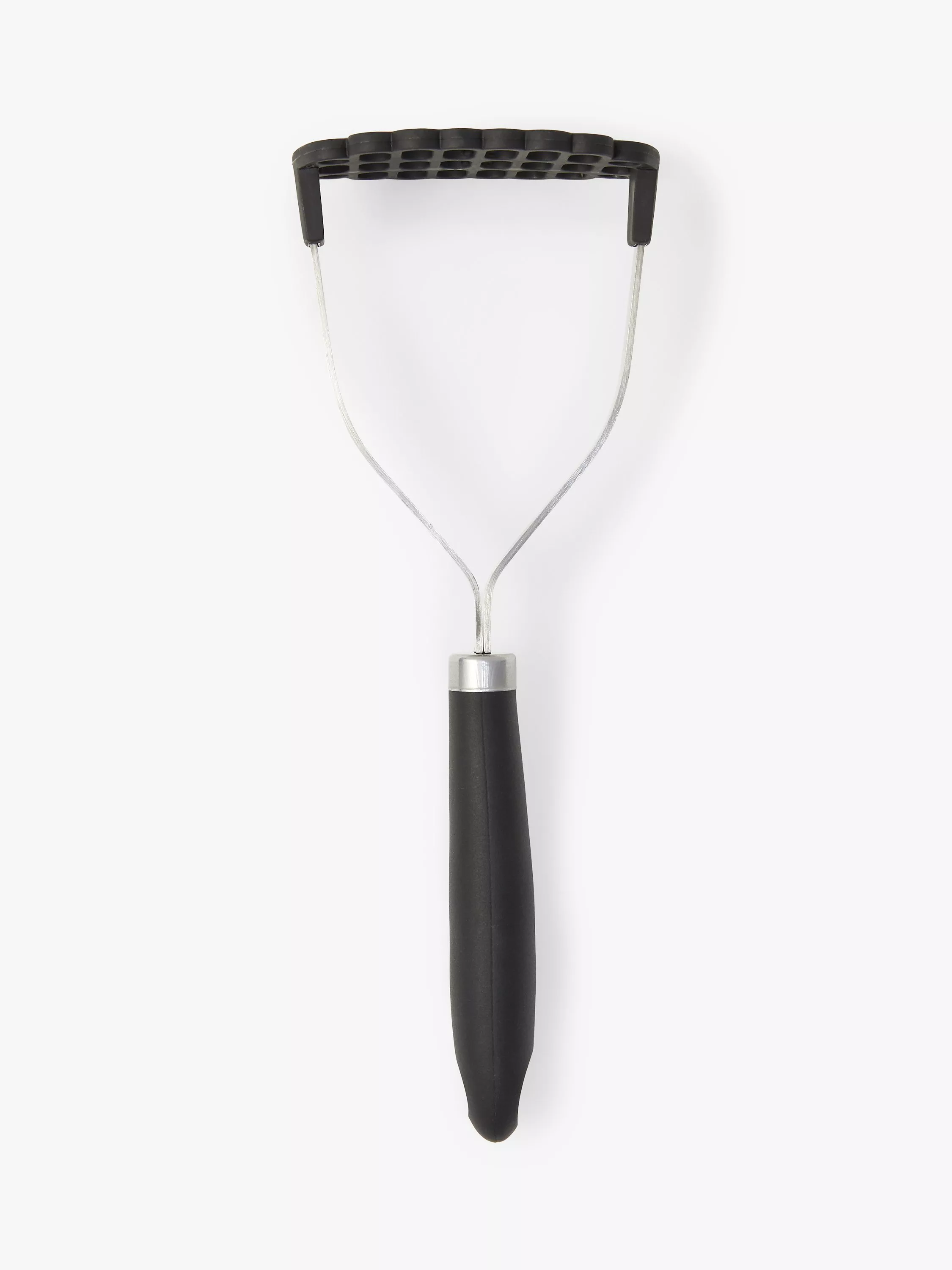 Potato masher with a heat-resistant nylon head, making it suitable for use with all cookware surfaces, including non-stick.