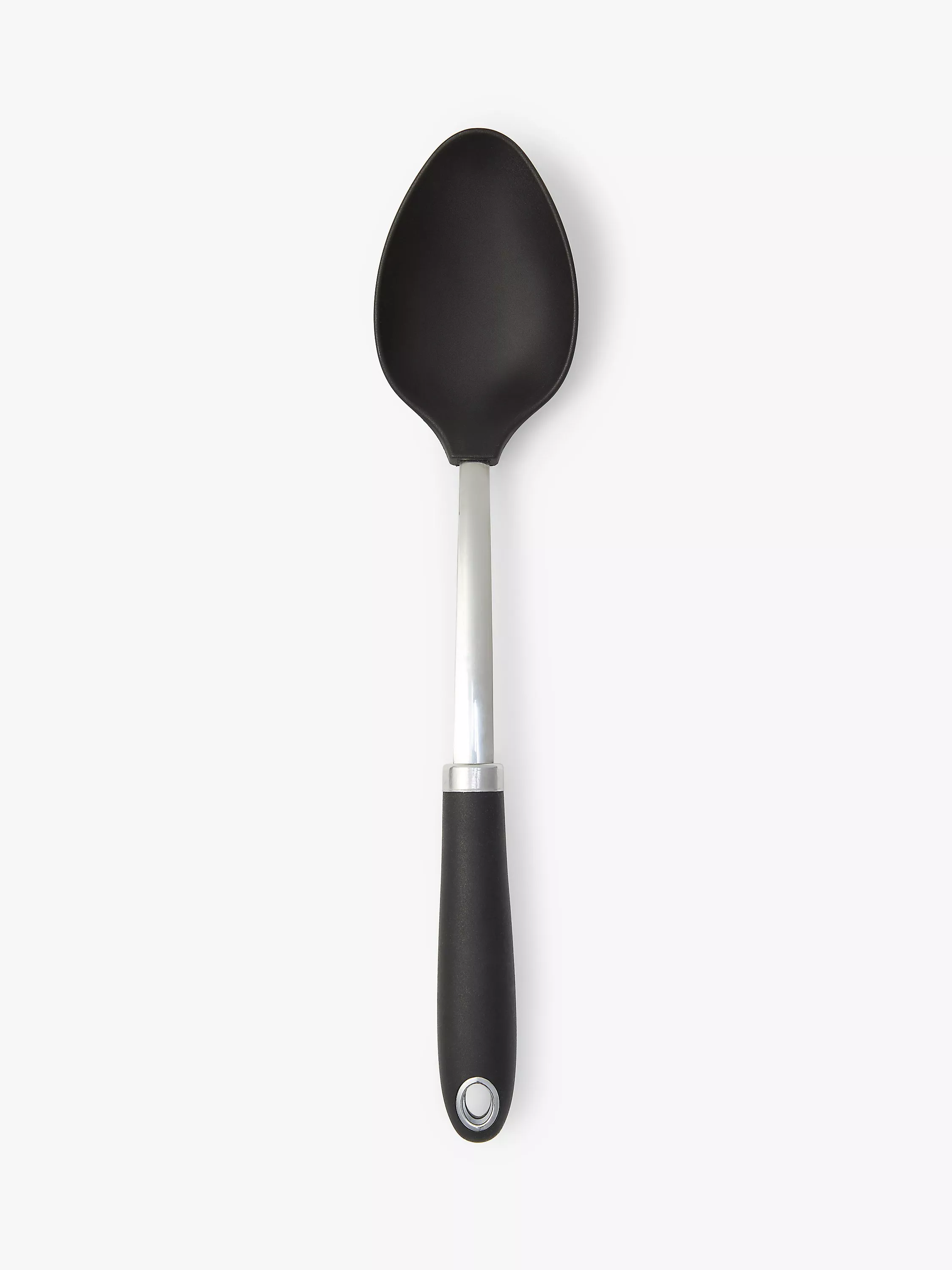 Solid spoon with a heat-resistant nylon head, making it suitable for use with all cookware surfaces, including non-stick.