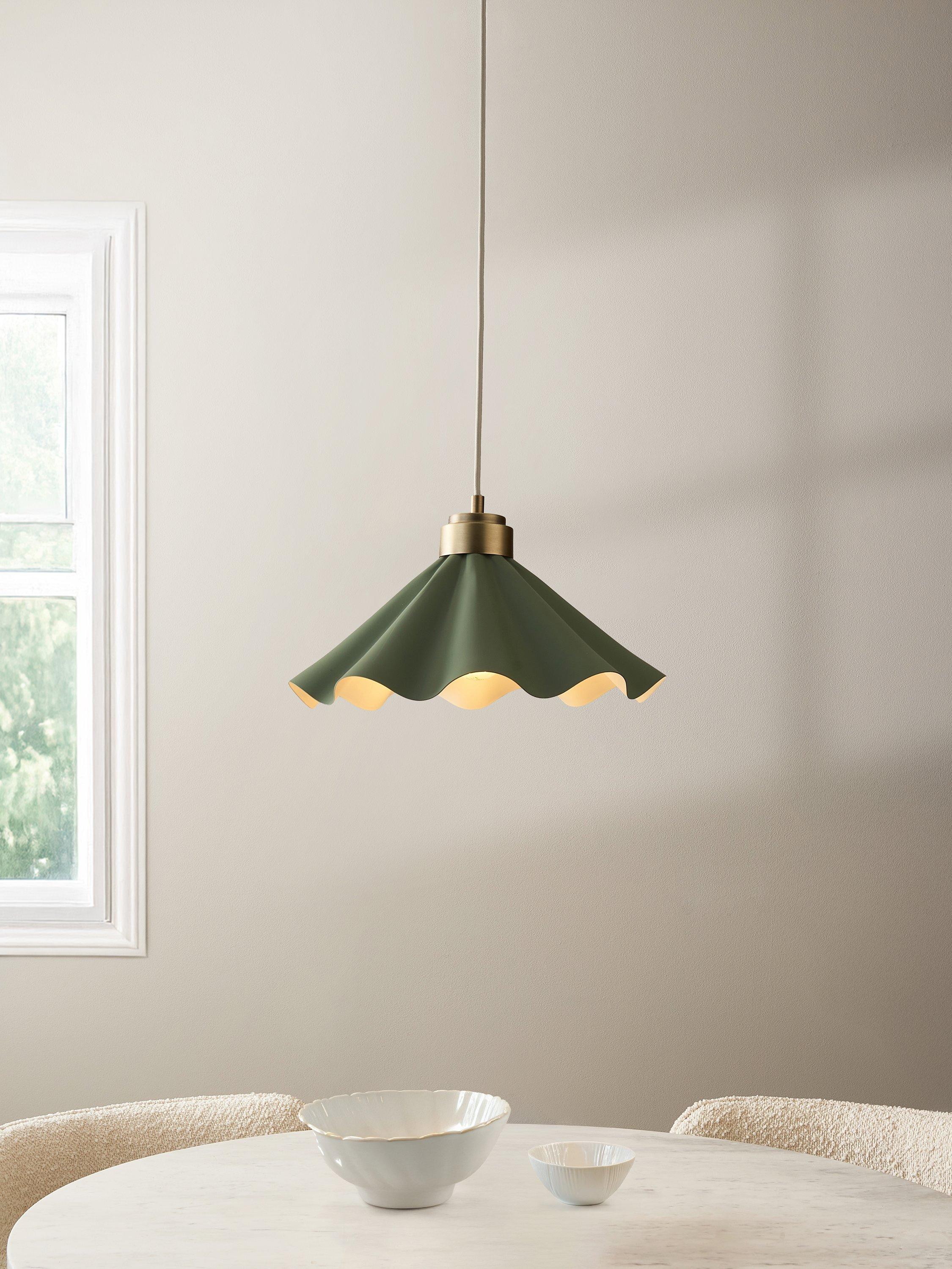 Add a modern accent with this structured scalloped design. This pendant light brings a touch of sophistication to any space with its elegant curves. Great for kitchen islands, breakfast bars and hallways. Complemented by metallic fittings and a matt finish on the shade. Comes with a matching cable that's height-adjustable to suit your space.