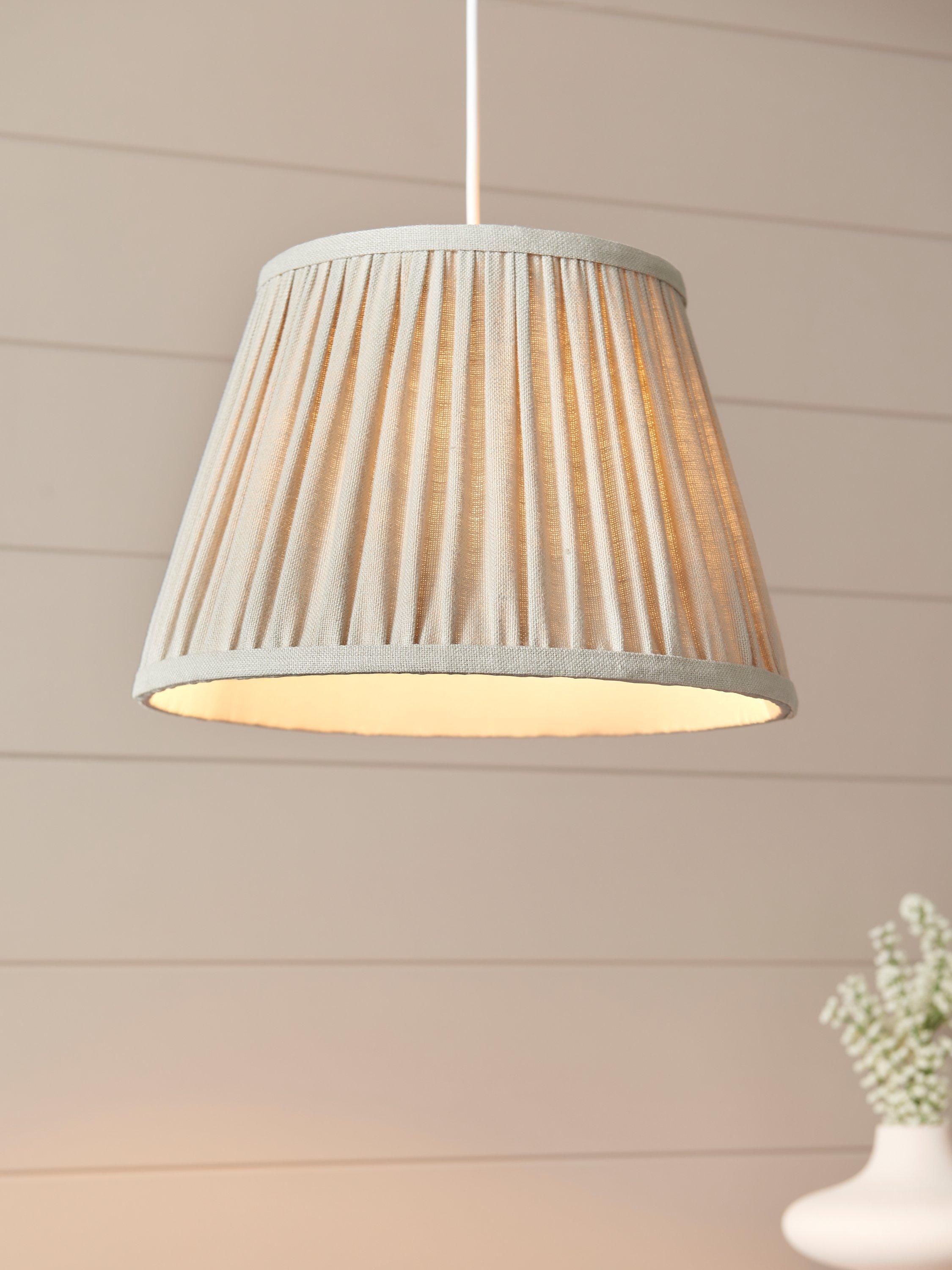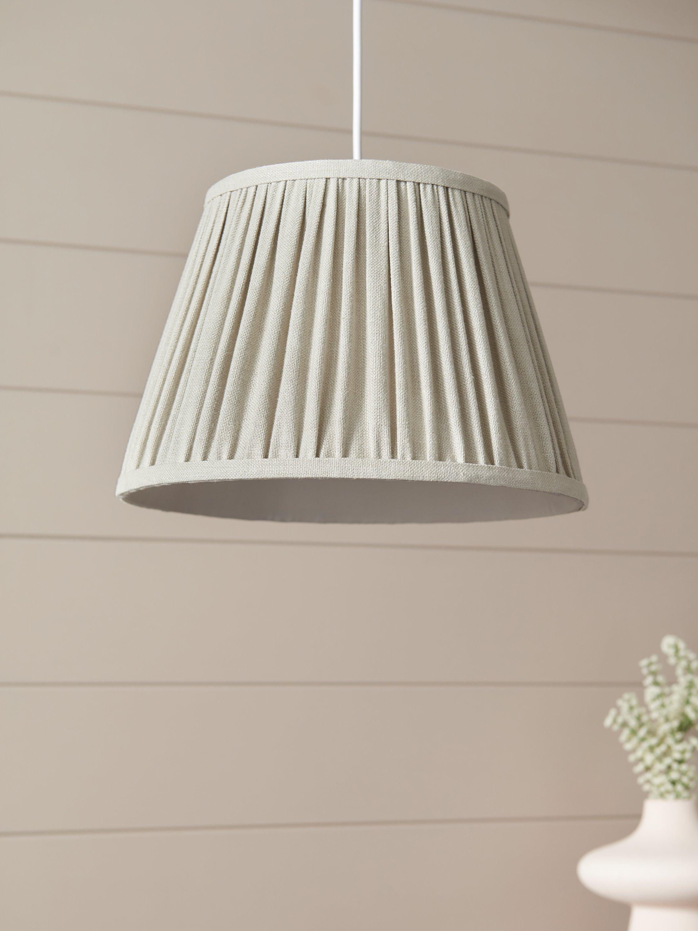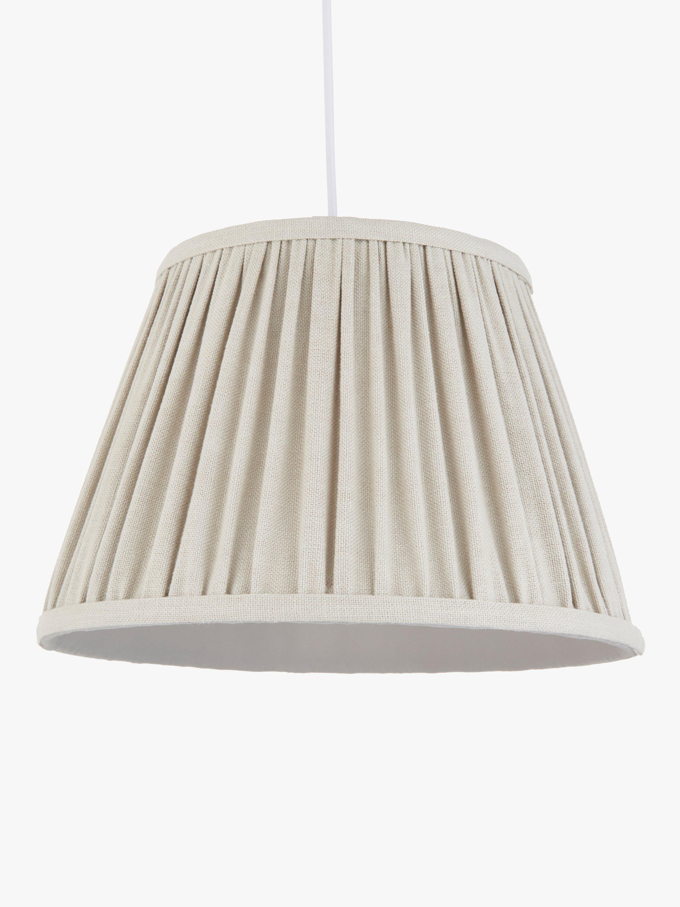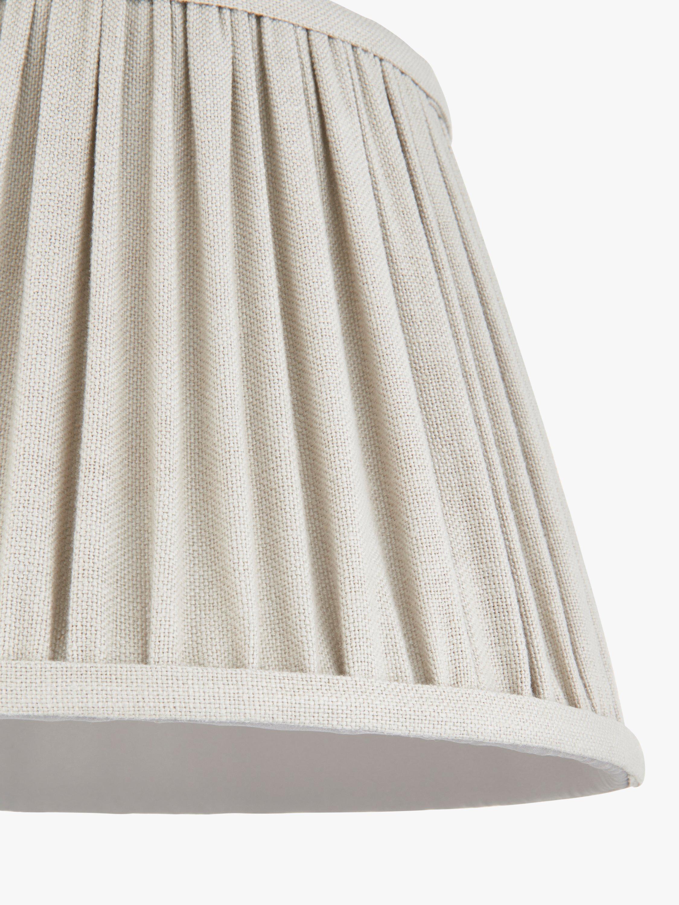 Made from pure linen in a timeless tapered shape, this lampshade showcases neatly gathered pleats and is suitable for both ceiling fittings and lamp bases. It gives off a warm glow of light bringing a natural feel to your space.