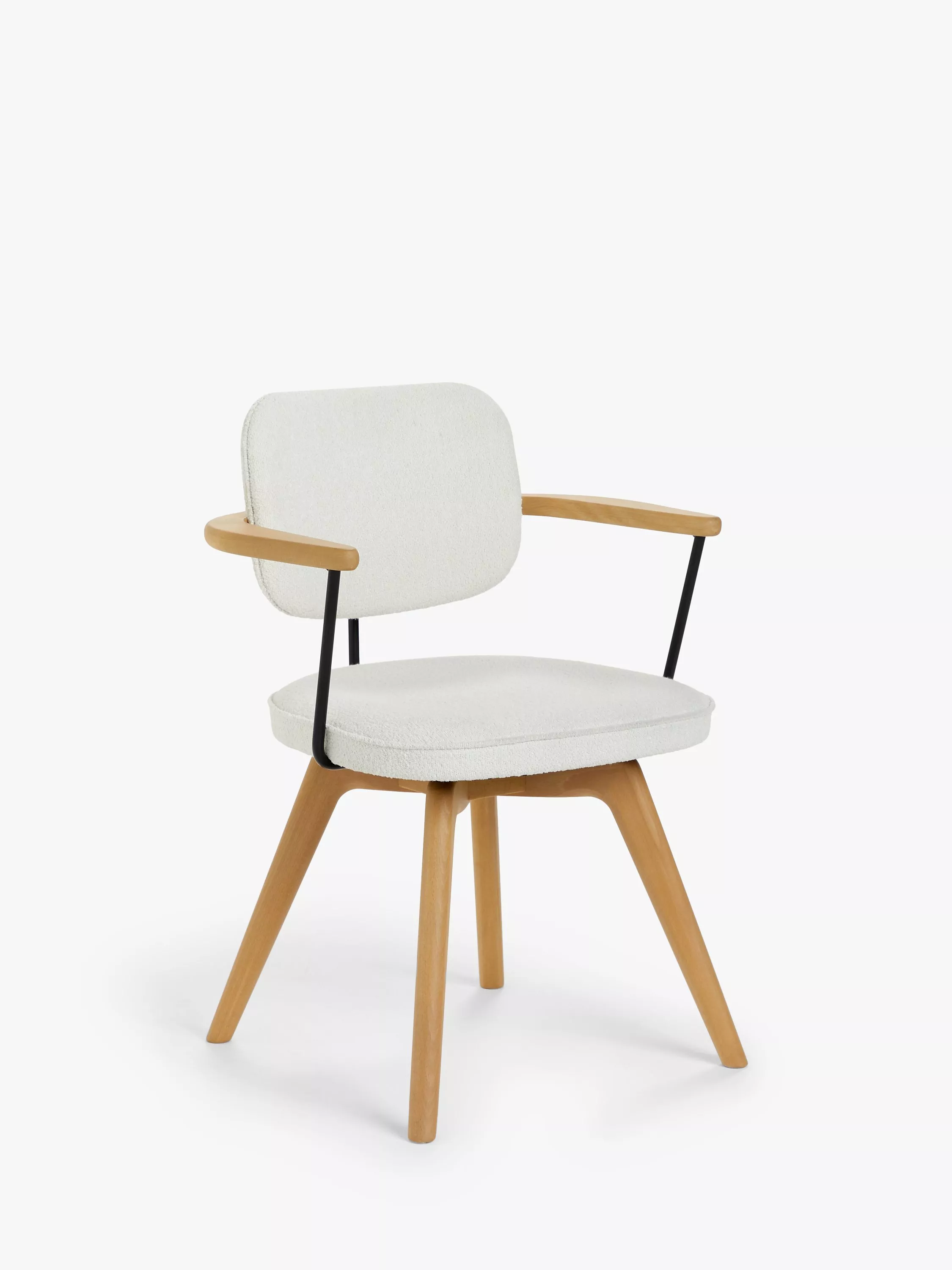 Suitable for short periods at your desk, our Soren chair has a smart, Scandi-inspired shape and we've made the frame from a combination of high-quality timbers. The splayed legs look distinctive and provide stability, while the fixed, integrated armrests encourage a good posture. Plus, the upholstered seat is foam-filled for extra comfort. Available in a soft, or textured bouclé fabric.