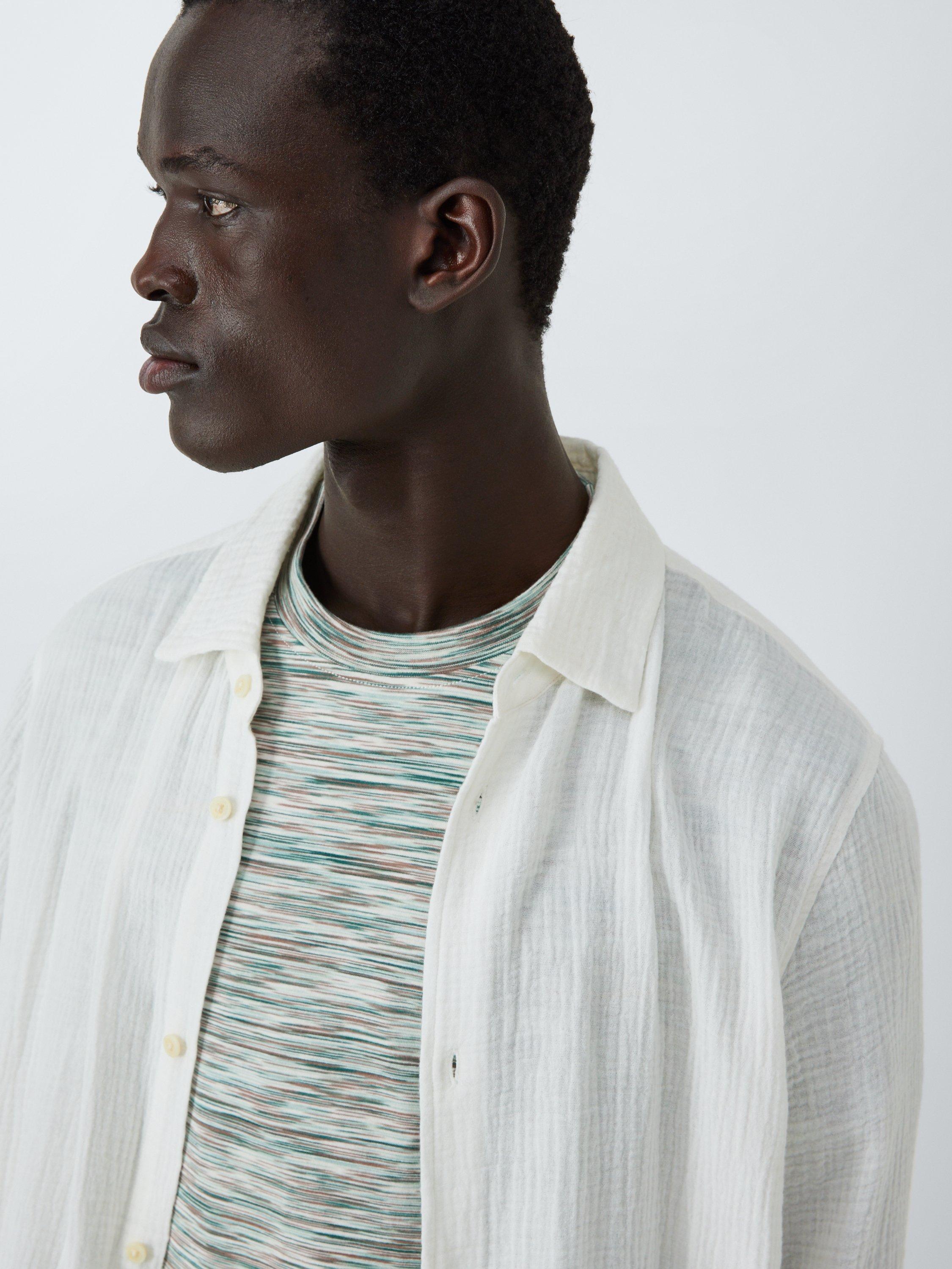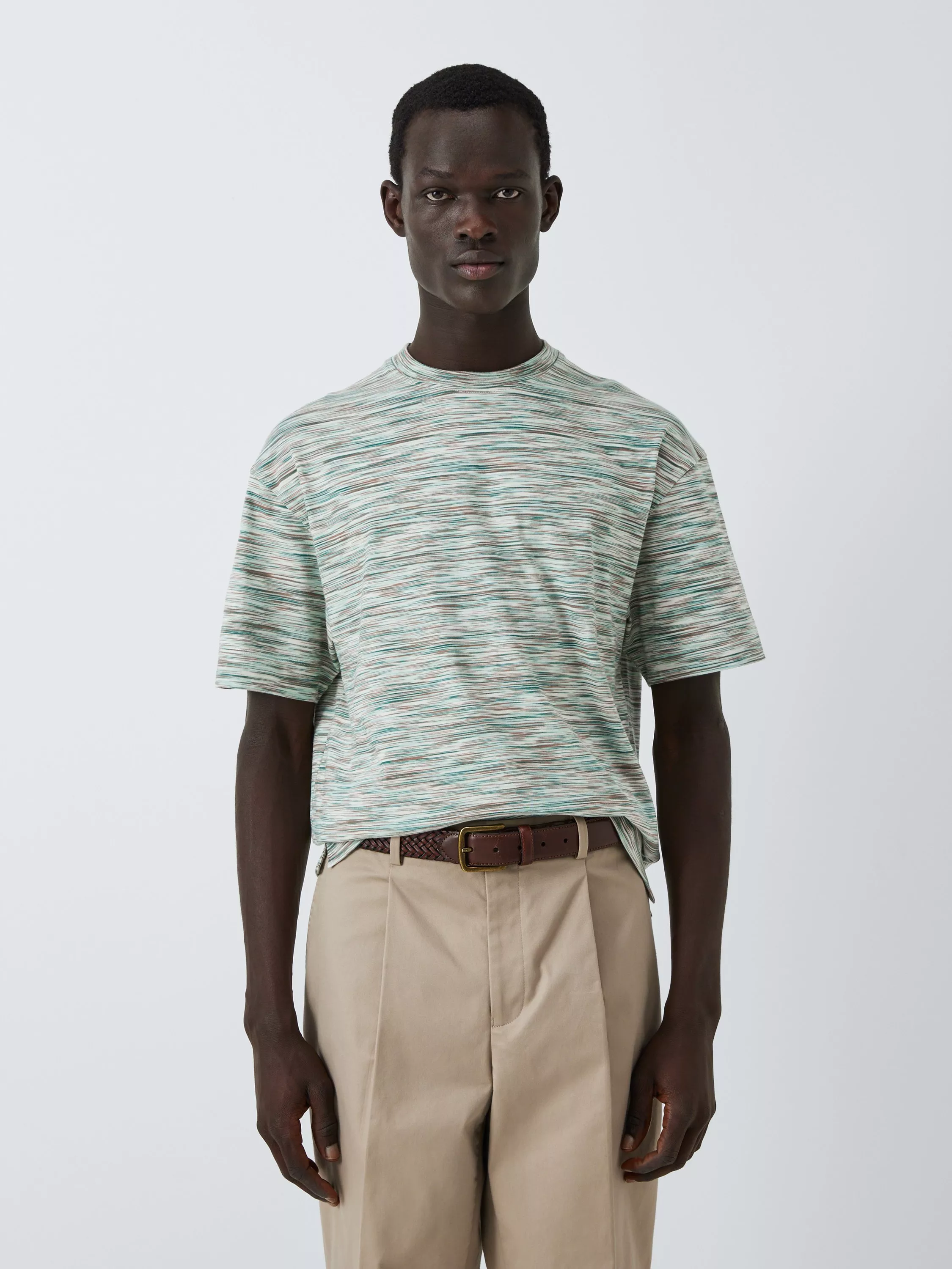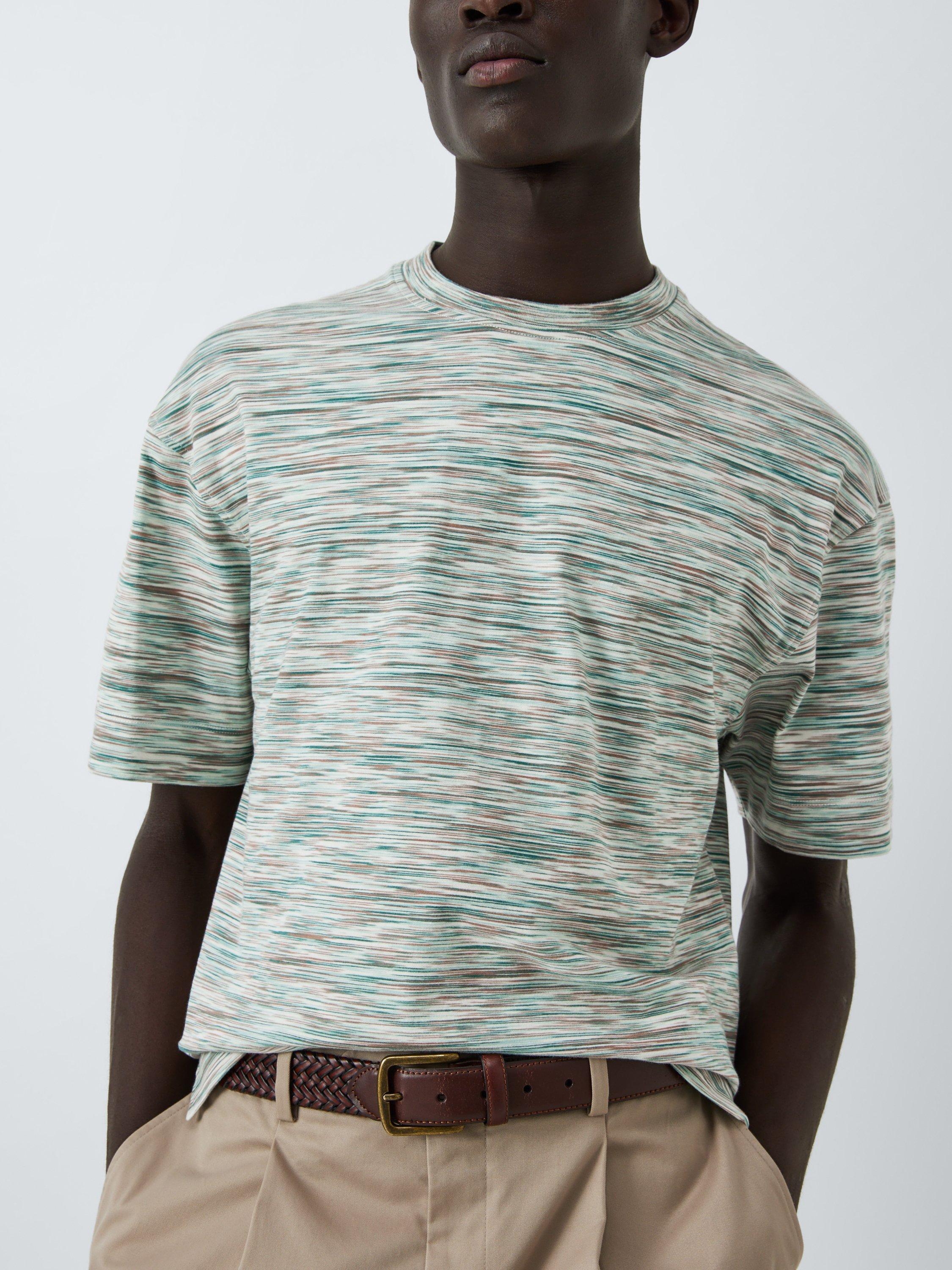 Woven from pure cotton for its super-soft handle and breathable qualities, this T-shirt features an all-over Space Dye print. A classic crew neck and short-sleeved style for your wardrobe.