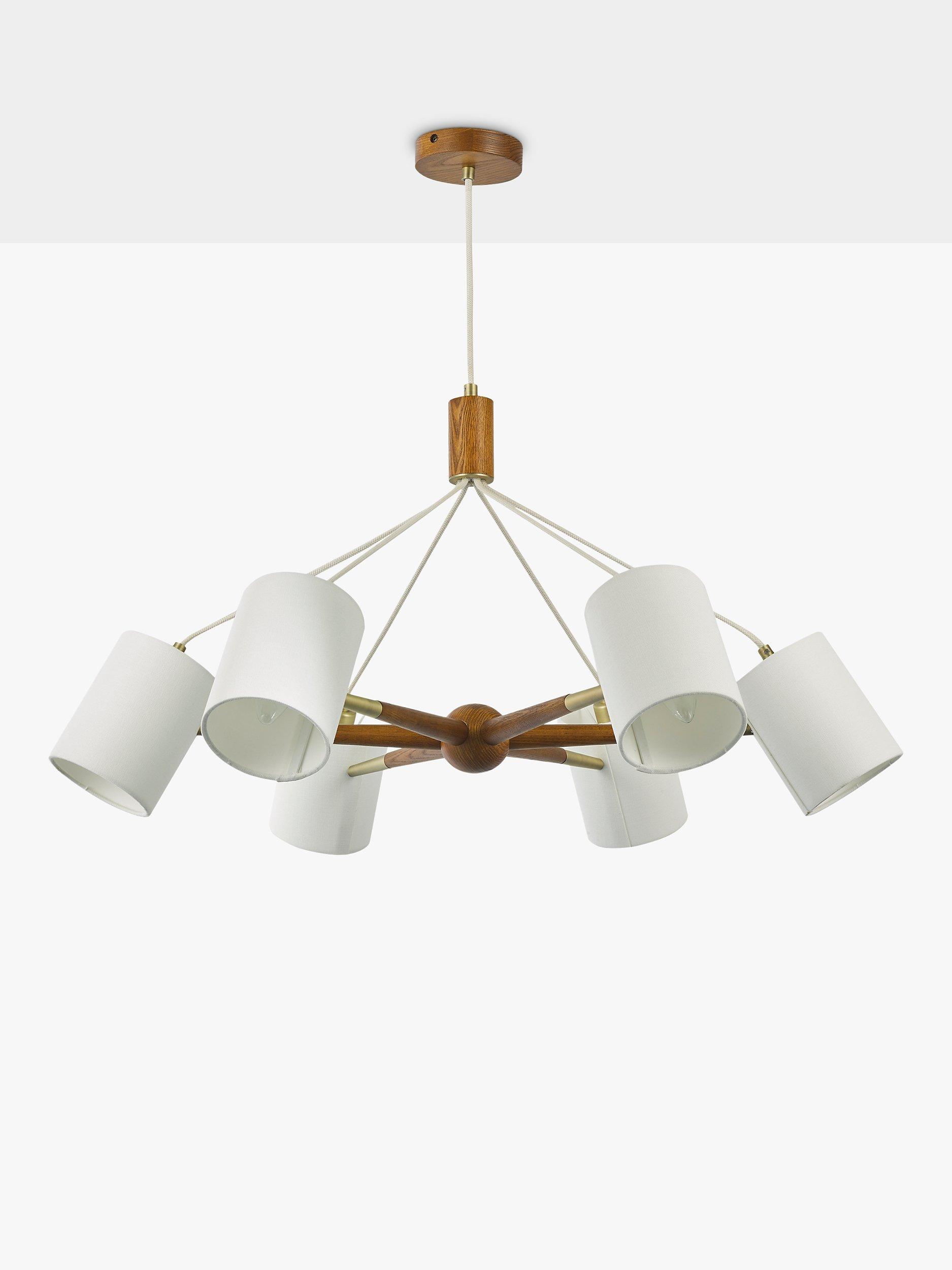 John LewisSpindle 6 Arm Ceiling Light, Walnut/Antique Brass