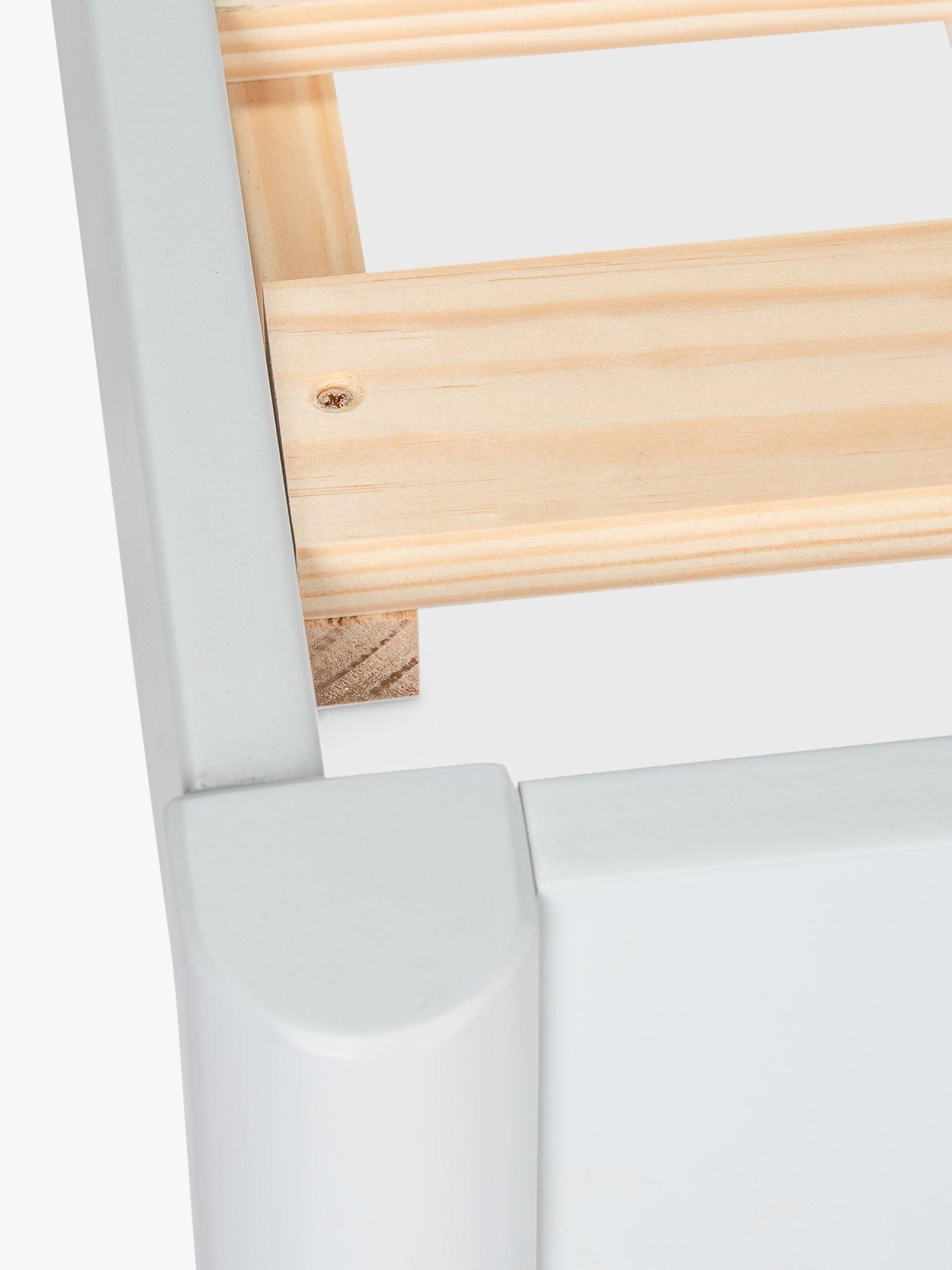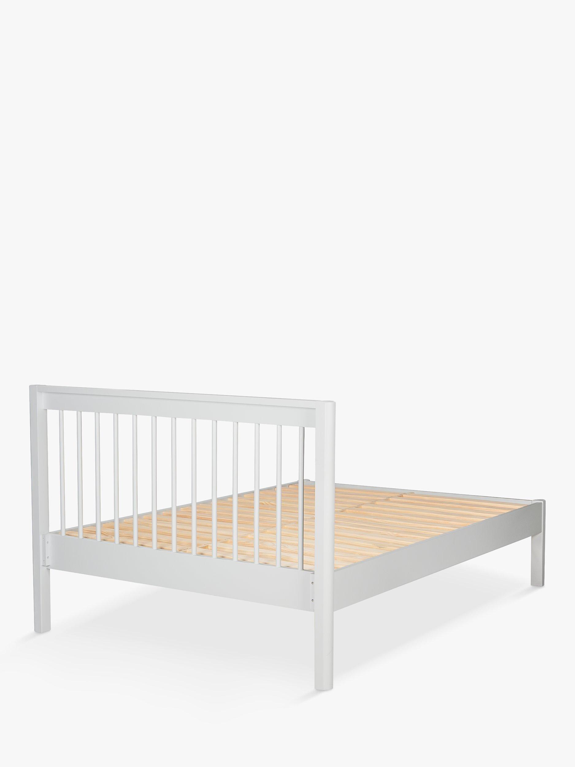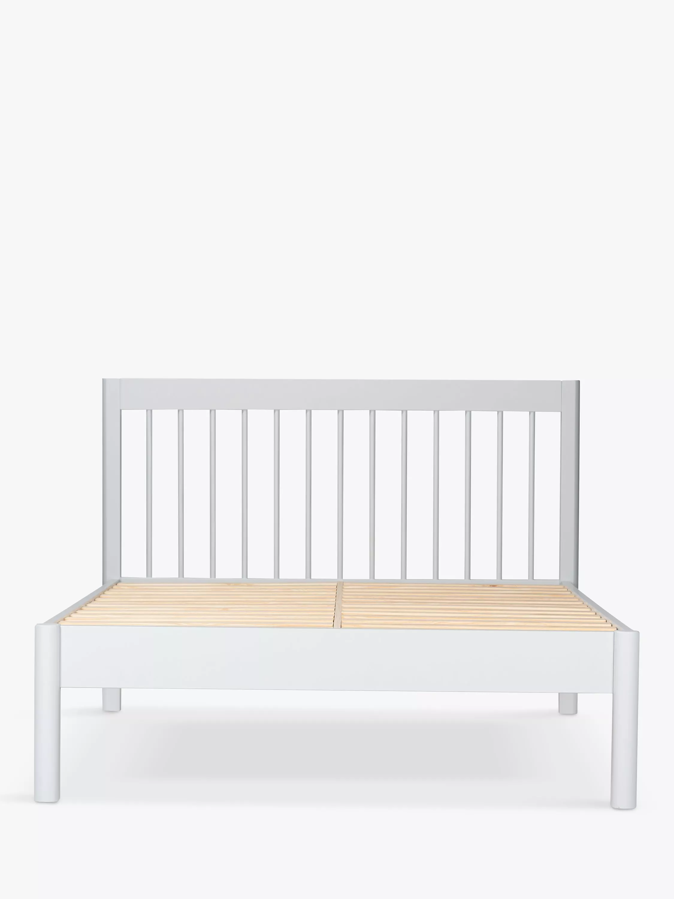 This bed frame has a charming, natural aesthetic thanks to its slatted headboard, rounded edges and shapely frame. There are supportive sprung slats in the base which your mattress will sit on top of, rather than sitting inside the frame. Available in a warm, natural or bold painted finish. Simply layer your bed with linens and cosy throws and create the perfect sleep spot.
