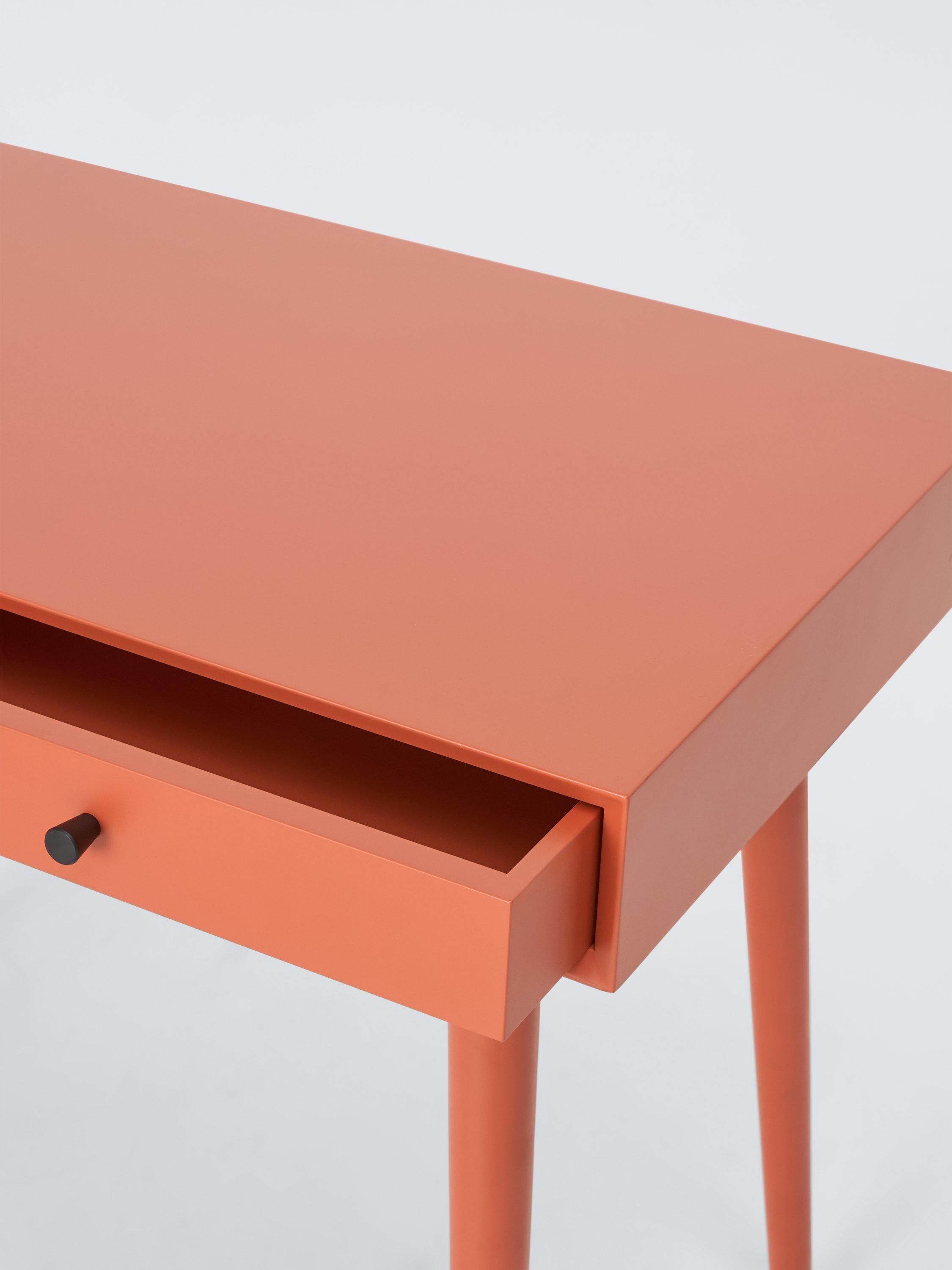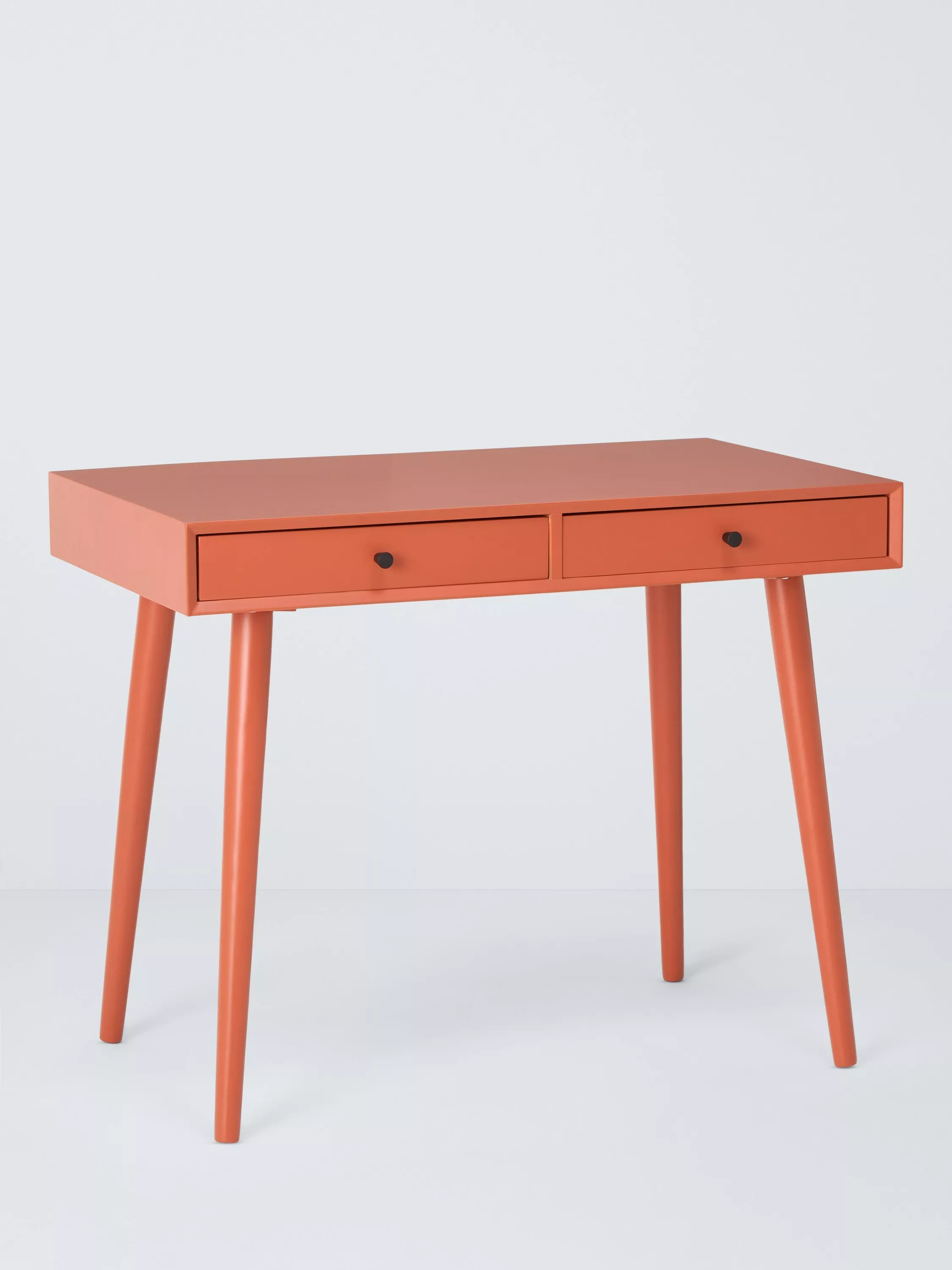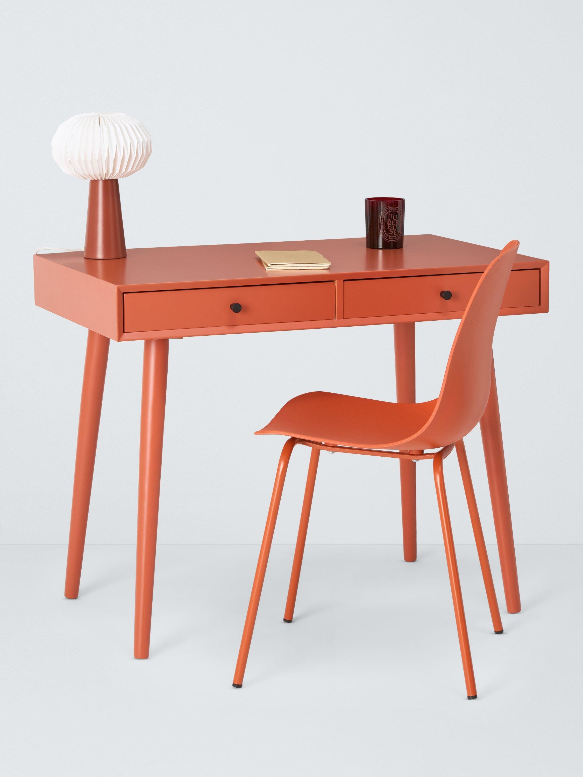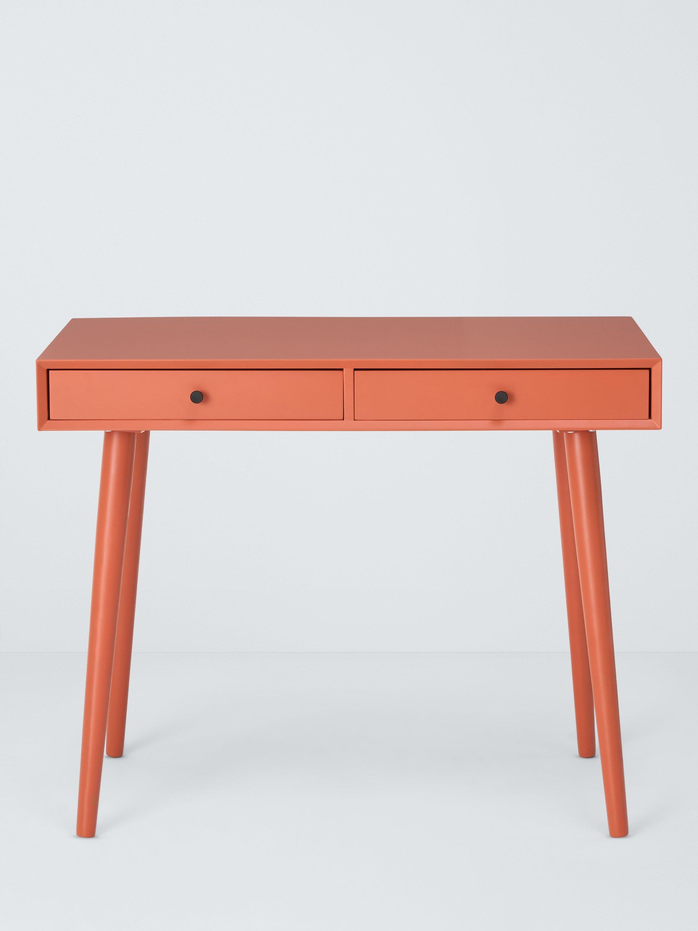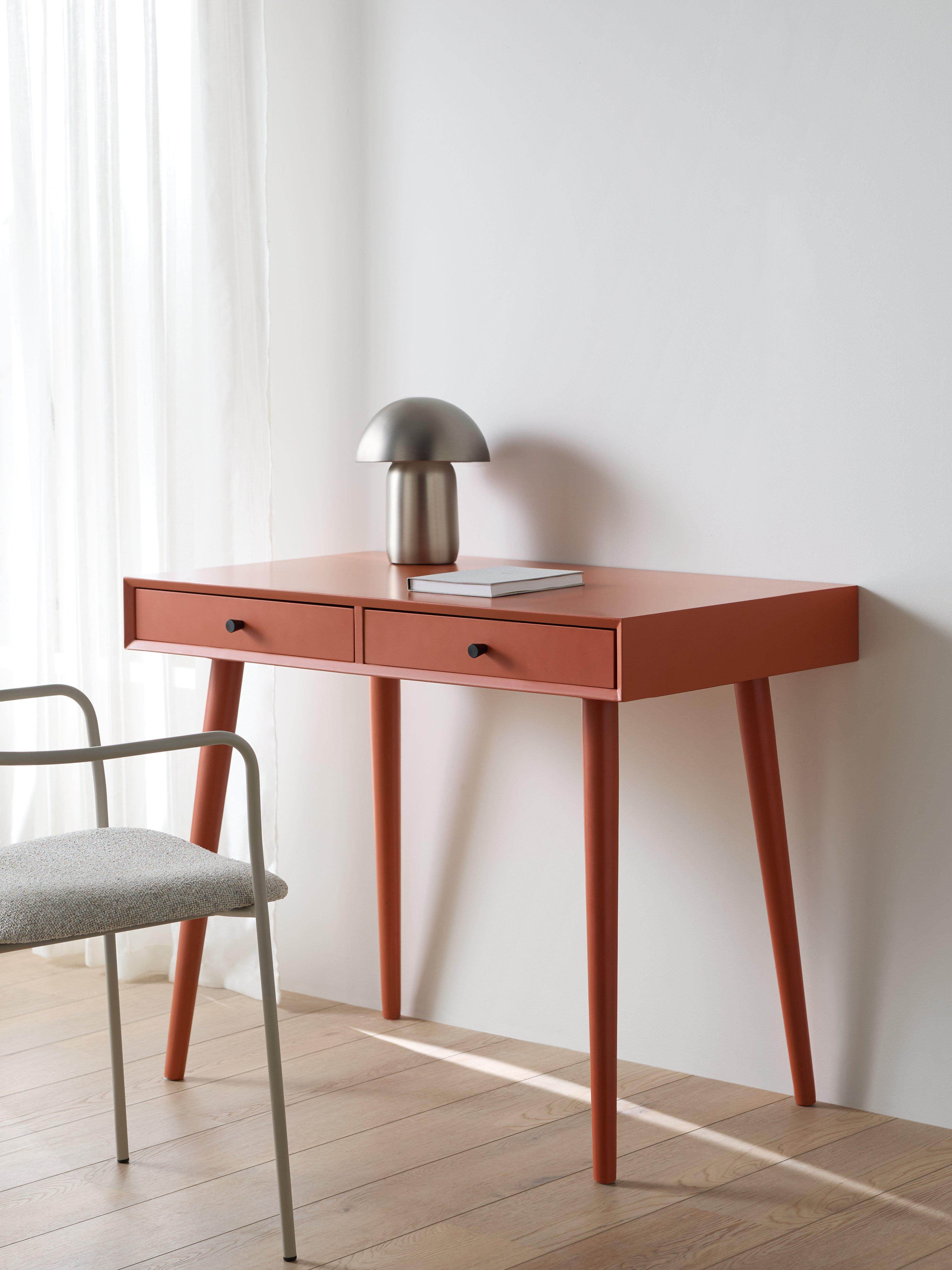 This desk is ideal for injecting colour into smaller rooms. It's a compact size and we've made it from sturdy MDF and bamboo, which is one of the most renewable, durable and readily available raw materials in the world. There are two useful storage drawers and the spindle-shaped legs provide a stable base while adding a softer-design accent. Painted in a bold colour so you can turn your home office into a creative space.
