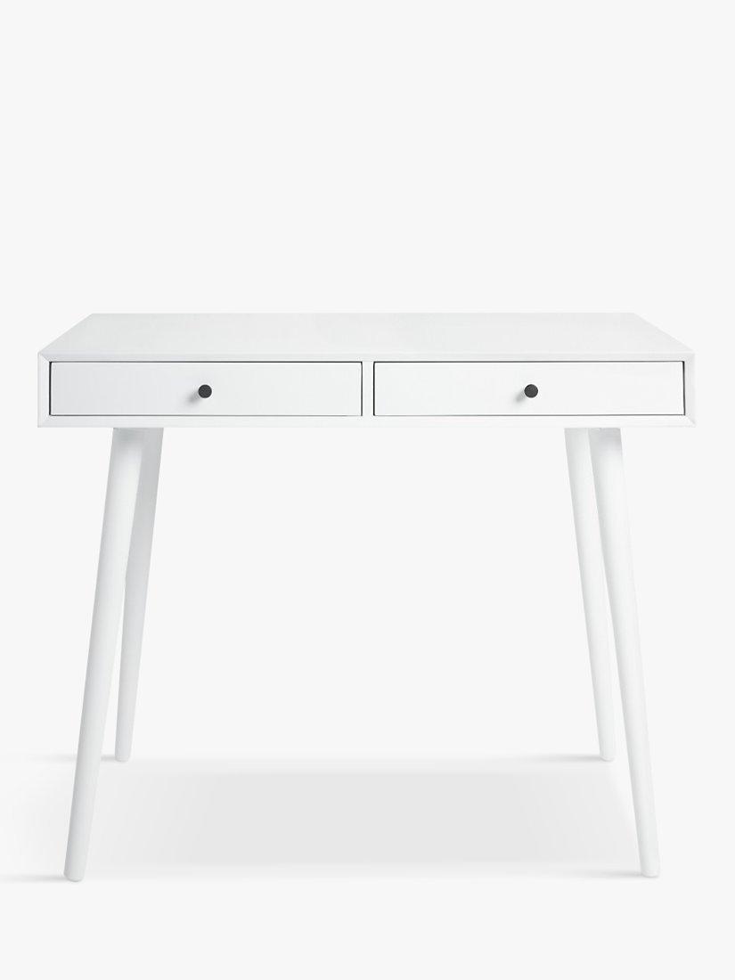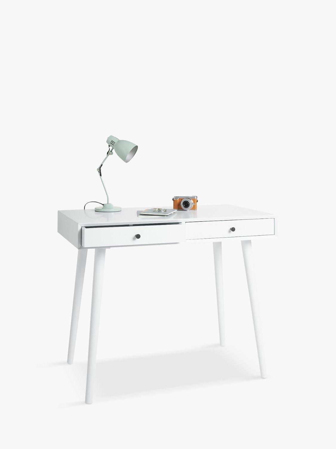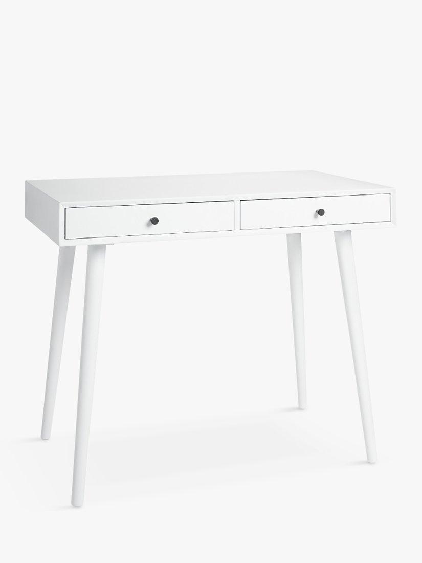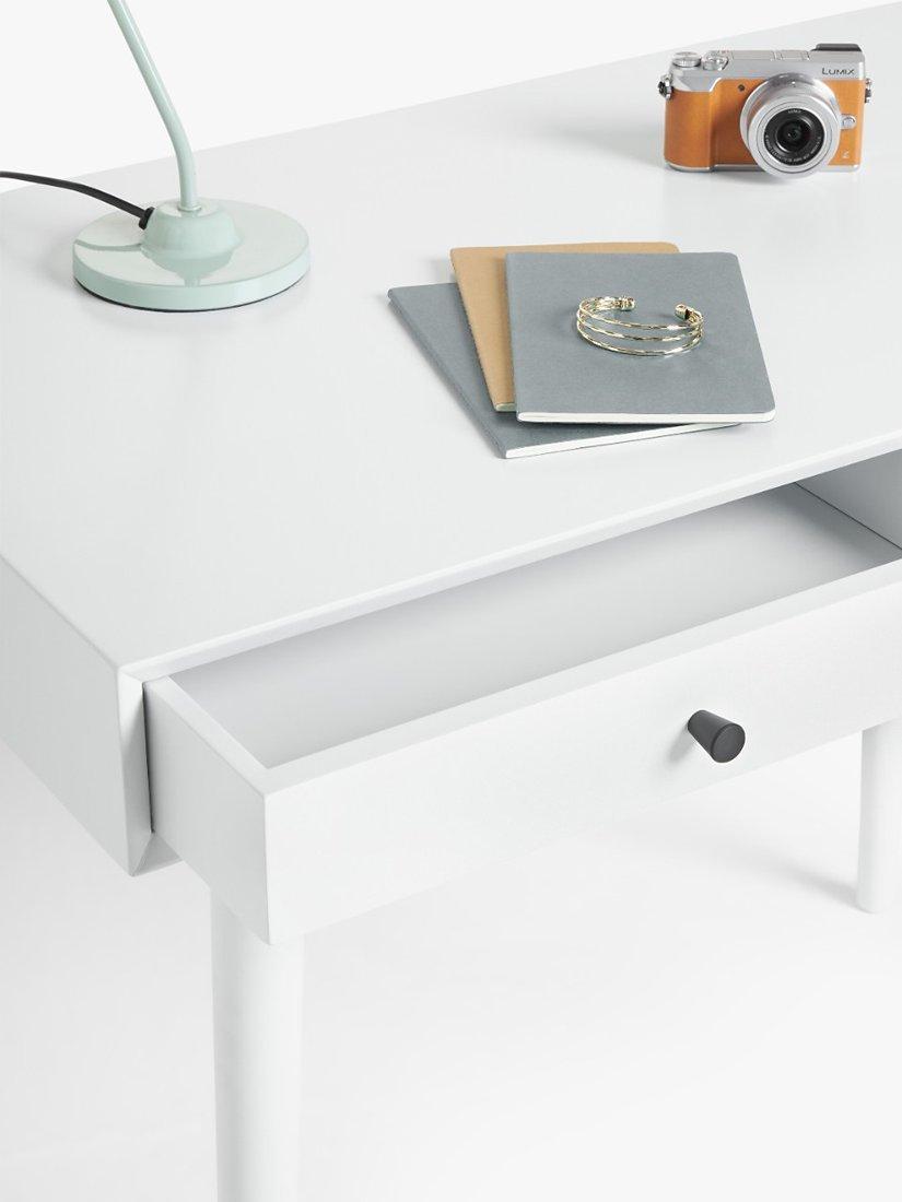 This desk is ideal for injecting colour into smaller rooms. It's a compact size and we've made it from sturdy MDF and bamboo, which is one of the most renewable, durable and readily available raw materials in the world. There are two useful storage drawers and the spindle-shaped legs provide a stable base while adding a softer-design accent. Painted in a bold colour so you can turn your home office into a creative space.