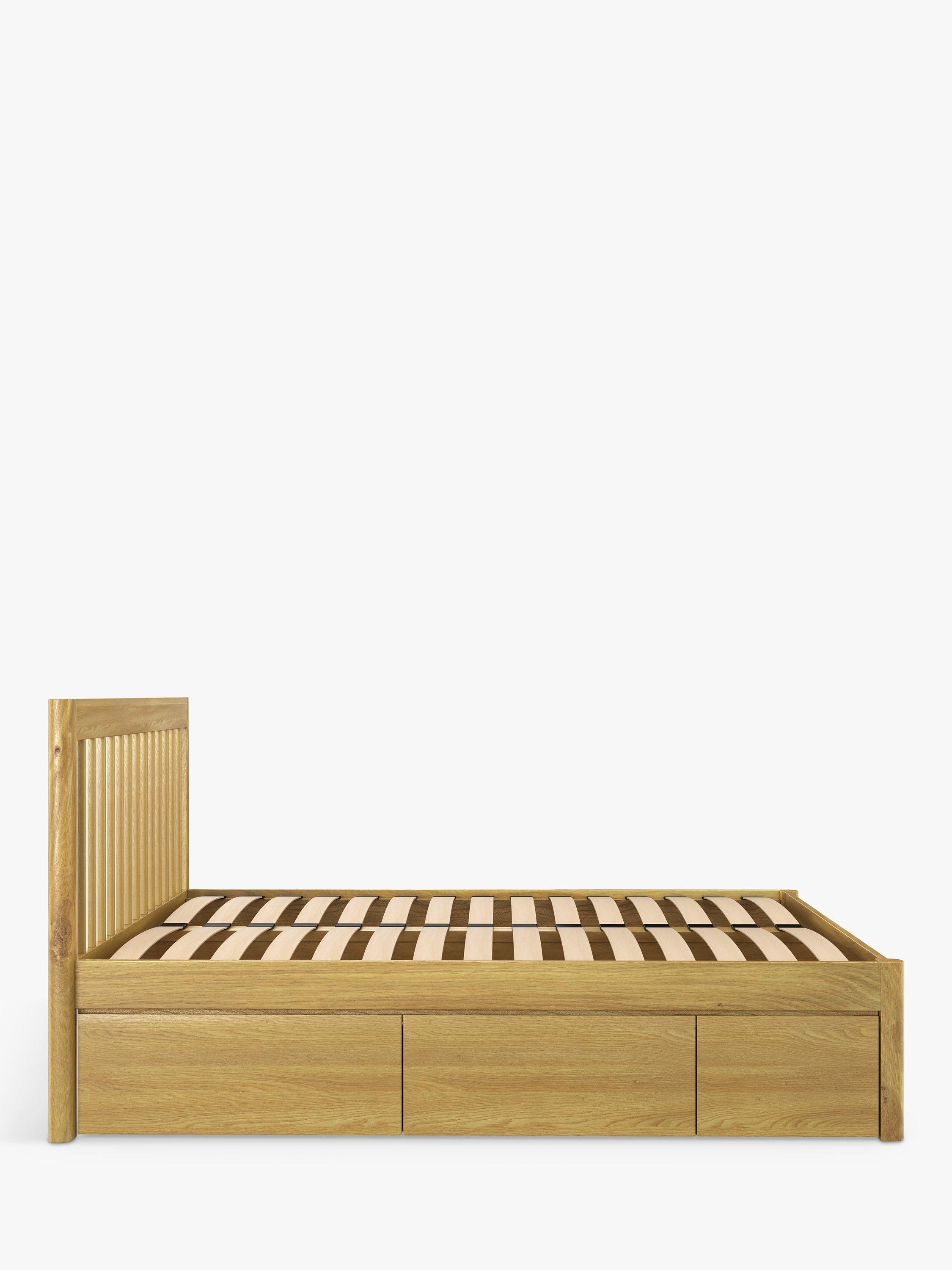 Our in-house designers focused on sturdy woodwork and softer shapes when creating our Spindle range of bedroom furniture. If you're in need of extra storage space in your bedroom, this is the answer. This bed frame is designed with three deep drawers on either side of the frame, so there's no excuse for clutter when your spare bed linens, extra clothes and even shoes have a new home.