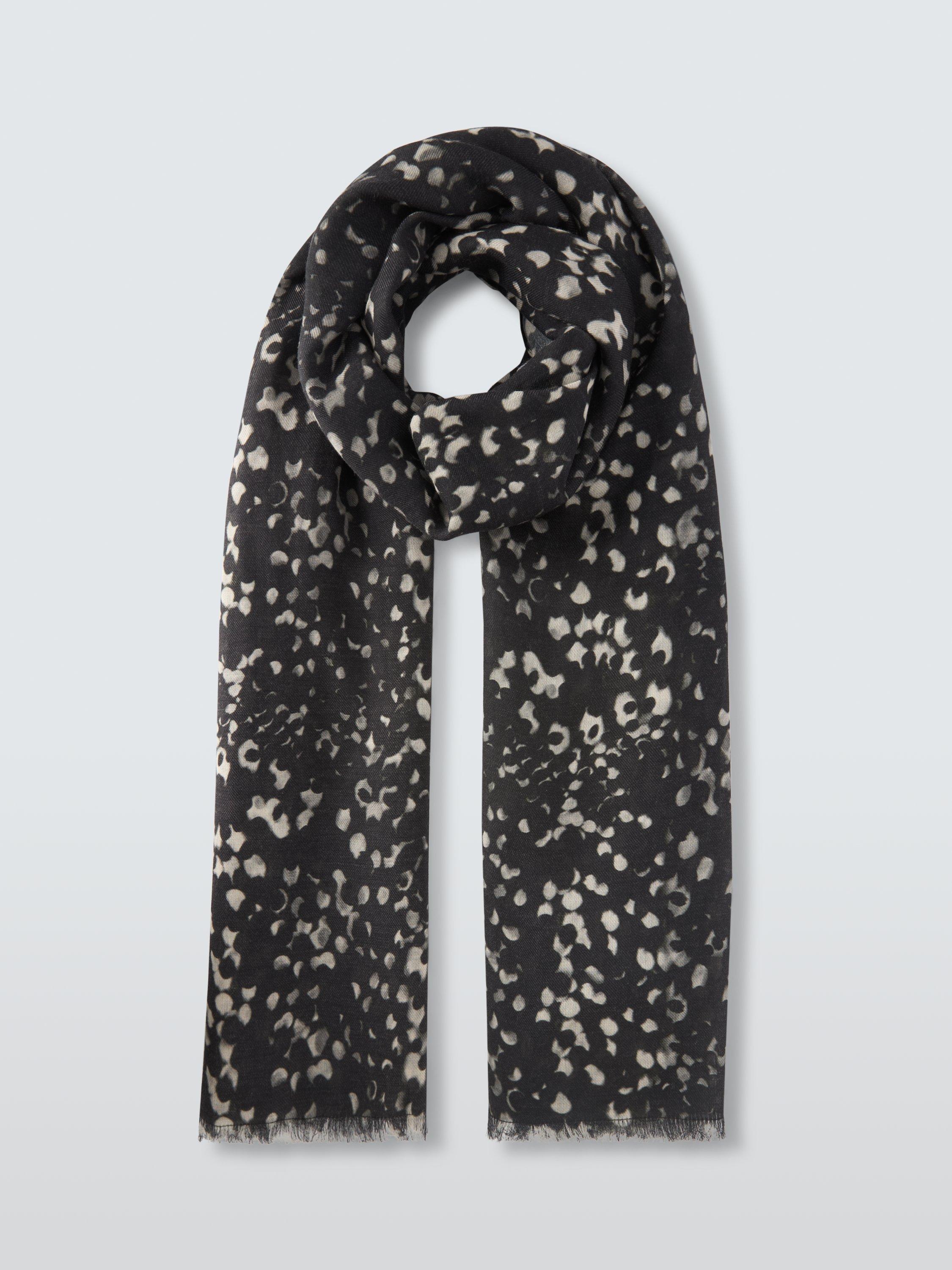 John LewisSpot Print Pleated Wool & Cotton Blend Scarf, Black/Multi