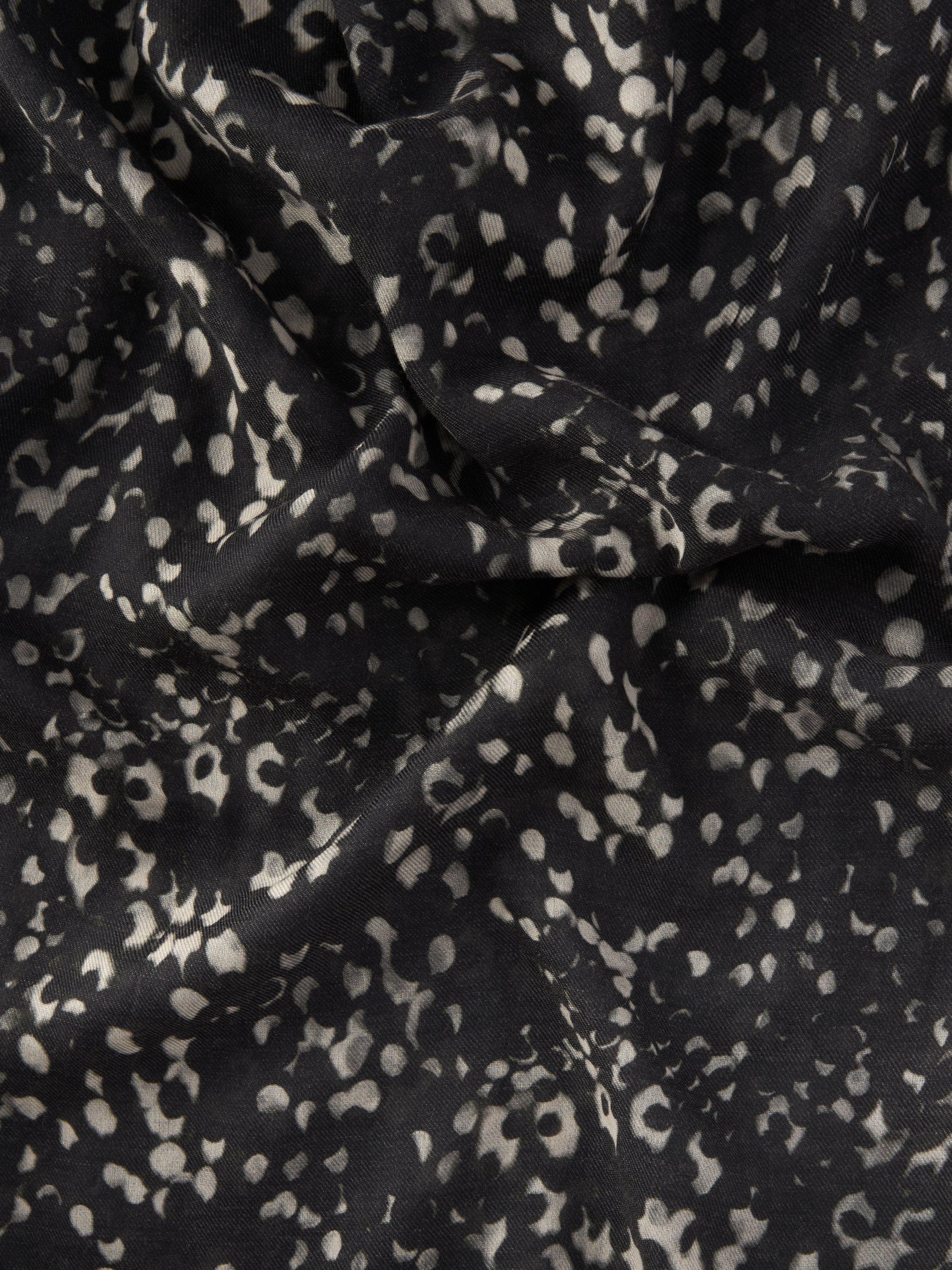 Spot patterned scarf made of a soft and warm wool and cotton blend. Pleated with a soft fringe for added texture.