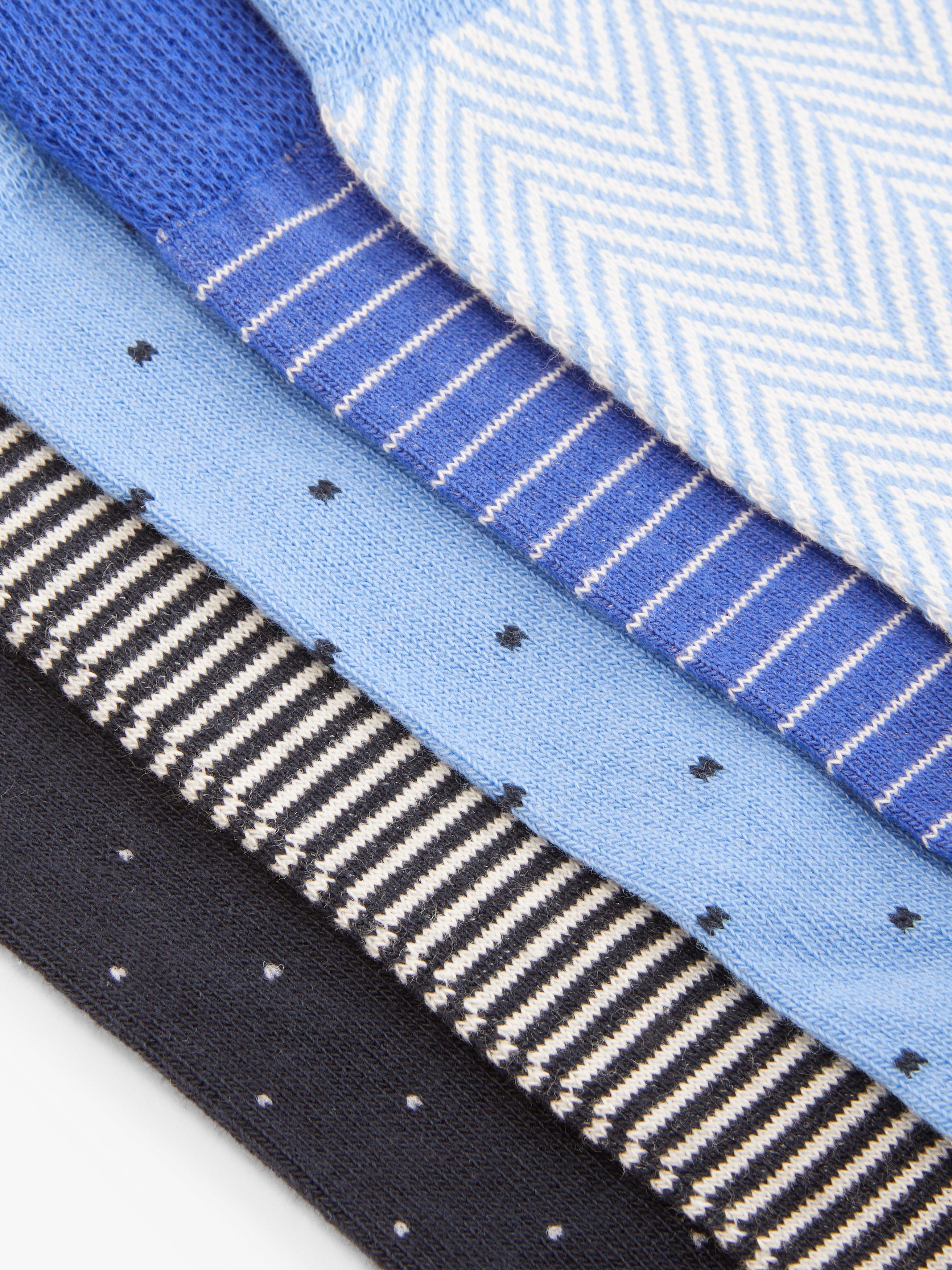 Socks are probably one of the last things you reach for in the morning. Patterned, plain, check or stripe - it doesn't matter how they look (we like them all) it's comfort that's king here. So we’ve made these spot and stripe patterned socks from a rich blend of cotton with added stretch for optimum comfort.